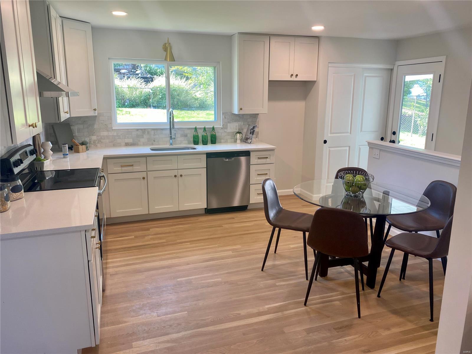 Beautifully renovated 3 bed, 2 full bath home fully updated w/a designer touch! The exterior greets you with painted brick, black windows & updated front door. Inside, custom stained, white oak, solid hardwood floors span the entire first floor. New kitchen w/white cabs, ss range hood, ss appliances & white quartz countertops. Light filled, spacious family room. Master suite w full bath w marble floors & large, tiled shower. 2 additional bdrms. Full hall bath w black hex floors, tiled tub/shower, white oak vanity & black fixtures. Large living area & additional room in bsmnt w new carpet. Fenced yard w covered patio for dining & lounging. New windows, furnace & electrical panel. Rockwood school district. 2 min to hwy 44.