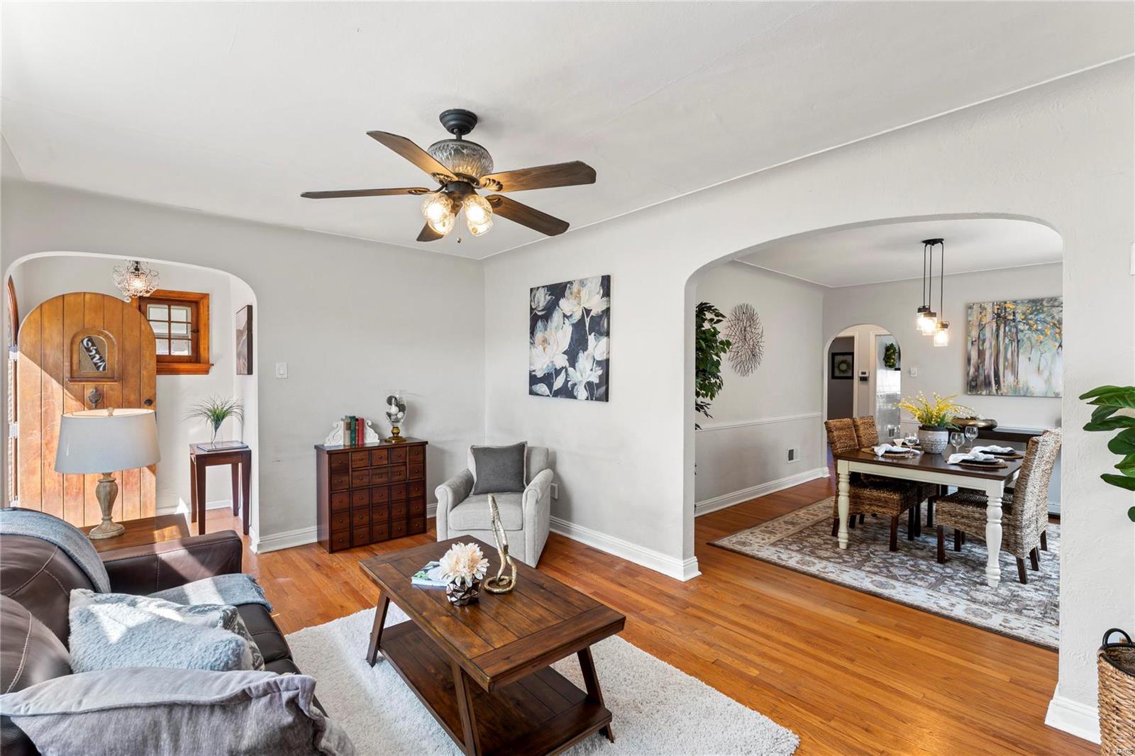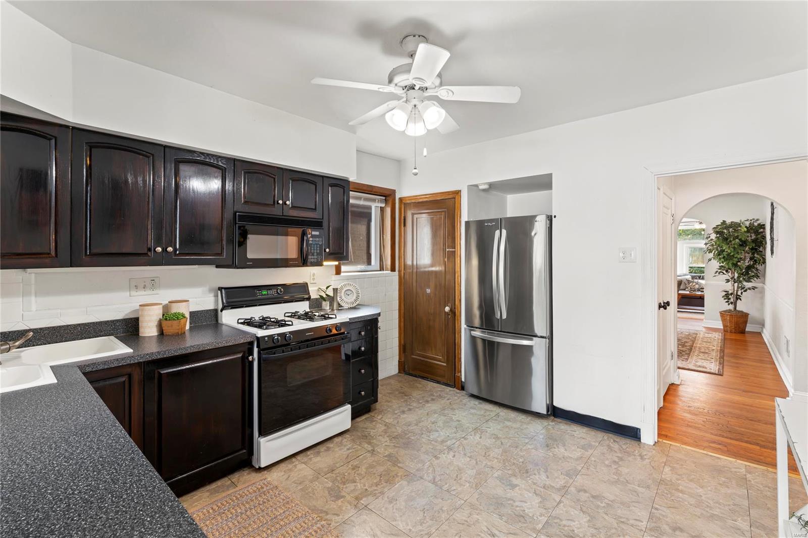 This charming 2 bed 2 bath gingerbread brick home offers plenty of entertaining space to welcome your family and friends! Original wood floors and stained glass windows along with the updated master closet and basement will leave you wanting more! Two refrigerator's, washer & dryer and some furniture in finished basement will stay for new owner, great opportunity for first time homebuyer or maybe someone who is currently renting! Outside you'll find a roomy 2-car garage, deck, fenced-in yard, and outdoor fire pit area for those chilly fall nights coming up!