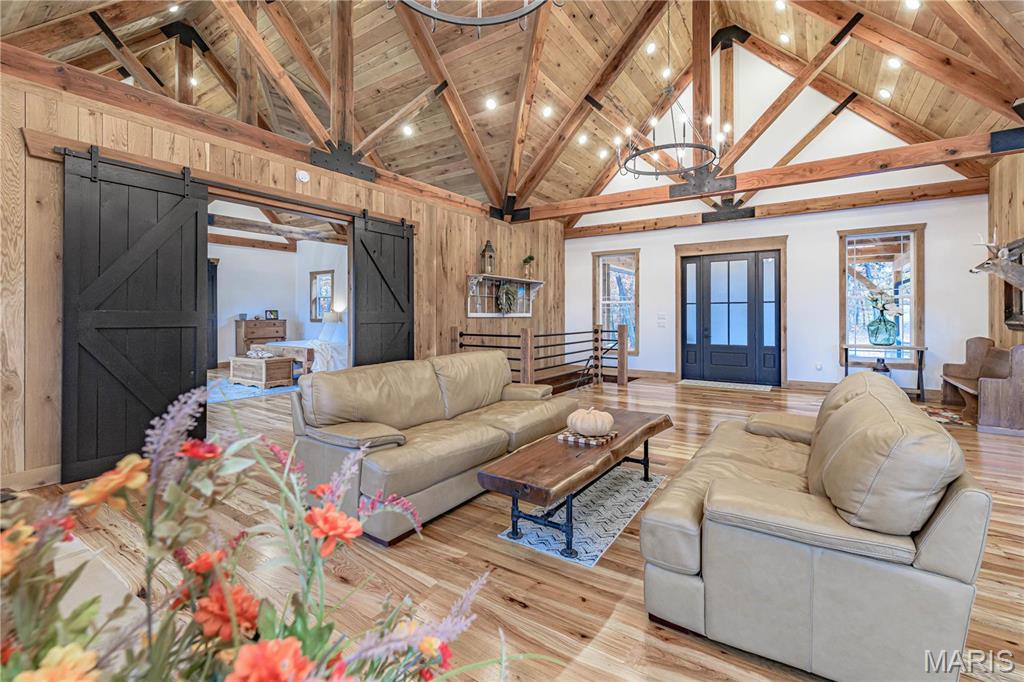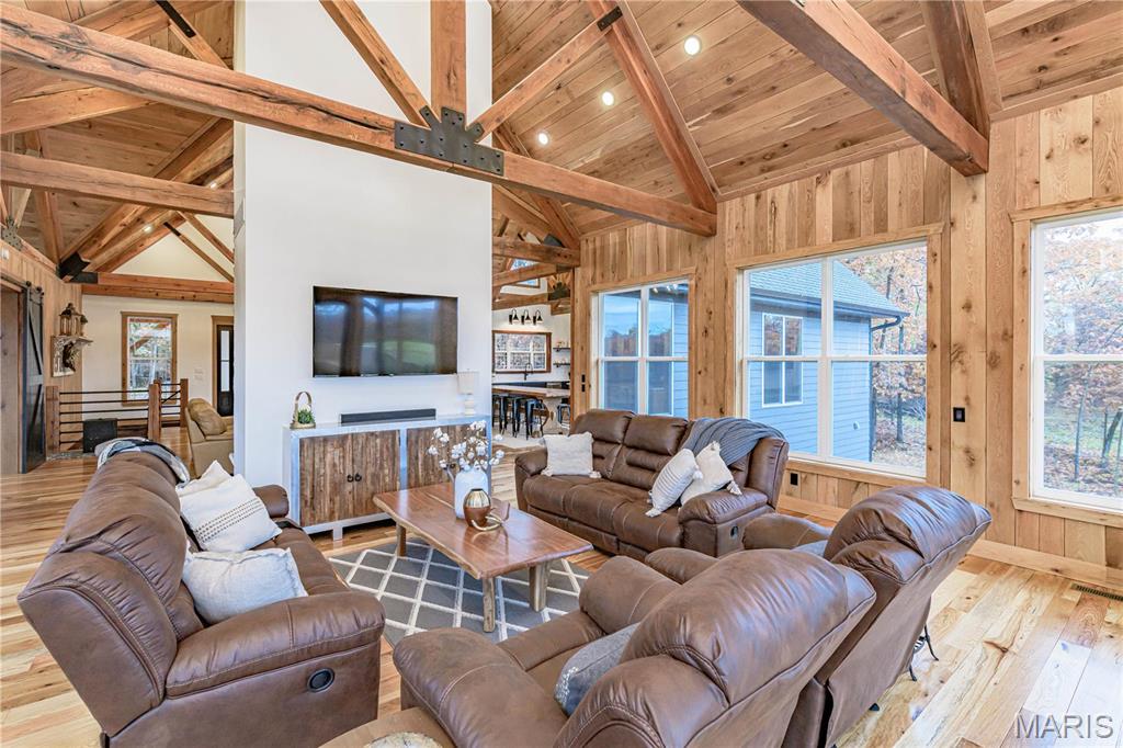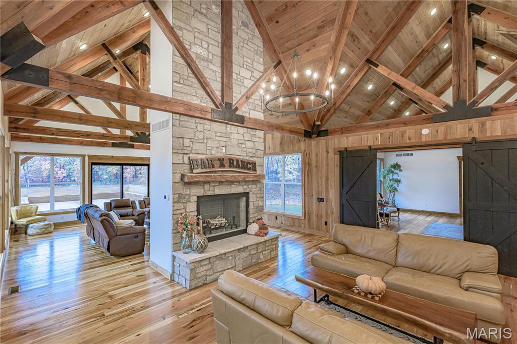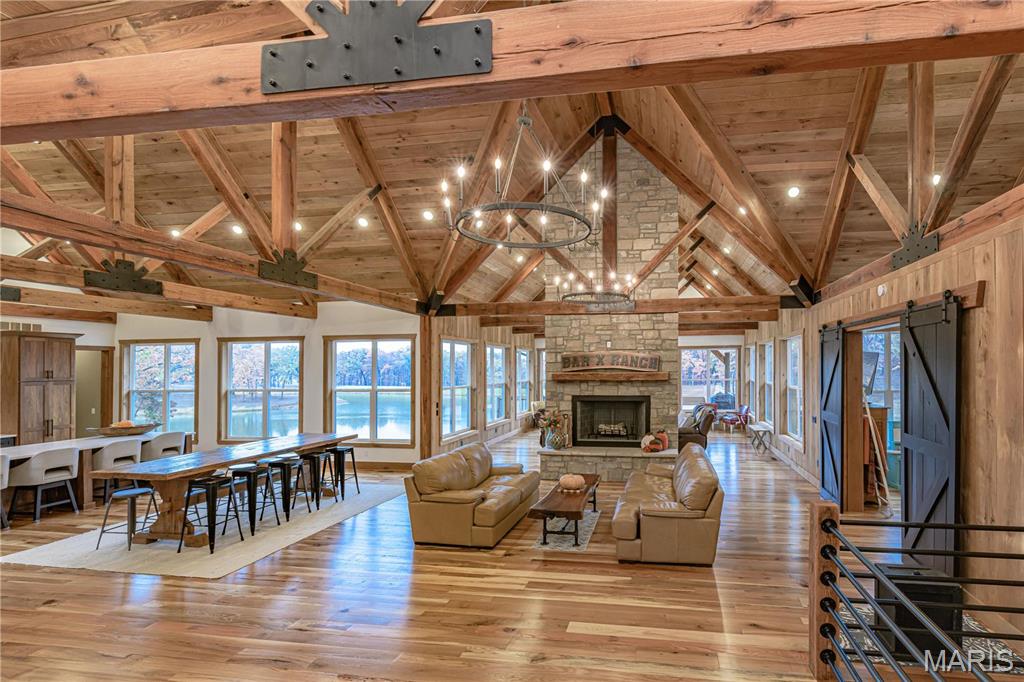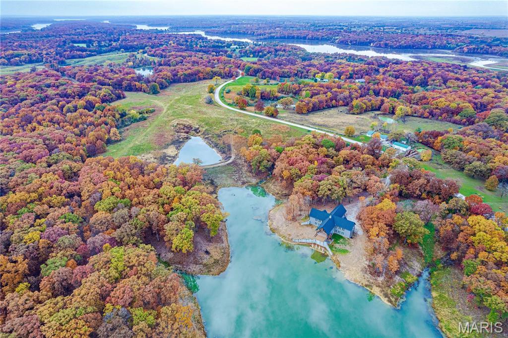 A Hunters, Boaters, Fishermans & Entertainers dream! Over 6000 sq ft of magnificent craftsmanship in this country estate, spread out over 7 acres & with private stocked 10 acre lake in a private setting & close to a launch into 1800 acre Long Branch Lake with large plots of addt’l land available for purchase in the immediate area. Watch the deer in your own yard & then hunt within minutes of your estate! Covered portico leads to magnificence & the unbelievable view upon entering into the breathtaking great room with floor to ceiling stone fireplace, hearth room leading to massive deck overlooking your lake & a mind blowing Chef’s kitchen. Spread out over two floors with 3 primary suites, a 2nd social area in the lower with custom bar & extraordinary safe room/office you must see to believe! The ultimate getaway close enough to use every weekend. Majority of lumber used harvested from the property. 900 ft. of poured concrete driveway, completion TBD. Possible Seller financing available. Suitable for Bed/Brk Additional Rooms: Mud Room, Wine Cellar