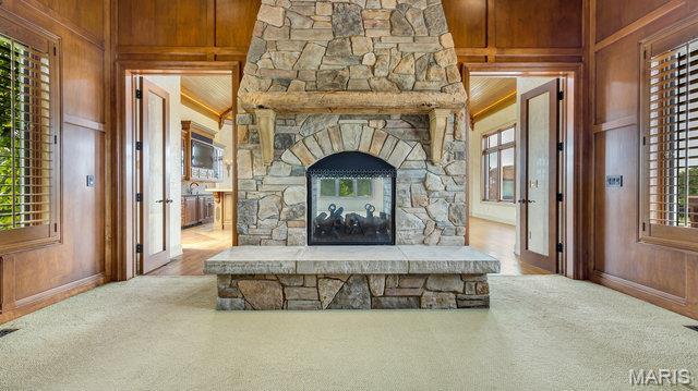 11,000 sq ft Multigenerational Estate on 59+- ac w/private lake. Lower level offers space perfect for mother-in-laws/secondary living w/2nd full kitchen, 2nd full laundry, 2 more bedrooms, gym, family/media room w/fireplace & full bar-all walks out to large patio & pool. Main floor features 18' ceilings, striking millwork, triple crown, coffered tray ceilings & custom columns. Luxury Primary suite offers dual closets, wet bar, FP, separate bathrooms & water closets w/access to Grand gazebo w/wet bar & access to outside. Two more ensuites on main floor feature walk in closets. Main Chef's kitchen offers center cooktop & custom hood, bkfst dining leads to deck w/breathtaking view. Large living rm features woodburning FP, custom panoramic doors open to the sunroom. 60x46X14'T Outbuilding - Dual Climate controlled w/2 bi-fold hanger doors & water. Whole house back up generator. Additional outbuilding measures 35x24x11'T w/2 overhead doors. Located just minutes from 2 major interstates. Suitable for Bed/Brk Additional Rooms: Sun Room, Wine Cellar