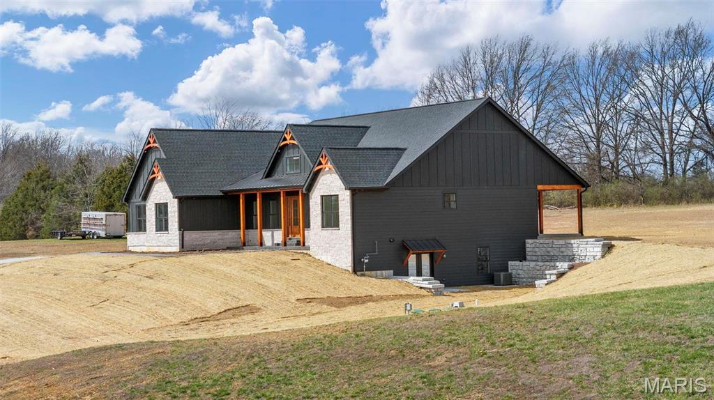 Welcome home! This new construction custom home is the perfect mix of modern and farmhouse in the well sought after Wentzville school district. When you walk in the front door you will be starstruck by the cathedral ceilings and an open floor plan perfect for any family. The primary en suite bathroom is extraordinary with a custom make-up vanity, a dual shower, and an oversized walk in closet with a full system installed. Upstairs offers a large bonus room, or fourth bedroom, with a full bathroom and its own mini-split hvac unit (house has a dual HVAC system). The walk-out basement is unfinished, but equipped with a plumbing rough-in. Stepping outside, you'll find the 12x48 covered patio with three fans. The backyard is perfectly flat and ready for an inground pool or custom court. Landscaping has been newly updated. Schedule your showing today!