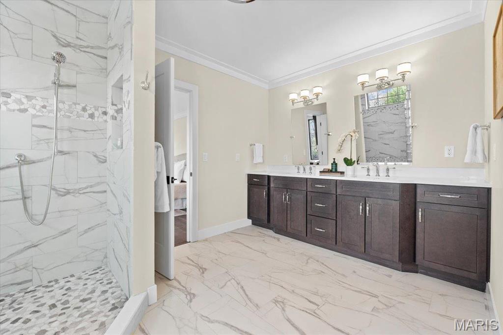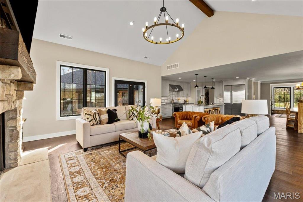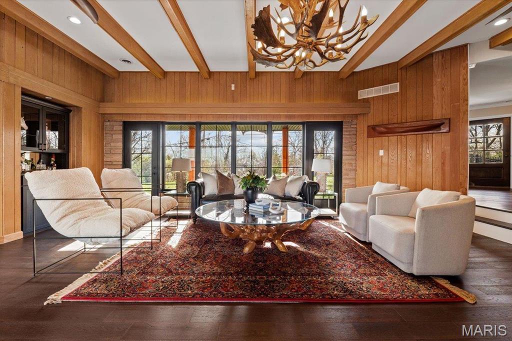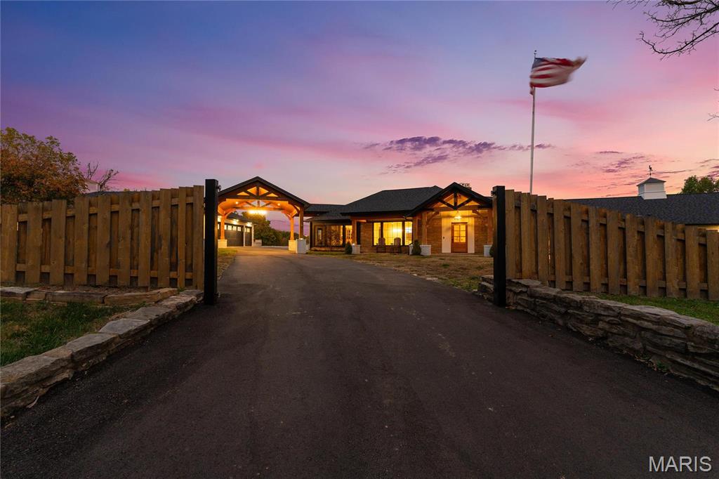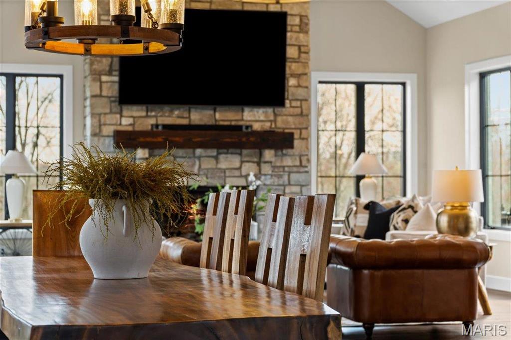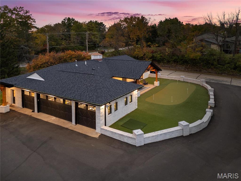 Welcome to 1824 Topping Rd - A luxurious private retreat. Perched overlooking a valley with incredible views, this distinct one-of-a-kind estate blends modern elegance with rustic charm. With nearly 7,200 sqft, this home offers expansive yet intimate living spaces designed for both entertaining and everyday comfort. The main residence features an open floor plan, a gourmet kitchen with a custom pantry, a great room with soaring ceilings, a formal dining area, and a sunken living room leading to the resort-style pool deck. The primary suite is a serene escape with a spa-like en suite bath, soaking tub, walk-in shower, and custom walk-in closet. A private guest house offers a full kitchen, living room, bedroom with en-suite bath, gym, and a covered patio with a putting green. A third living space/rec room provides flexibility, with another separate living suite above. Set on 1.4 expansive acres, enjoy a luxury pool, 4-car garage, and more. Prime location offers access to the best of StL.