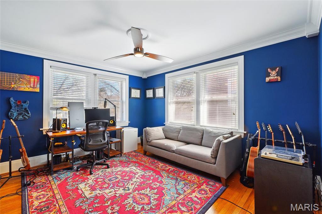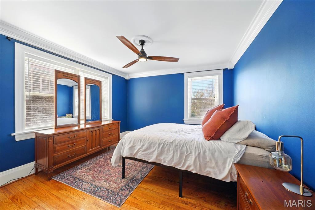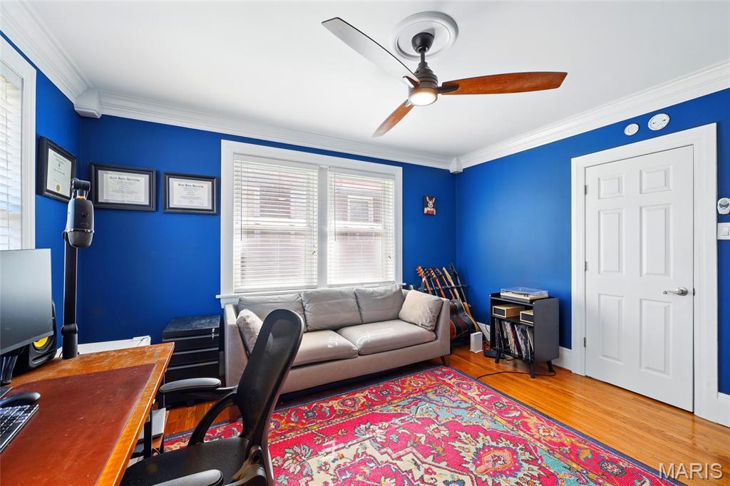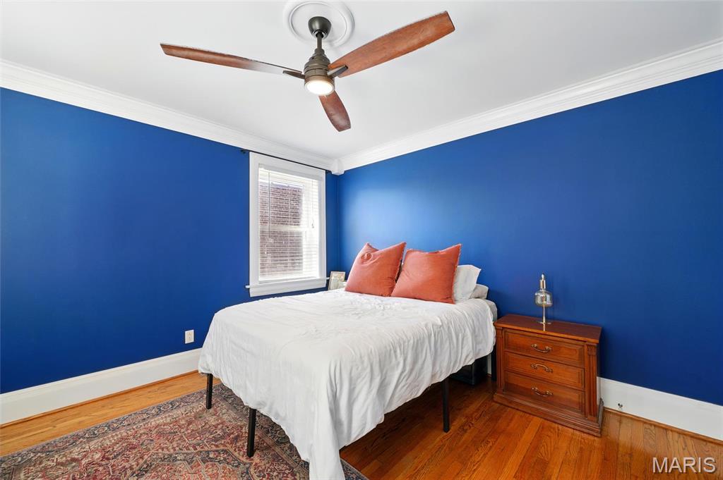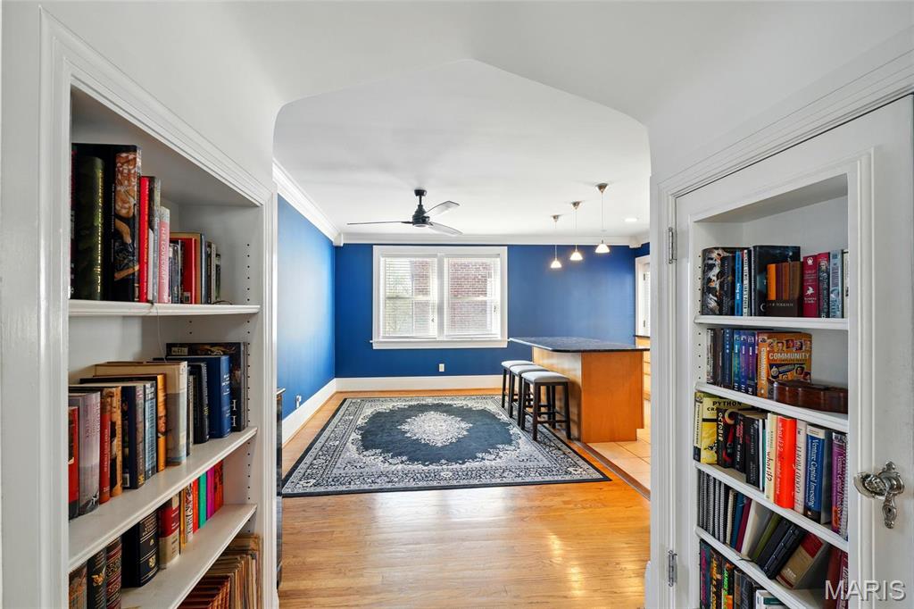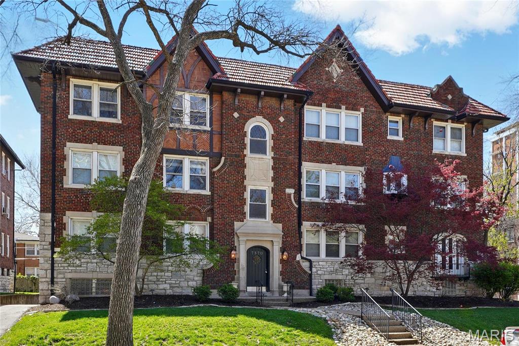 Welcome to this one-of-a-kind 2-bedroom condo full of charm and character in Clayton’s walkable Moorlands neighborhood. Just steps from shops, restaurants, parks, and schools, this top-floor unit blends timeless details with smart updates. Inside, you’ll find rich blue walls with crisp white crown molding and oversized trim, complemented by hardwood floors throughout. The light-filled kitchen features granite counters, stainless appliances, and an island with seating—perfect for casual meals or coffee. A custom bookcase includes hidden storage, adding both style and function. Both bedrooms are generously sized, and the bathroom offers a shower/tub combo. The well-maintained building includes garage parking and private storage. The proactive, budget-conscious HOA helps owners avoid large surprise assessments. Whether you’re a first-time buyer, WashU affiliate, or seeking low-maintenance living, this condo delivers unbeatable value in one of Clayton’s most charming neighborhoods. Location: Corner Location, End Unit, Upper Level