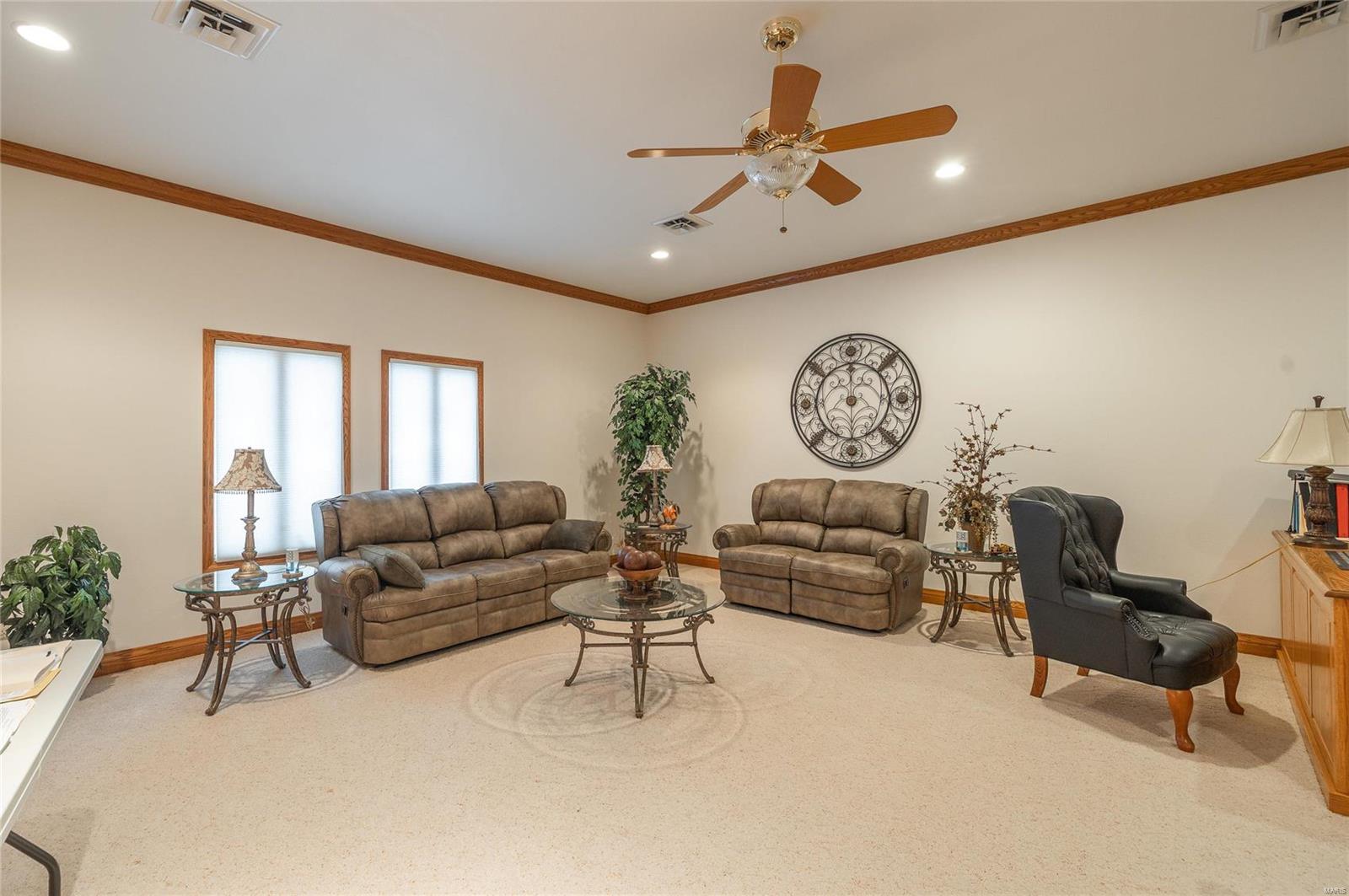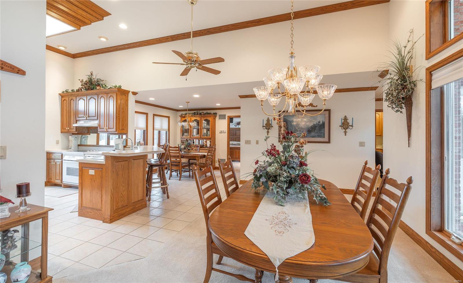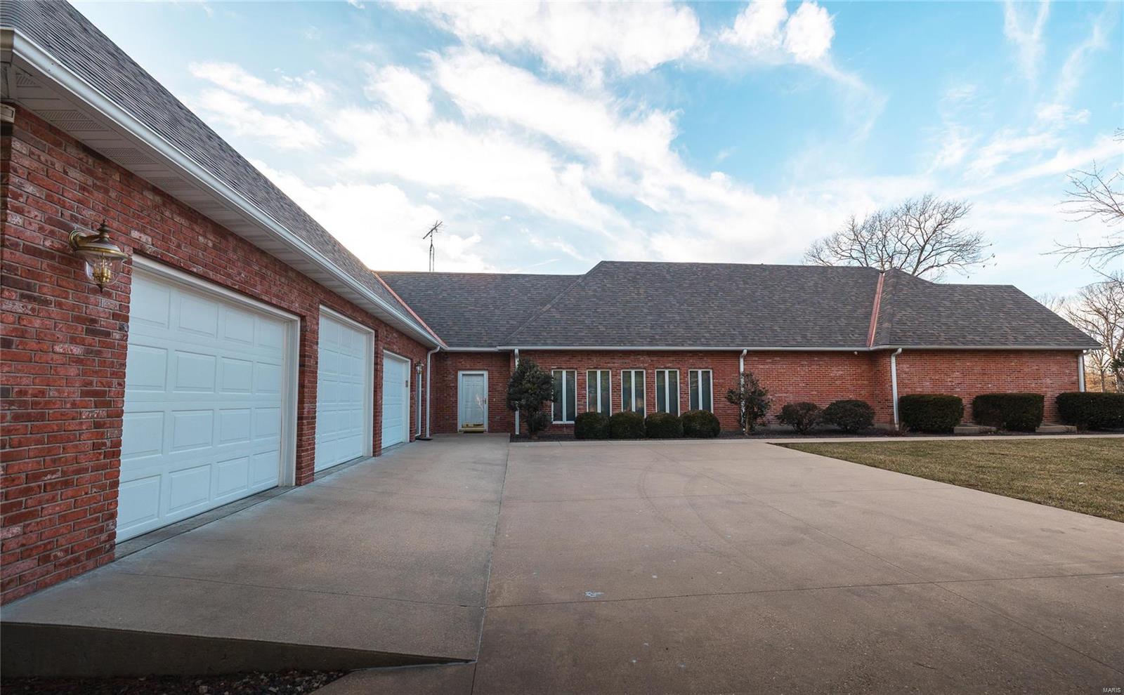 Stunning 4-bed, 4.5-bath brick home offers the perfect combination of quality craftsmanship, modern comfort, and peaceful country living. This spacious residence is just outside the city limits, providing privacy and convenience. Inside, you'll find an open-concept living and dining area, custom oak trim, and soaring 12-foot ceilings that create an airy, inviting atmosphere. The kitchen is a chef’s dream, featuring custom oak cabinetry, a breakfast bar, and a separate breakfast room. The split-bedroom floor plan ensures privacy, including a mother-in-law suite with a large living room, full bath, walk-in closet, and private access to the 3-car garage. Outside to a covered back patio overlooking a peaceful pond. For those who need extra workspace, this property offers 50x60 steel building with an office or living area, restroom, mezzanine storage, RV storage with a floor drain, and two additional bays, a second workshop/storage building, and your very own car wash setup.