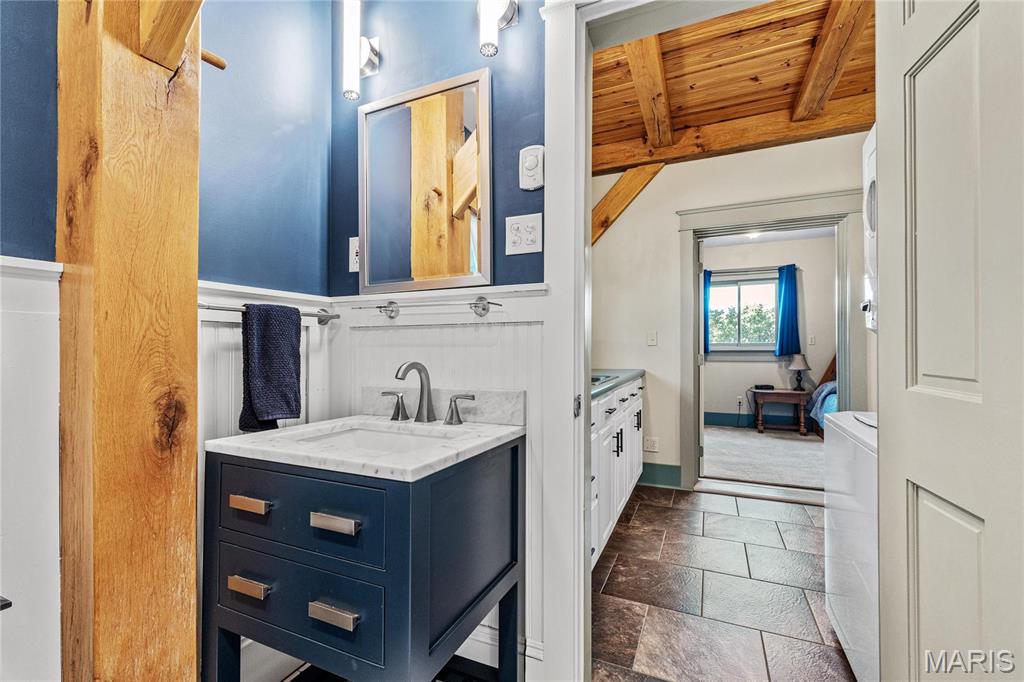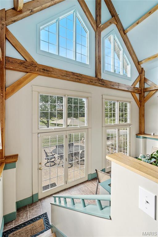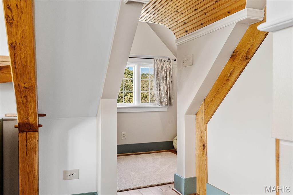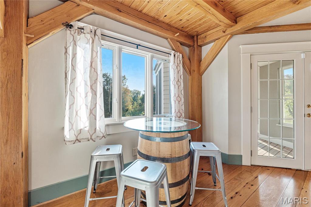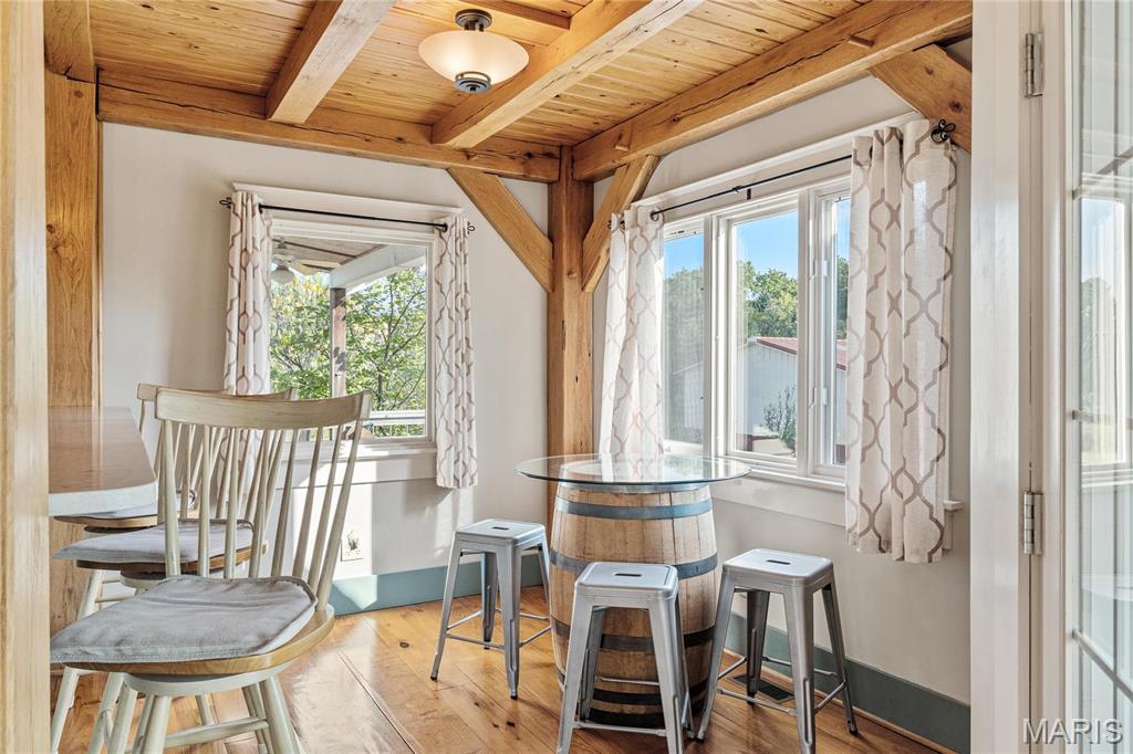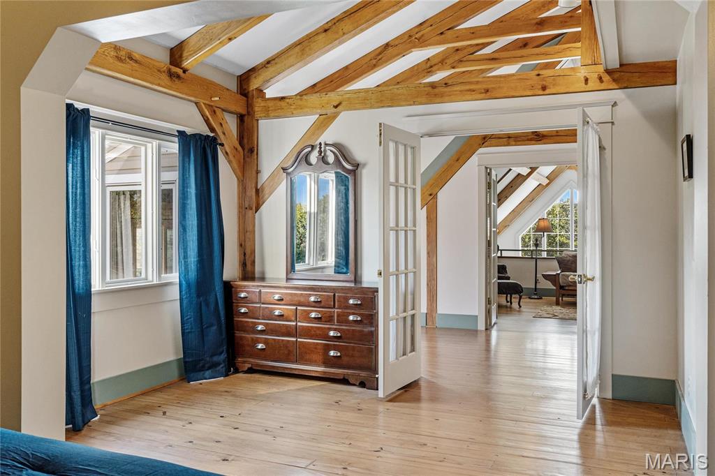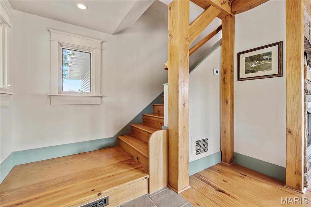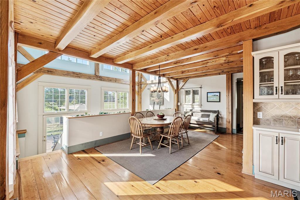 Absolutely gorgeous setting for this wonderful country home on 42 acres with a 1+ acre stocked lake, wonderful guest cabin/studio & 40x30 Morton Building barn. Less than 15 minutes to Hermann wineries & shops or on your bike at the Katy Trail in 10 minutes! Extraordinary custom timber frame home with beautiful views of woods, fields & lake. Original owner/architect designed; the home offers cozy rooms sitting by the 3 fireplaces (one on each floor). Updated kitchen boasts 2 pantries, one walk-in, quartz countertops & updated appliances. The primary bedroom offers a spacious walk-in closet & renovated bath. Enjoy a beautiful loft area (which could be 4th bedroom) & children's play room/library area. The open design offers plenty of light with large windows & sunny views. A finished lower level (included in total sq/ft) offers a bedroom & full bath, family room & plenty of storage. New HVAC 2022. Enjoy a cozy cabin by the lake, 2 docks, fishing and hiking! Duplicate listing of 25023431 Suitable for Bed/Brk