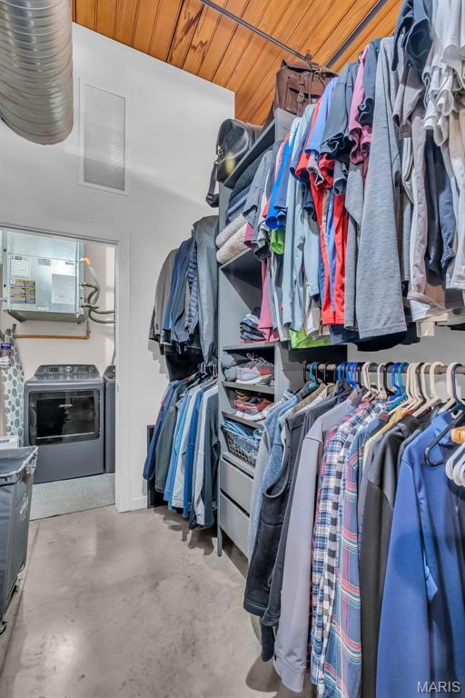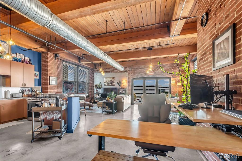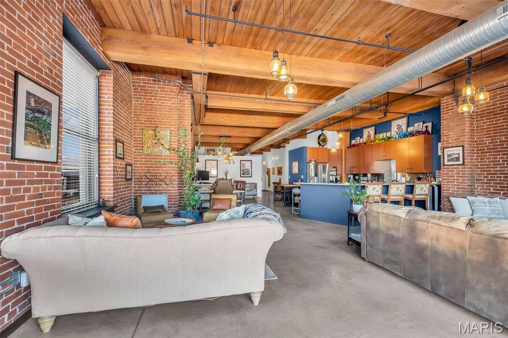 Be a part of the Washington Avenue resurgence! Investment in downtown STL is on the rise with much of it focused on this block of Wash Ave. This 1-bed, 1.5-bath loft in the heart of downtown combines industrial style with modern convenience. Concrete floors, exposed brick walls, and high ceilings give the loft a chic, industrial vibe, while large windows on three sides fill the living room with natural light. The open kitchen, complete with a breakfast bar, seamlessly connects to the dining and living areas—perfect for entertaining. The spacious primary suite features a full bath with a separate tub and large shower, and the walk-in closet connects directly to the laundry room for added convenience. Amenities include an assigned parking space in a basement garage, a community workout facility, and access to a rooftop deck with city views. With vibrant bars, restaurants, and more right outside your door, this loft is an ideal downtown haven! Location: City, Downtown
