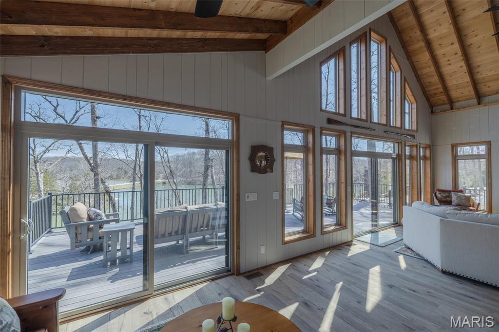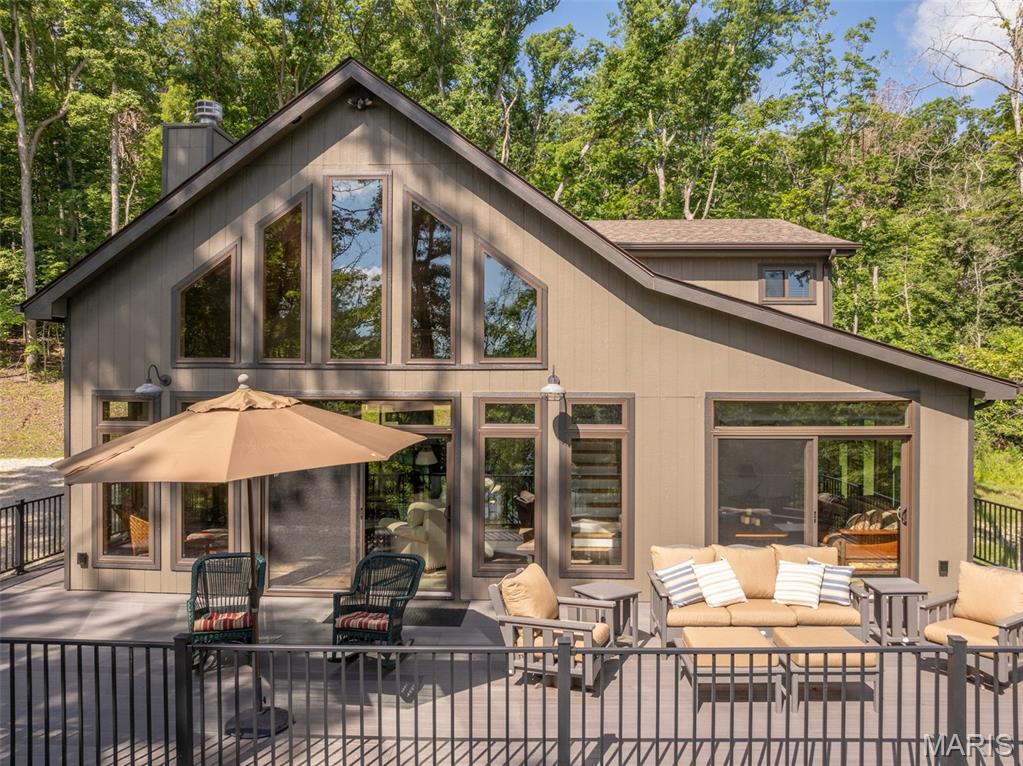 Nestled on the shores of 236-acre Alpine Lake, this stunning 4 BR, 3.5 BA waterfront chalet offers luxury living at its finest. The home boasts an open floorplan with breathtaking oversized windows that bathe the space in natural light, highlighting the elegant stone wall fireplace in the living area. The gourmet kitchen features sleek quartz countertops and a spacious center island with barstool seating, perfect for entertaining. The primary suite, located on the main level, offers an ensuite bathroom and serene lake views. The upstairs loft features three beautifully designed bedrooms, one with a private bath, while the other two share a spacious full bathroom. A wraparound deck with maintenance-free decking provides stunning outdoor views, while a sunken fire pit area overlooks the lake. Enjoy easy access to the water from the stone patio, or explore nearby nature trails. With an oversized garage and all furniture included, this move-in ready retreat offers ultimate lakeside luxury.