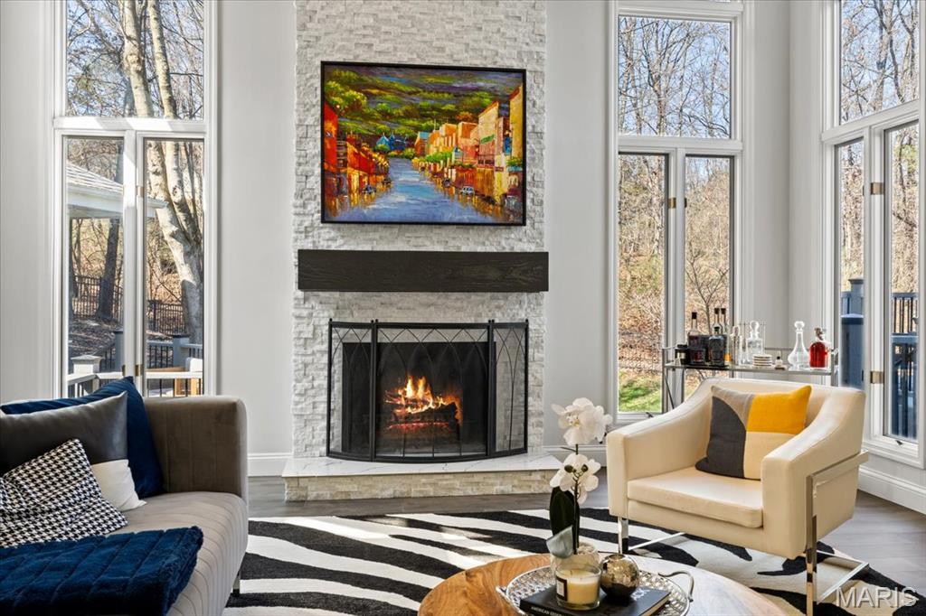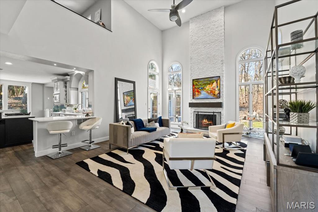 Welcome to this exceptional 1.5 story home nestled on nearly an acre of land - offering 5,000+ sq ft of living space. Completely updated w/ wood flooring throughout & 9' ceilings. The stunning 2-story great rm offers a cozy fireplace. The open-concept kitchen is a dream w/ a center island, stainless appliances & an adjoining breakfast rm & hearth rm with a fireplace - opens to a sunrm & expansive deck. The vaulted primary suite offers a sitting area, 2 walk-in closets, & spa-like bath w/ dbl vanities, oversized walk-in shower & soaking tub. The UL includes 2 bedrms, full bath & loft. The walk-out LL has a spacious family rm w/ a fireplace & wet bar, rec rm, exercise rm, large bedrm & full bath. A 3-car attached garage is complemented by a detached oversized 2-car w/ a separate living space—ideal for multi-generational living or older children—featuring a family rm, bedrm, full bath, kitchenette & laundry. This rare opportunity offers the perfect blend of space, style & flexibility!