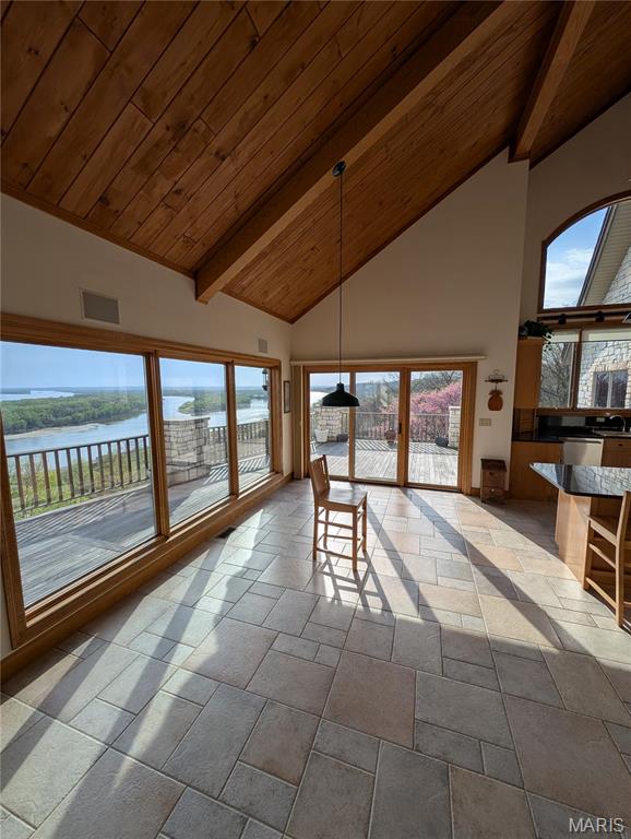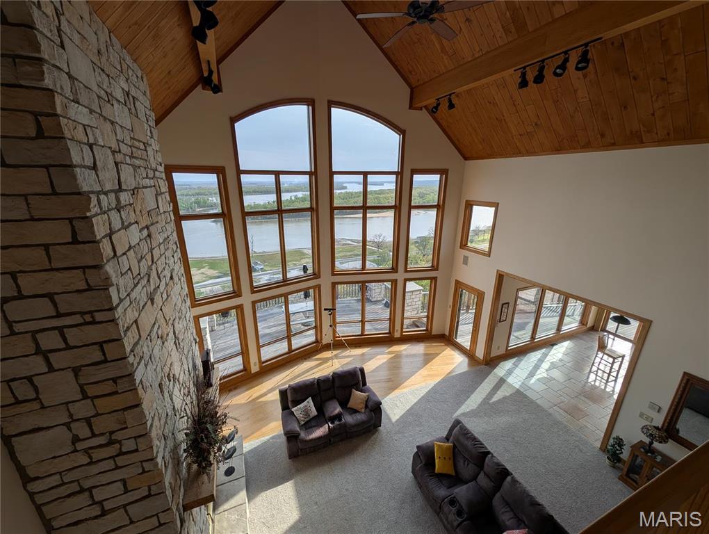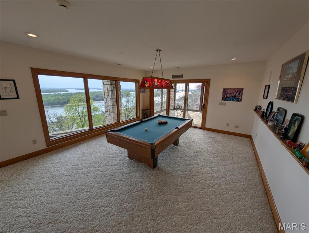 If you want every day to feel like you’re on vacation – this is the home for you. This 3 Bedroom, 2 Full Bath, 2 Half Bath offers breathtaking views of the Illinois/Mississippi river in almost every room on 5.01 wooded acres nestled atop the bluffs. The main lvls added lofts are perfect for an office/lounge area and the tower loft makes a great artist's loft or telescope area. The Palapi Brazilian back deck hosts the perfect place for a morning coffee or evening drink. Massive 31’ vaulted ceilings in the great room w/fireplace. Open kitchen/dining along with a coffee bar area – all appliances stay. Main floor primary bedroom suite w/walk-in closet, shoe closet, bath w/separate tub/shower. Venture downstairs to the perfect spot to host your next event, w/views from the family room w/fireplace and wet bar to the billiards room w/screened patio. 2 bedrooms and a full bath are in the lower lvl as well. All showings to provide preapproval/proof of funds & be accompanied by listing agent. Additional Rooms: Sun Room