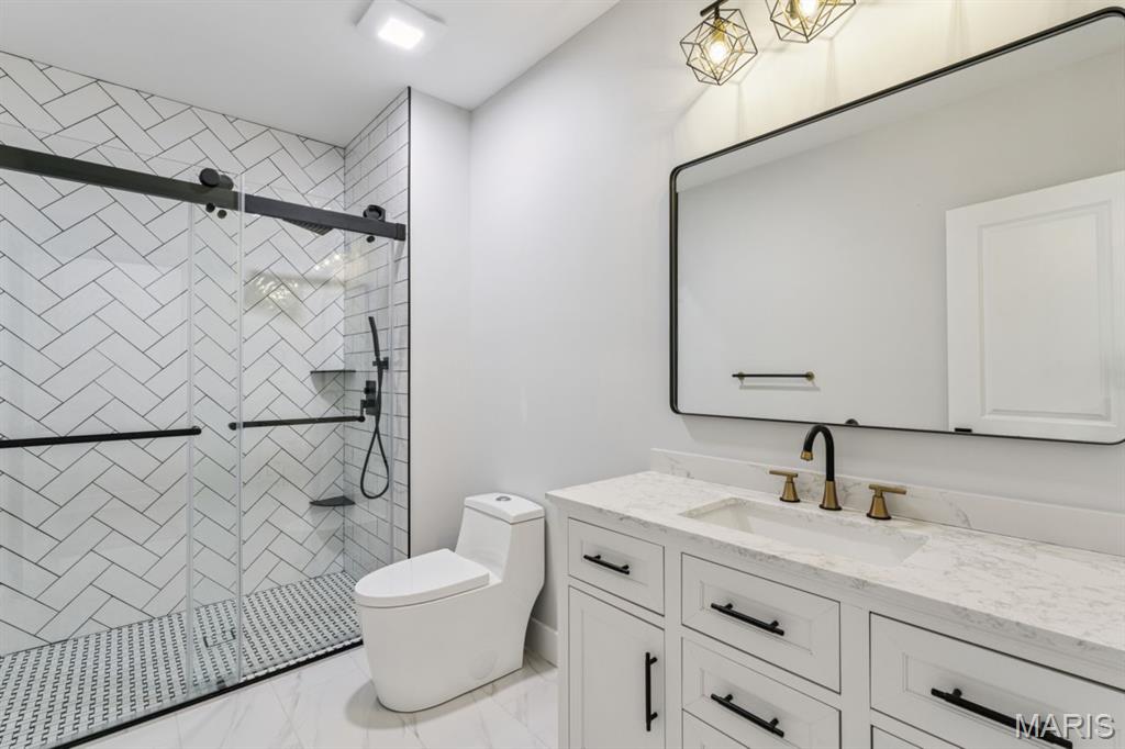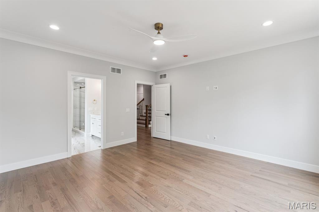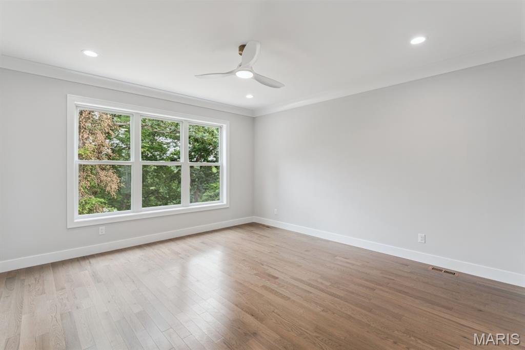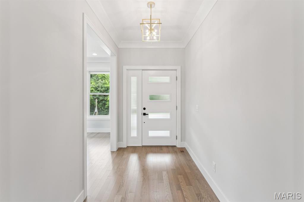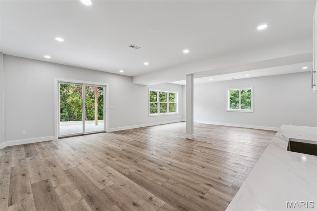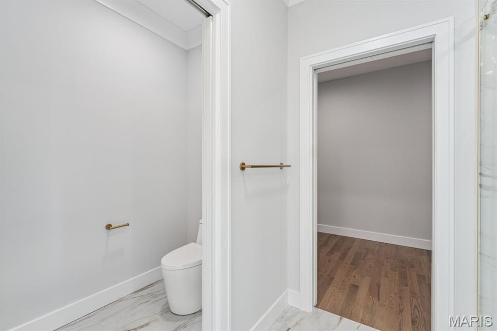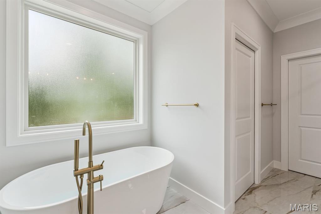 Rare opportunity to own a custom new construction luxury home in Sunset Hills! This 5-bed, 5-bath stunner blends elevated design with exceptional style in Lindbergh Schools. The open-concept main floor features hardwoods and crown molding throughout, a sunlit office off the entry, a spacious living room with impressive marble-slab gas fireplace and access to a deck with custom railing, overlooking woods. The show-stopping kitchen offers quartz counters, marble backsplash, huge island with waterfall edge & built-in microwave, pantry, built-in buffet with beverage cooler & lovely window-lined dining room. This layout is optimized for entertaining! A floor-to-ceiling tiled powder room & large mudroom/laundry add function & flair. The main-level primary suite is pure retreat—heated marble floors, soaking tub, separate shower, double vanity, brass fixtures, & custom walk-in closet. Custom railed stairs lead to 2nd floor & generous family room. A large second primary suite has a massive spa-worthy bath - heated floors, soaking tub, separate luxe shower. Two more oversized bedrooms, full bath, & another laundry room complete level. The finished lower level walk-out has access to covered patio & boasts tall ceilings, LVP flooring, spacious rec room w/wet bar & beverage cooler. A comfortable bedroom with full bath is ideal for visitors or extended stays. From top to bottom, no detail has been overlooked in this one-of-a-kind home—designed to impress & crafted for modern living.