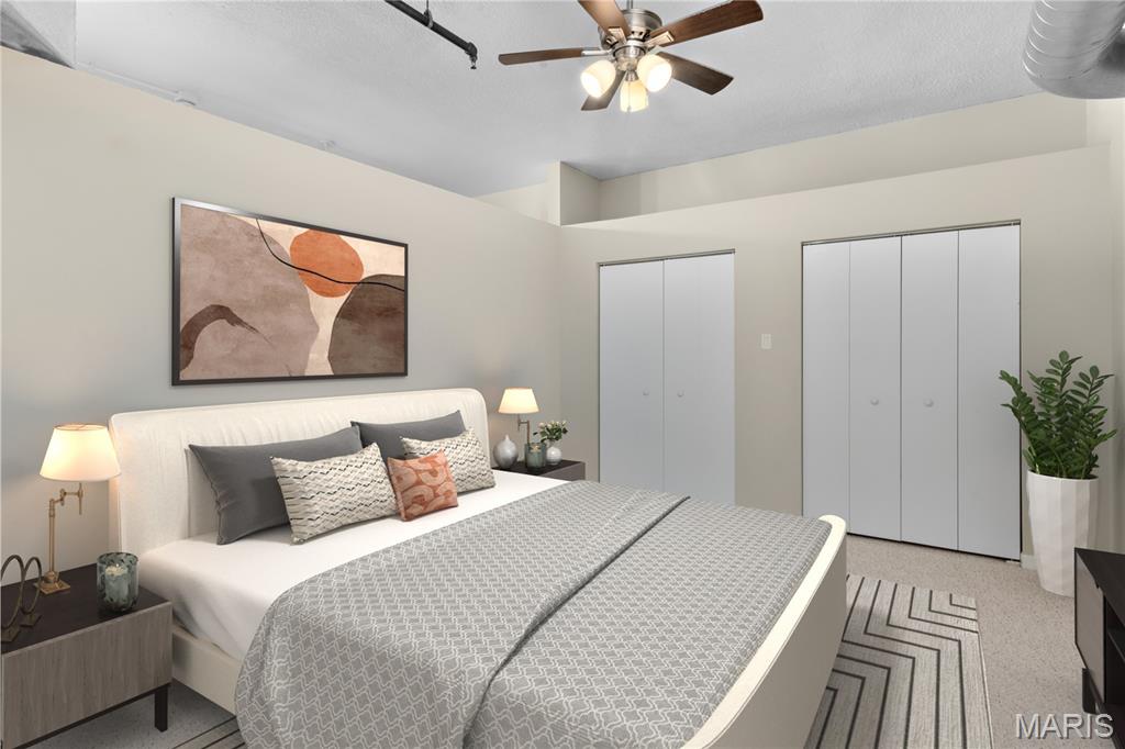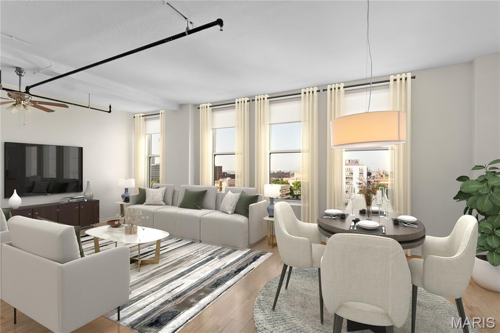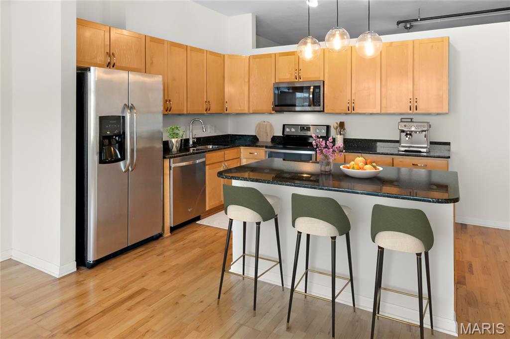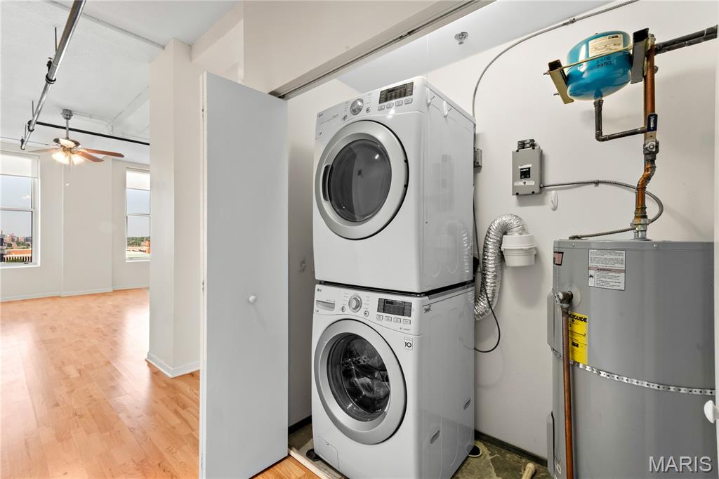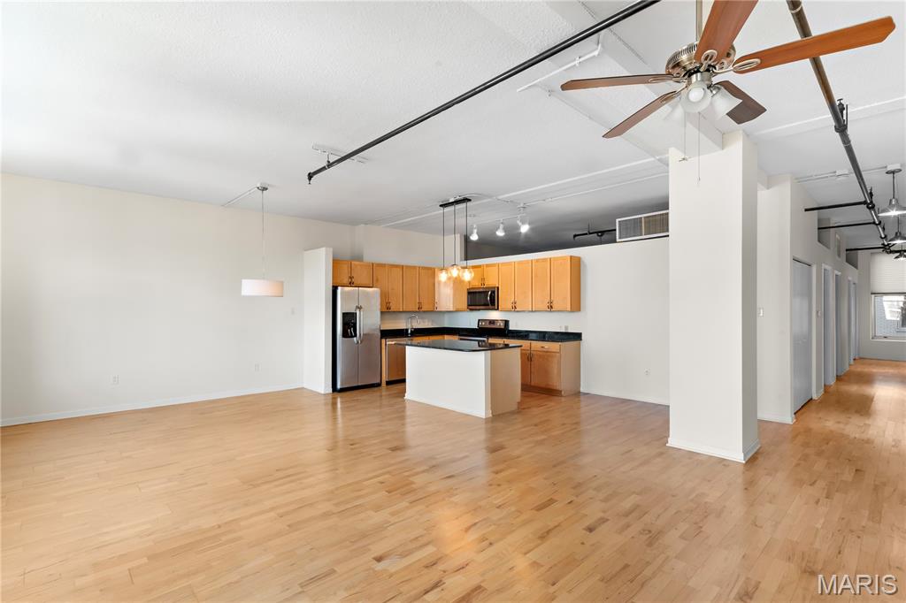 Indulge yourself in this contemporary and spacious 2 bed, 2 bath loft in the vibrant Downtown Loft District. Located on the 9th floor of Terra Cotta Lofts, this stylish and comfortable home features an art-worthy gallery hallway, open floor plan, high ceilings, and warm wood floors. Large windows offer stunning southern city views. The kitchen includes granite counters, maple cabinets, stainless appliances, and a center island with breakfast bar. The primary suite and second bedroom both offer generous double closets. A full-size stacked washer/dryer is included in the in-unit laundry room. The Terra Cotta Lofts is just steps from all downtown has to offer, including CITYPARK, home of St. Louis CITY SC and. Sale includes 1 deeded garage parking space #101 (located at 1523 Locust Street #101, St. Louis, MO 63103). The parking space has a separate quarterly condo fee of $275. THIS CONDO IS A MUST SEE!
