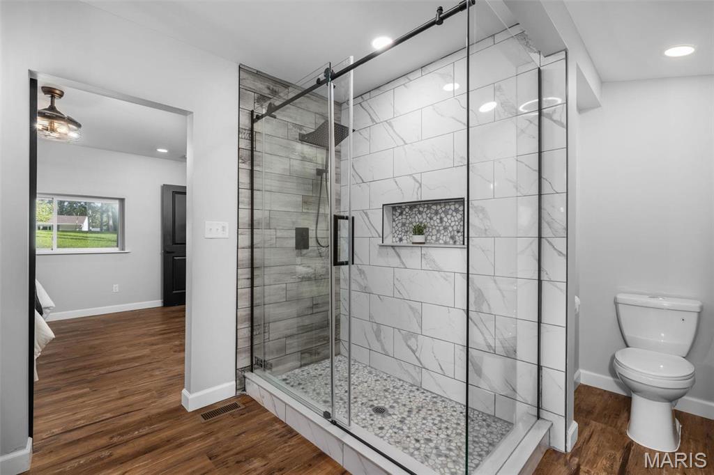 Tired of subdivision living? This home sits on 1.08 +/- acres, prime location in Unincorporated Fenton, Rockwood Schools, multi level home with a spacious layout & numerous amenities, this is a true gem for those seeking a new place to call home. You will be greeted by an open & bright living space great for relaxation & entertaining. Natural light pours in through the large windows, enhancing the inviting atmosphere. The dining area is perfect for hosting dinner parties or enjoying family meals, modern kitchen boasts black SS appliances, 5 burner range w/convection & air fryer, sleek exotic quartz countertops, ample cabinet space & convenient center island for food prep or a cozy spot for casual dining. The primary bedroom offers a tranquil retreat w/walk-in closet, ceiling fan w/retractable blades, ensuite bath complete w/custom shower & Bluetooth speaker. The fin lower level offers a WB Fireplace for extended comfort. Large Deck, new electric, plumbing, HVAC, vinyl windows, MF laundry & master suite.