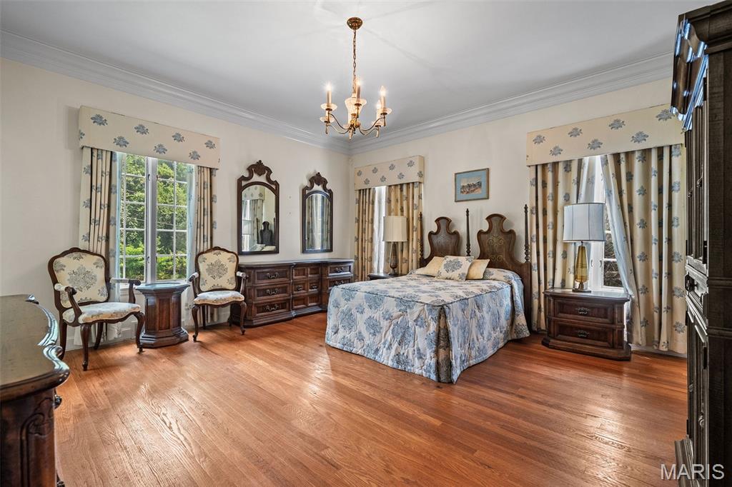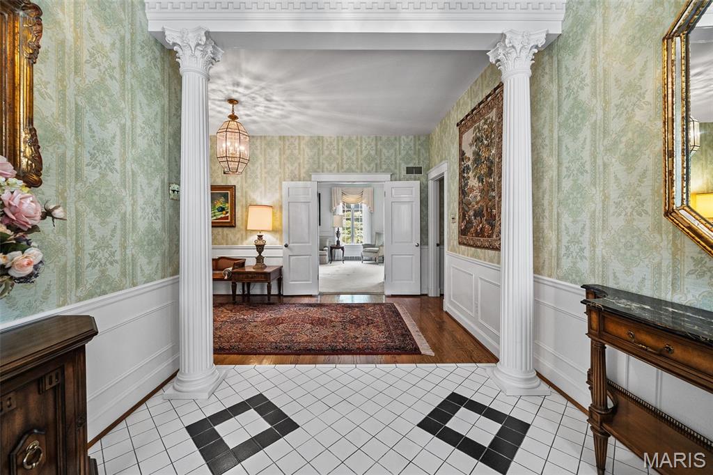 Set in the prestigious Huntleigh Woods neighborhood, this stately 5-bedroom, 4.5-bath Greek Revival ranch offers a rare blend of elegance, privacy, and potential. Resting on 2.23 beautifully landscaped acres, the home features gracious proportions, classic architectural details, and a timeless presence. From the moment you enter, you're welcomed by traditional charm—rich millwork, hardwood floors, custom built-ins, and multiple fireplaces lend character throughout the formal living and dining rooms, spacious kitchen and light-filled family room. French doors open to a private backyard retreat with an in-ground pool, manicured gardens, and expansive patio. • Gracious entry hall with classic detailing • Formal living room and sitting room • Vaulted family room with fireplace and French doors • Formal dining room with fireplace • Kitchen with breakfast bar and eat-in area • Spacious primary suite with en-suite bath • Expansive lower level and abundant storage • Attached 3-car garage This home offers an incredible opportunity to renovate or reimagine the space to suit your personal style, with generous square footage and a strong architectural foundation already in place. With its unparalleled location, refined character, and unlimited potential, this is a rare chance to create a truly one-of-a-kind residence in one of the area’s most distinguished communities. Shown by private appointment only.