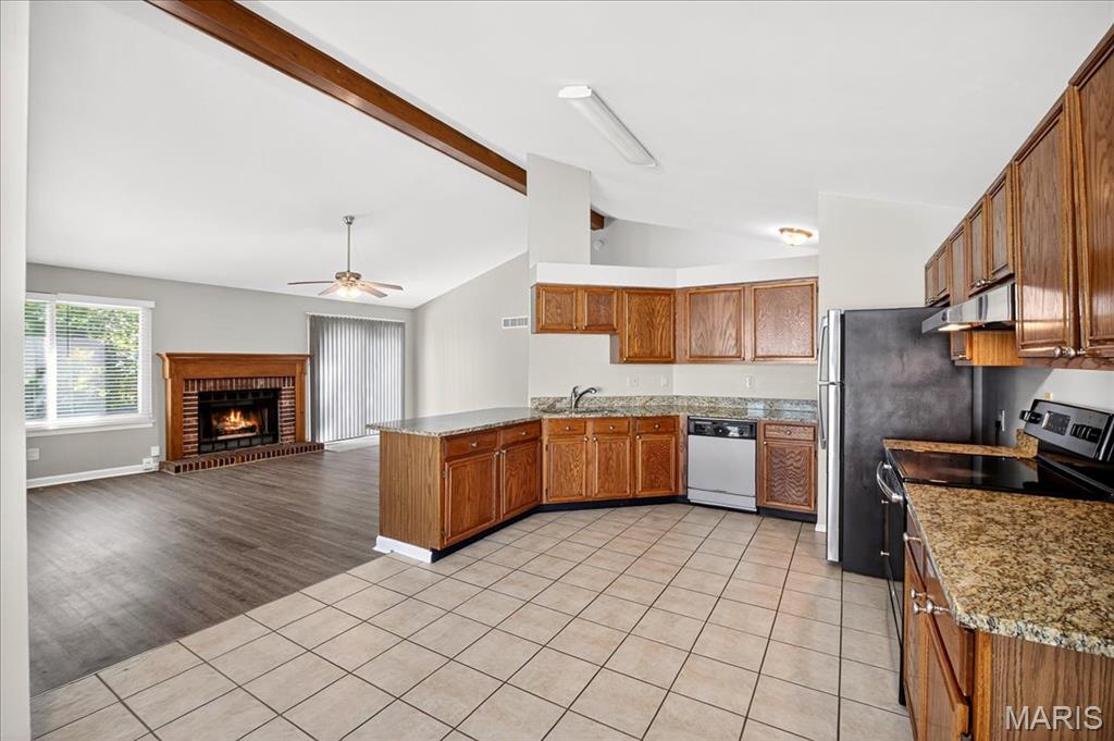 Move in ready ranch is awaiting your personal touches! With over 1,400 square feet of livable space and a beautiful, fenced in backyard, there is so much potential for this home. Features include a primary bedroom en suite with two additional, ample sized bedrooms and an additional full bath. Partially updated kitchen comes complete with stainless steel appliances! Enjoy the spacious living room and cozy of to the gas fireplace in the chilly months. Vaulted ceiling provides an open, airy feel with an exposed beam to add some character. Full basement provides tons of extra space for storage or other needs. The fully fenced backyard is a shady paradise complete with a patio perfect for grilling. A wonderful home to make yours before the summer is over!