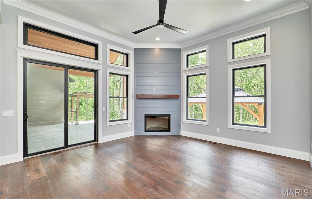 Brand new custom-built home on 3+ wooded acres in Kohler Estates subdivision. Features 4 bedrooms and 5 1/2 baths, a oversized 4 car garage with stair access to basement, a Great Room with a stone gas fireplace, with custom bookshelves, Gourmet kitchen offers custom cabinetry with quartz countertops, tile backsplash, and a complete appliance package, and walk-in pantry with custom shelving. Master suite includes a tray ceiling, a large walk-in closet with custom shelving, and luxury bath with jacuzzi tub, dual vanities, and a tiled walk-in shower. 10 and 12 foot main floor ceilings with 8’ tall interior/ exterior doors. Laundry w/ sink & cabinetry, office with built in desk and cabinets, Hearth room with electric fireplace, a large covered patio, A large finished walk out basement with 9’ ceilings, a custom wet bar, a bedroom with a full bath, a large rec room and a separate workout/entertainment room with full bath. Conveniently located minutes away from Lake St Louis and Chesterfield!