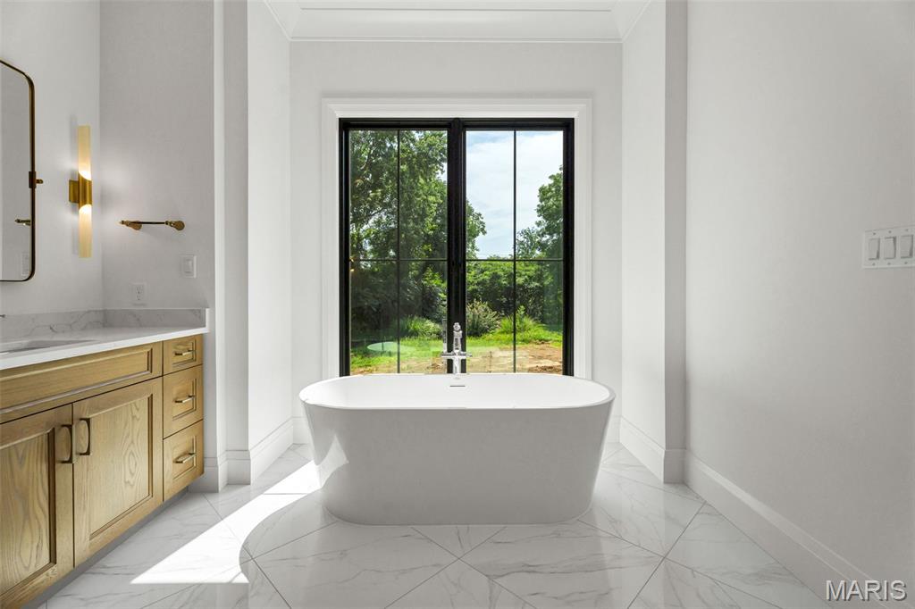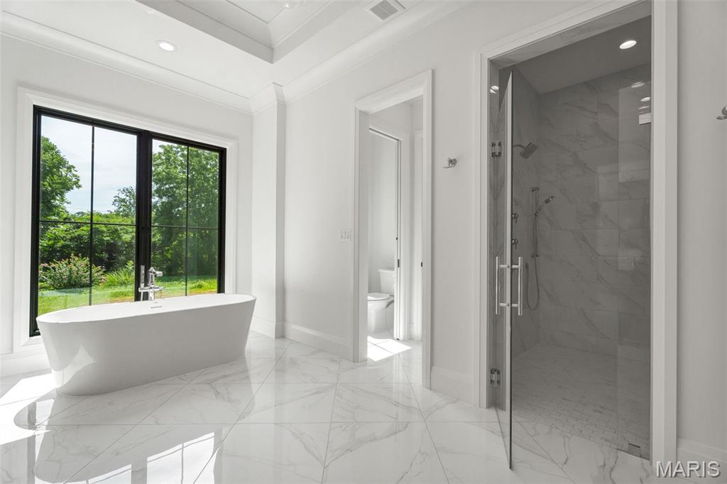 Introducing the Roclare II at Ballas Ridge by Kemp Signature Homes. Offering over 5,400 sq. ft. above grade, this transitional-style residence blends refined architecture with modern luxury. Situated on estate homesites ranging from 1.6–6.5 acres, Ballas Ridge is Des Peres’ most exclusive new enclave with only four rare opportunities to build. Step through the grand 2-story foyer to sweeping sight lines and an opulent main-floor owner’s suite featuring a spa-like bath and expansive walk-in closet. The main level highlights 10-foot ceilings, wide-plank hardwoods, meticulous millwork, and a chef’s kitchen outfitted with high-end finishes, opening to a spacious hearth room. An inviting covered patio with fireplace provides seamless indoor-outdoor living and a backdrop ideal for entertaining or future pool. Upstairs, enjoy 9-foot ceilings, three generously sized bedroom suites—each with a private bath—plus a flexible rec area and second laundry. You can add the optional finished lower level offers additional living, guest, and entertainment space. Ballas Ridge combines natural beauty—rolling terrain, mature trees, and a pond—with unmatched convenience to top schools, fine dining, shopping, hospitals, and major highways. Build your dream home with Kemp Signature Homes, where every detail is tailored to your lifestyle
