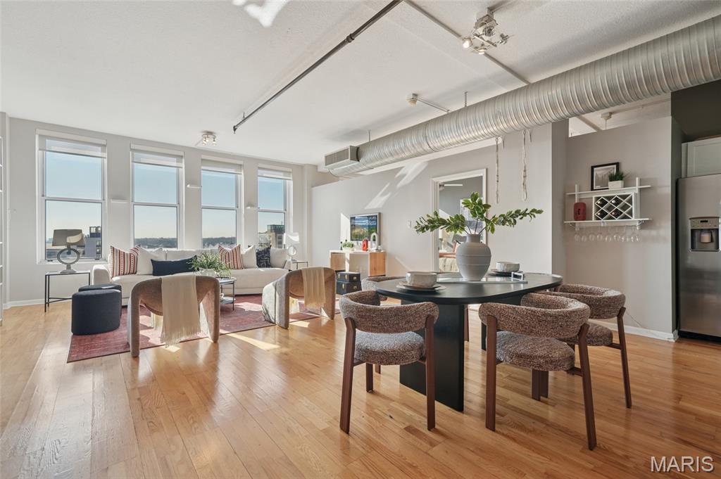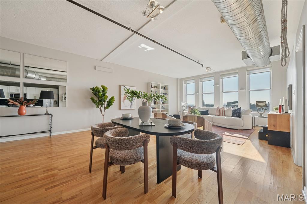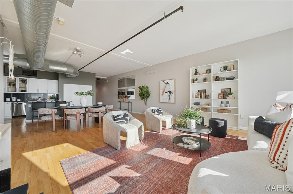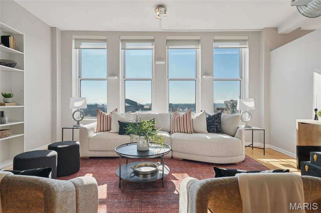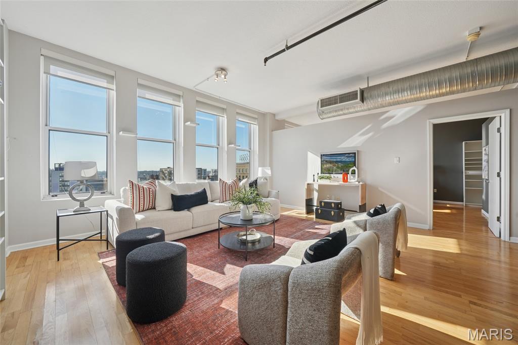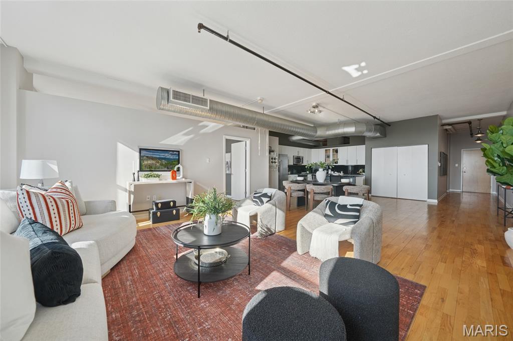 Experience elevated urban living in this spacious 10th-floor loft featuring limitless skyline views. A full wall of windows floods the open floor plan with natural light, highlighting soaring ceilings and stylish finishes throughout. The well-appointed kitchen boasts granite countertops, while each of the two bedrooms enjoys its own private bath for ultimate comfort and convenience .The spacious primary suite is complete with a large walk-in closet for exceptional storage. Secure garage parking provides peace of mind, and the rooftop balcony—complete with grill, ample seating, and panoramic views including the iconic City Museum—offers the ideal setting for entertaining. With unbeatable walkability and a central, convenient location, this loft delivers the best of city living.