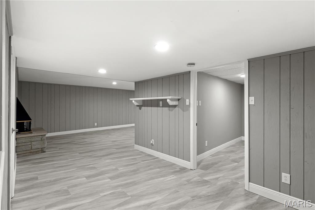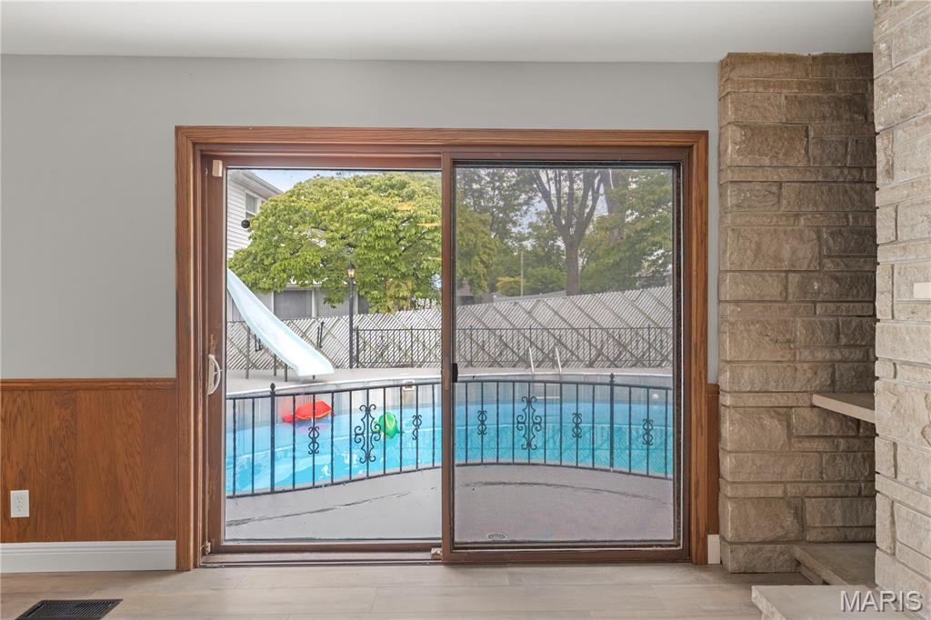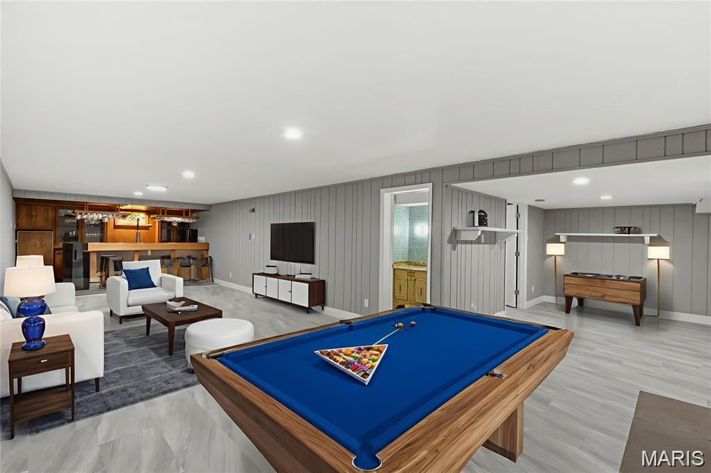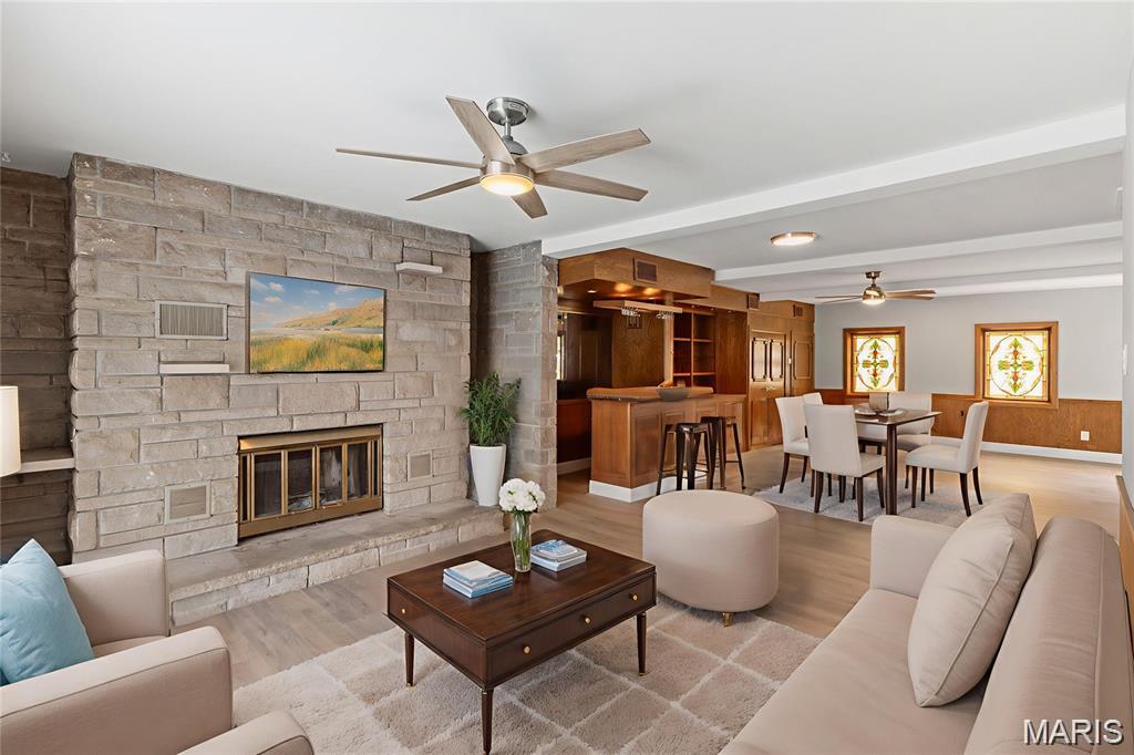 Tucked away in a quiet, Florissant neighborhood, this fabulously updated 3 bedroom, 3 bathroom mid-century modern home is full of surprises at every turn. The exterior features low-maintenance vinyl siding and a charming covered front porch, while the backyard is a true oasis complete with a gorgeous in-ground pool, waterslide, private bar, and fireside seating area perfect for relaxing or entertaining. Inside, you’re welcomed by a stylish formal living room, followed by a cozy sitting area that leads to a stunning kitchen featuring granite countertops, custom cabinetry, and stainless steel, gallery-grade appliances. Just beyond the kitchen is an expansive family room with custom built-ins, a bar area, a fireplace, and abundant seating space—perfect for gathering with family and friends. Down the hall, you’ll find two guest bedrooms, a full bath, and a lovely primary suite with dual closets and a modern ensuite that includes a walk-in shower, sleek vanity and bidet toilets. The lower level is equally impressive, boasting a spacious rec room with an electric fireplace, an eclectic full bathroom, and an incredible bar, a tap system, and multiple refrigerators. You’ll also find a finished bonus room, cedar closet, and plenty of storage. Final renovations in progress.