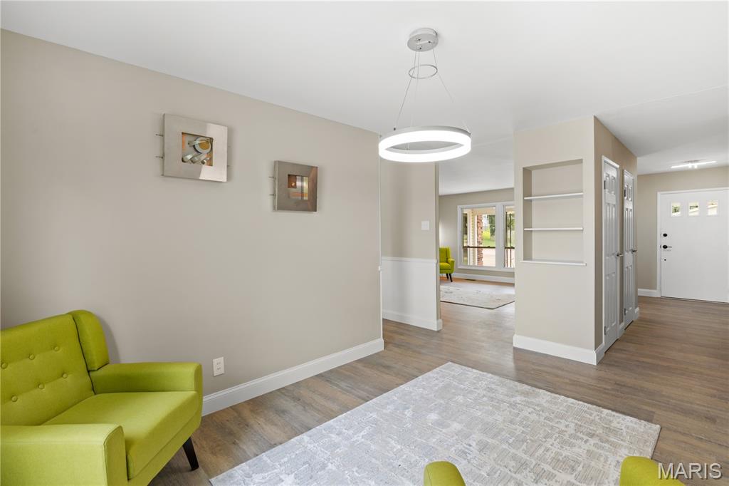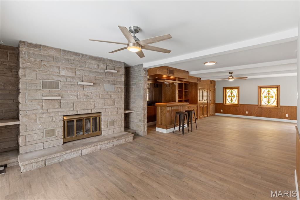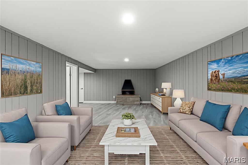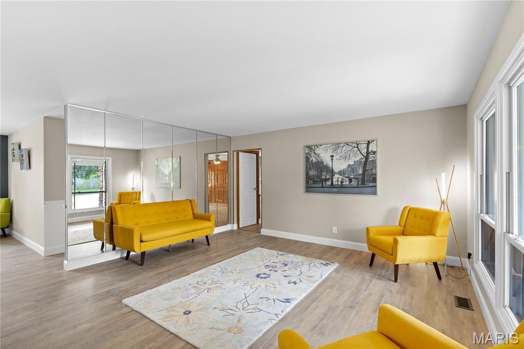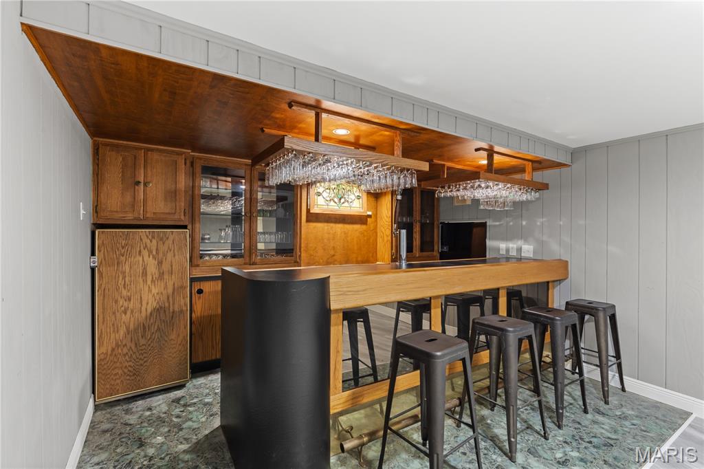Tucked away in a quiet, Florissant neighborhood, this fabulously updated 3 bedroom, 3 bathroom mid-century modern home is full of surprises at every turn. The exterior features low-maintenance vinyl siding and a charming covered front porch, while the backyard is a true oasis complete with a gorgeous in-ground pool, waterslide, private bar, and fireside seating area perfect for relaxing or entertaining. Inside, you’re welcomed by a stylish formal living room, followed by a cozy sitting area that leads to a stunning kitchen featuring granite countertops, custom cabinetry, and stainless steel, gallery-grade appliances. Just beyond the kitchen is an expansive family room with custom built-ins, a bar area, a fireplace, and abundant seating space—perfect for gathering with family and friends. Down the hall, you’ll find two guest bedrooms, a full bath, and a lovely primary suite with dual closets and a modern ensuite that includes a walk-in shower, sleek vanity and bidet toilets. The lower level is equally impressive, boasting a spacious rec room with an electric fireplace, an eclectic full bathroom, and an incredible bar, a tap system, and multiple refrigerators. You’ll also find a finished bonus room, cedar closet, and plenty of storage. Final renovations in progress.