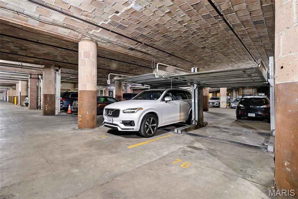 Come ENJOY Downtown living in an open living concept condo on Washington Avenue in the Beautiful, Historic Ely Walker Building! This Art Deco building from the golden era of Saint Louis' Textile History Greatness was renovated keeping in mind and leaving in place architecturally important features, such as the wood floors and gigantic windows looking out onto Washington. There was no sacrificing the nicer upgrades though, just check out the solid wood cabinets, granite countertops, and wine fridge in the kitchen, soaking tub AND shower in the master bath, and double pane insulated windows. In this secure building, this condo has its own parking place with a lift system so you can park TWO vehicles in the underground garage, or there is street parking if you prefer or for guests, and of course there is a storage space also located in the basement. You can walk or take a short drive to all the great downtown attractions, City Museum is less than a block away, Enterprise Center is 1/2 mile away, the soccer stadium City Park is less than a mile away, and Busch Stadium is 1 mile away, just to give you an idea of how close you will be to everything, not to mention fireworks shows you can watch from the rooftop terrace. This condo has a bonus room most other condos in the building don't have which you can use as a den or office space. The newer, and barely used washer and dryer are included in the sale. Come and live in Downtown Saint Louis! Enjoy the best of urban living!