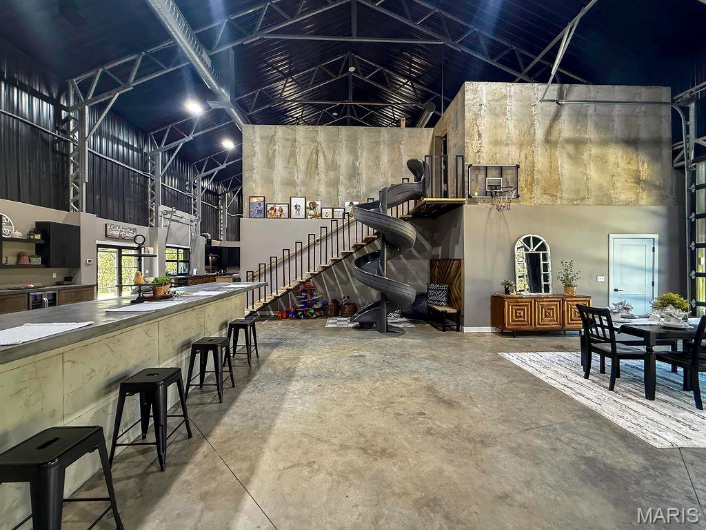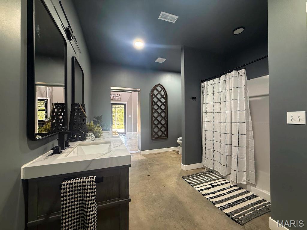 The ultimate blend of modern luxury and country living with this extraordinary new construction Barndominium home set on approximal 73+ acres of woods and creak views. Unlike anything you've seen before, this home delivers bold style, sleek finishes, and craftsmanship in every detail. The open concept design features soaring ceilings, heated concrete floor, custom cabinetry and designer chef kitchen with stamped concrete countertops. Spacious walk in pantry room off of kitchen. The great room centers around a striking concrete TV wall with cozy electrical fireplace, open concept dining room area and large concrete design bar area. The primary suite offers an walk-in closet and spa- like shower and soaking tub. Second bedroom and full bath, with laundry completes the main living quarters. Upstairs, enjoy a loft living area, third bedroom, extra storage room, sleeping room and even a slide! The heated and cooled garage boast four bays, including a 14' door- perfect for trucks, toys or equipment. Beyond the home, discover a gated retreat with woods, open ground and creek - private, peaceful and breathtaking land. This incredible opportunity to own a large tract of land with endless possibilities is a perfect setting for hunting, investors, developers or creating a family compound with potential to subdivide into multiple homesites. Truly an unmatched property you won't want to miss. This property has additional 25 acres to purchase-see commercial MLS listing details.