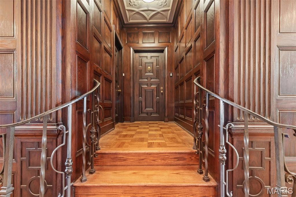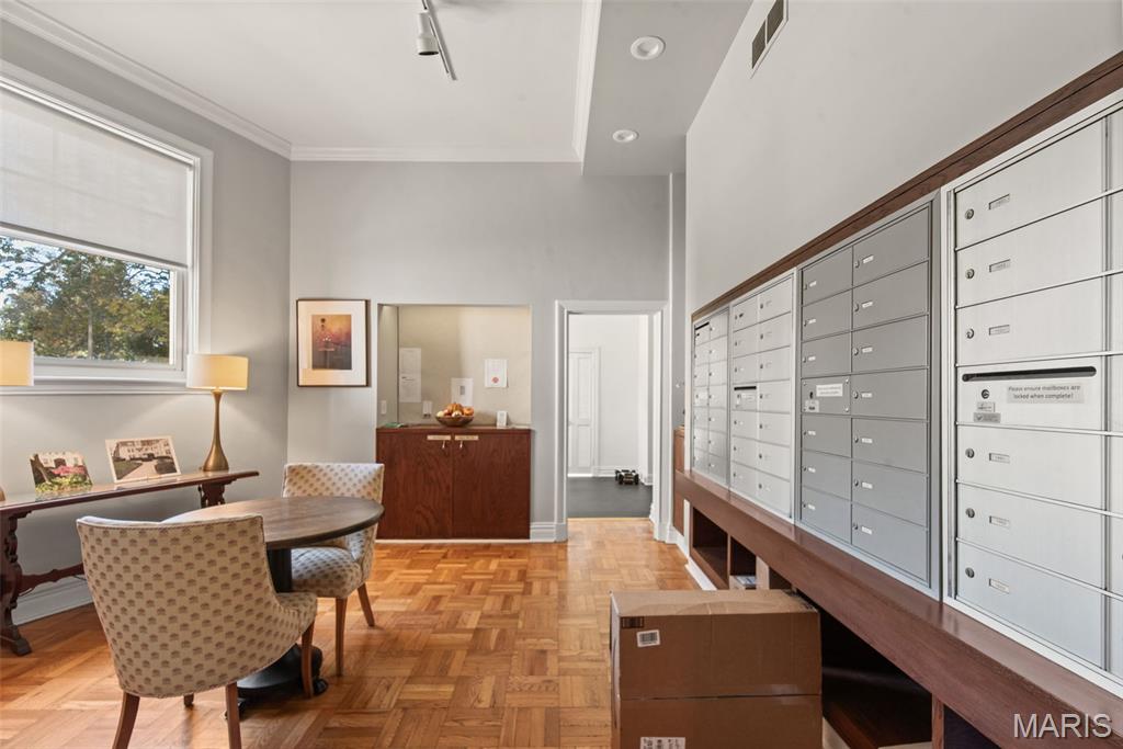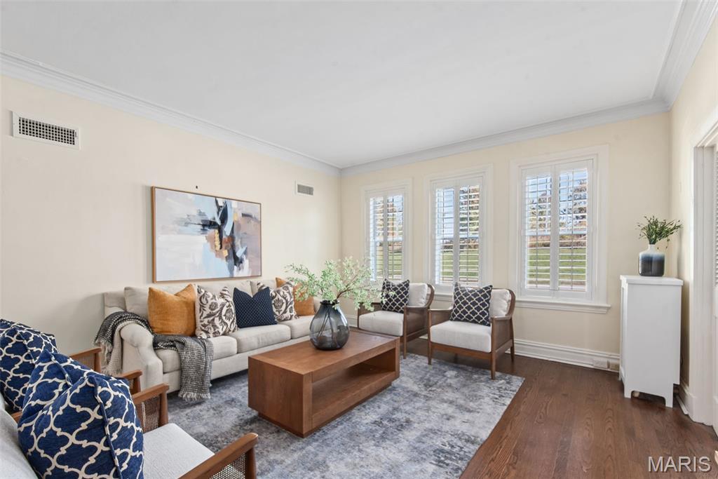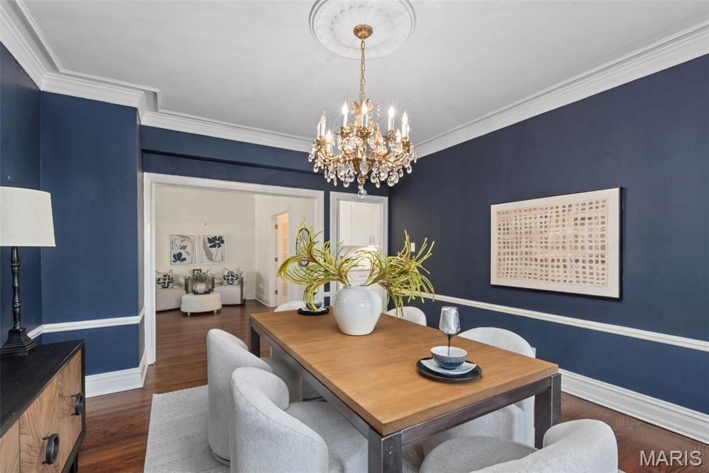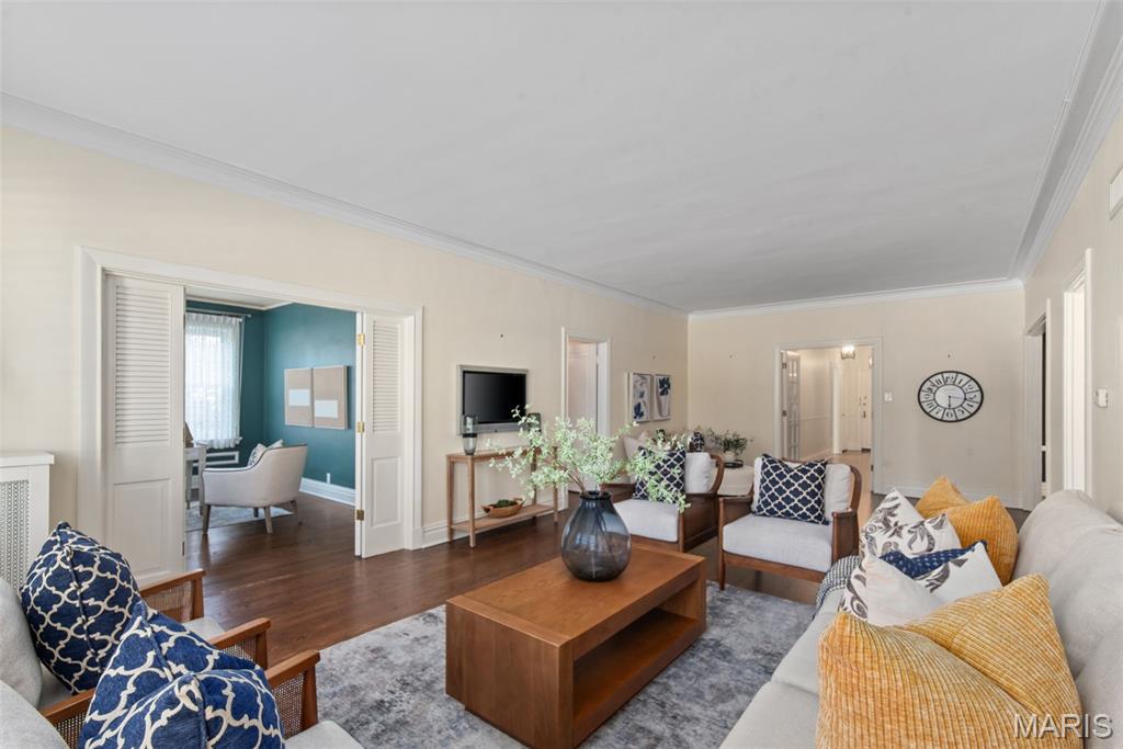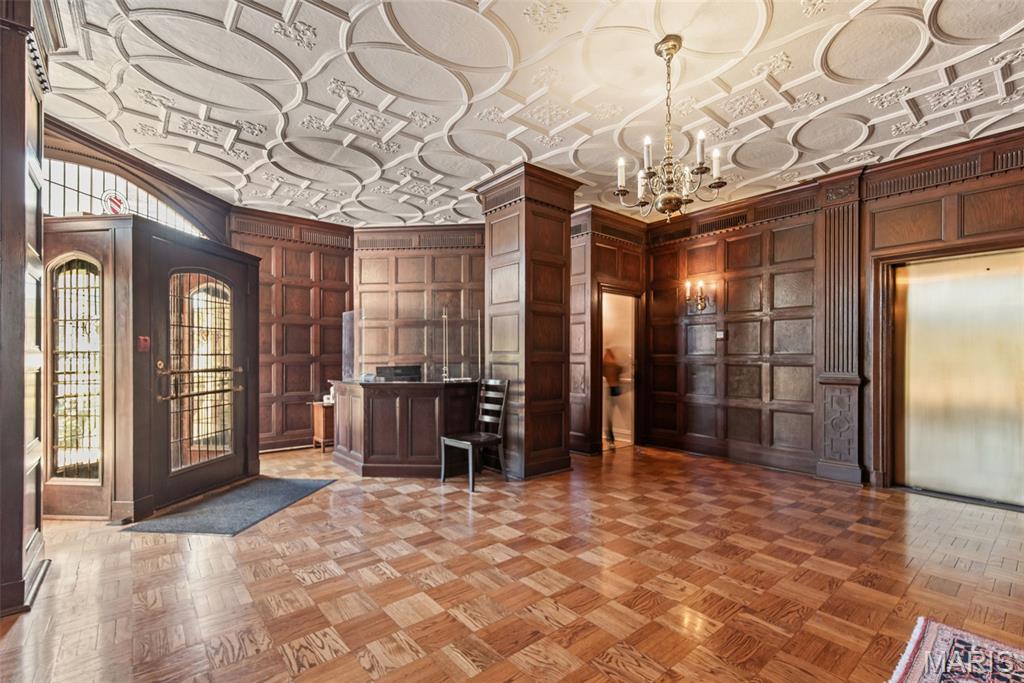 This grand and spacious first-floor residence offers timeless sophistication in one of St. Louis’s most desirable historic buildings—ideally positioned across from Forest Park, just two blocks from the boutiques and restaurants of DeMun, and a short walk to Washington University. Designed for both elegance and ease, the home lives like a private estate within the city, featuring three generous bedrooms plus a versatile bonus suite—ideal for a home office, guest quarters, or live-in support. A graceful entry from the building’s stately main lobby sets the tone for the home’s impressive scale. Expansive, light-filled rooms showcase soaring ceilings, intricate millwork, and architectural details that reflect the building’s rich heritage. The updated kitchen blends classic style with modern function, while oversized windows frame peaceful views of Forest Park and the building’s garden terrace—creating a sense of calm that’s rare in city living. Residents enjoy a true full-service lifestyle with 24/7 concierge and on-site management, valet parking, private garage access, fitness center, and beautifully maintained common spaces. The monthly condo fee supports this level of service, along with building systems, exterior care, water, and a well-funded reserve—offering a more predictable, low-maintenance ownership experience. Thoughtful updates, in-unit laundry, and abundant storage enhance everyday comfort. A rare opportunity to own a residence of this scale and character in a building where location, service, and long-term stewardship come together.
