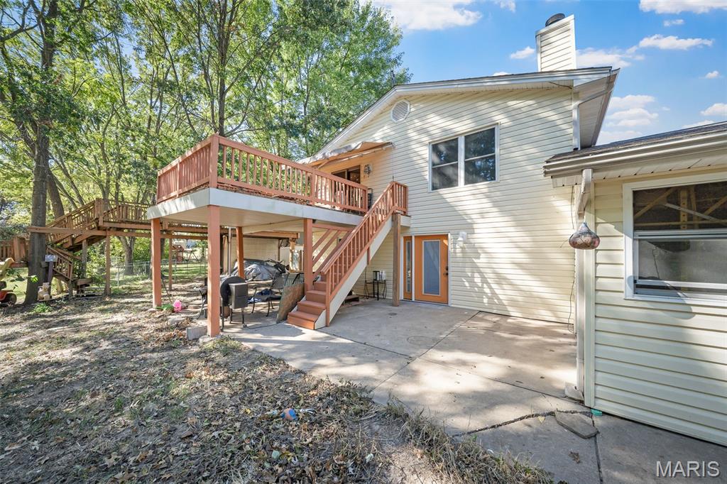 Please make an appointment to see this like new 3000 square foot split level mansion on a large private estate backed by treelined common ground that is just a block from everything. 3 beds (add 3 more if needed), 3 baths, outdoor shower. There is way too much to list, must see to appreciate!! A few minutes away from GM. bike to just anywhere in the city. Both major highways convenient. New roof, siding, windows doors. Upgraded interior. New luxury renovated bathrooms with heated floors and unlimited hot water. New high efficiency furnace HVAC. fencing interior redone. Upgraded electric Lot is adjacent to a a HUGE, treelined area with atv trails, private backyard with a 60ft easement. City of Wentzville 4th of July fireworks near your backyard. No HOA restrictions or fees which is unheard of in this part of the city. Cable, Fiber, Satellite or 5G internet available. Smart home features. Large accessory treehouse structure 2 car garage and multi car ports with attached tool shed The backyard is vehicle accessible. New vinyl privacy fence Finished basement with fireplace, 9 head swiss shower large laundry room with 2 washers and 2 driers (room for more HE equipment) Walk out basement/ complete privacy Non flooding ground level Electric rarely cuts out, all lines underground the property is on the same main electric grid as the police station and hospital. 2nd owner since 2008