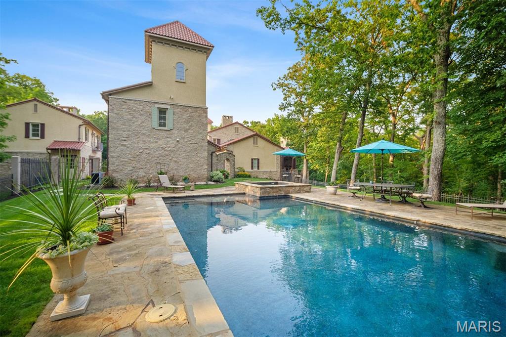 Centered on 13.4 acres and inspired by a tuscan village, this estate is a hidden masterwork. in one of St. Albans’ most coveted enclaves. Designed to enchant, the residence offers 5 bedrooms, 6 full and 1 half baths, and 4 garage bays, effortlessly blending timeless Old World craftsmanship with modern indulgence. Dramatic stone walls, wide-plank and limestone floors, and custom alder cabinetry anchor the interiors with warmth and weight. The primary suite is a private retreat with a vaulted ceiling, cove lighting, a 20’ x 10’ dressing room, and a spa-caliber shower. A whimsical clock tower serves as a pub and bath for the Mediterranean-style heated saltwater pool and spa, while the carriage house provides a fully appointed guest apartment. Whether taking in treetop views from the third-floor observatory or experiencing the drama of the estate’s signature water feature, this home offers a living experience where comfort, character, and architecture converge effortlessly.