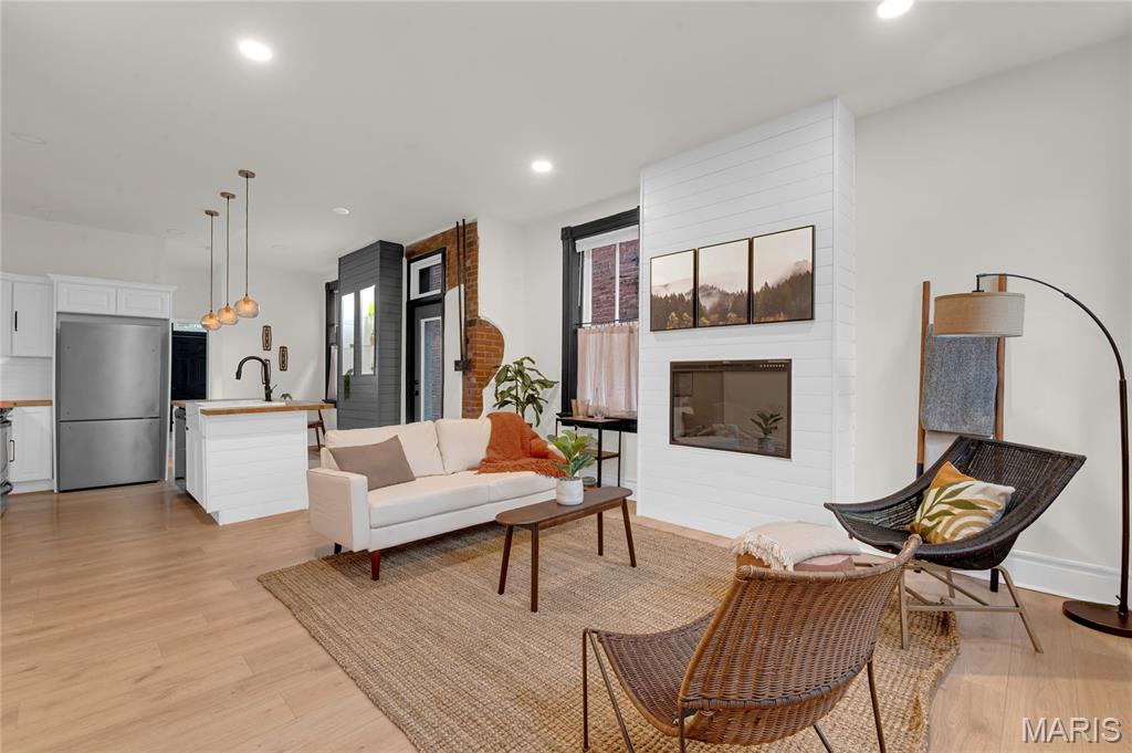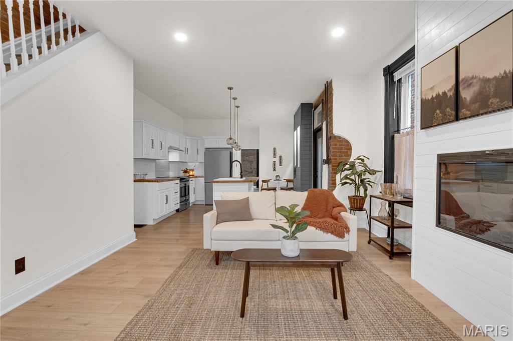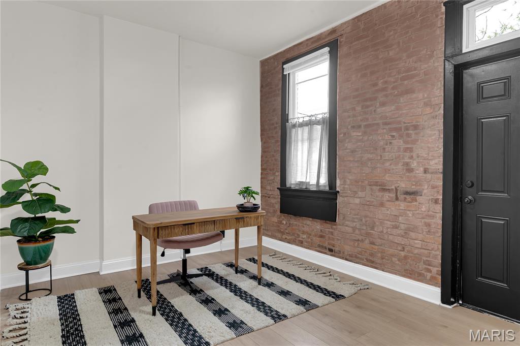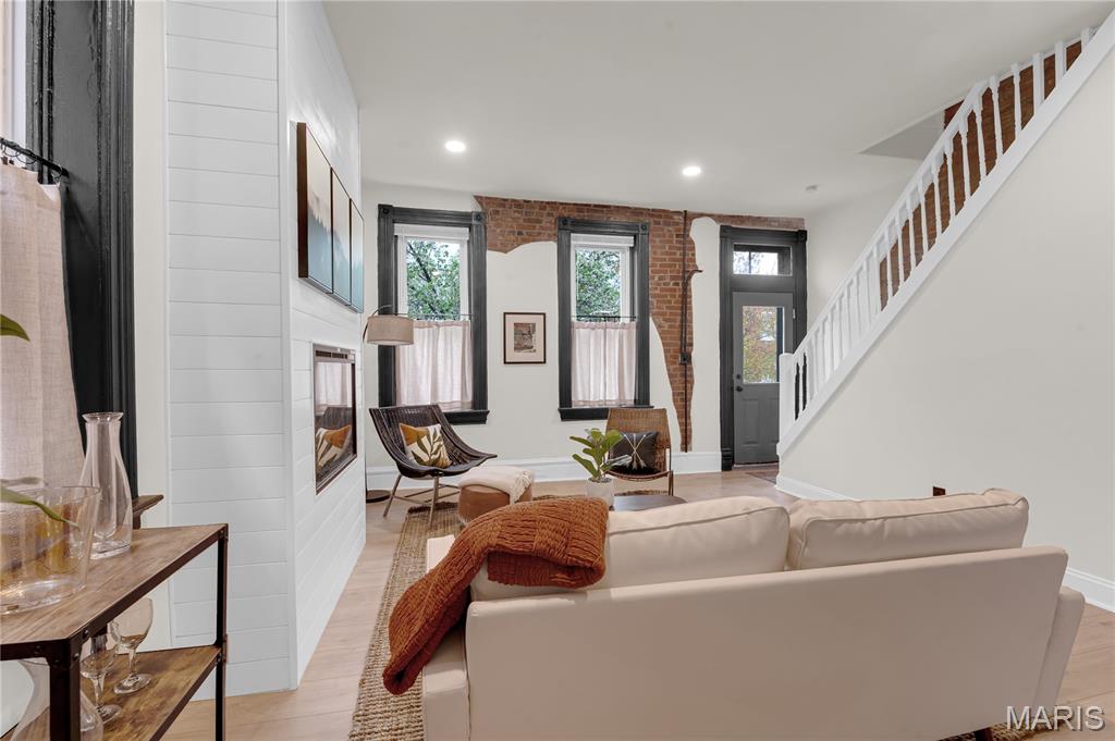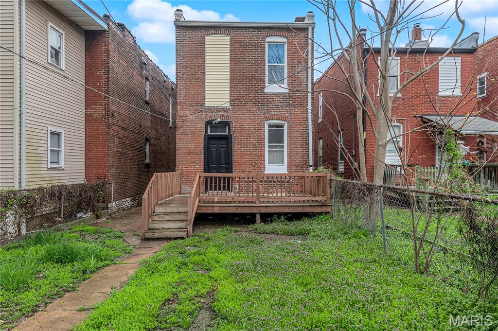 Welcome to 3442 Pennsylvania, your beautifully updated urban oasis in historic Gravois Park! Blending timeless South City character with modern functionality, this fully renovated two-story brick home offers a rare mix of historic detail, open design, and stylish upscale finishes throughout. Step inside to find soaring ceilings, exposed brick accents, new vinyl plank flooring, a sleek modern fireplace, and custom built-ins that add warmth and personality. The open-concept main level flows naturally between the living, dining, and kitchen areas—ideal for entertaining or everyday comfort. The kitchen features stainless steel appliances, crisp white cabinetry, and generous counter space. The first floor also includes a full bedroom and bath, perfect for guests, an office setup, or multigenerational living. Upstairs, the spacious primary suite offers a private retreat with a walk-in closet and beautifully finished bath, while another large bedroom and full bath complete the second level with plenty of natural light and storage. Each space has been thoughtfully finished to maximize comfort, flow, and usability while retaining the home’s original charm. Outside, a private fenced yard provides room for pets, gardening, or a quiet evening around the firepit—an uncommon luxury in the heart of the city. With updated systems and finishes throughout, this home is truly move-in ready, offering peace of mind and years of low-maintenance living. Located in Gravois Park, one of South City’s most architecturally rich and rapidly improving neighborhoods, 3442 Pennsylvania puts you within minutes of everything that makes the area special. Walk to Cherokee Street for coffee, art and authentic dining, explore nearby Benton Park or Tower Grove Park on the weekend, or enjoy easy access to major highways, hospitals, and downtown. The neighborhood’s mix of classic architecture, creative energy, and strong community spirit make it one of St. Louis’s most vibrant urban settings.