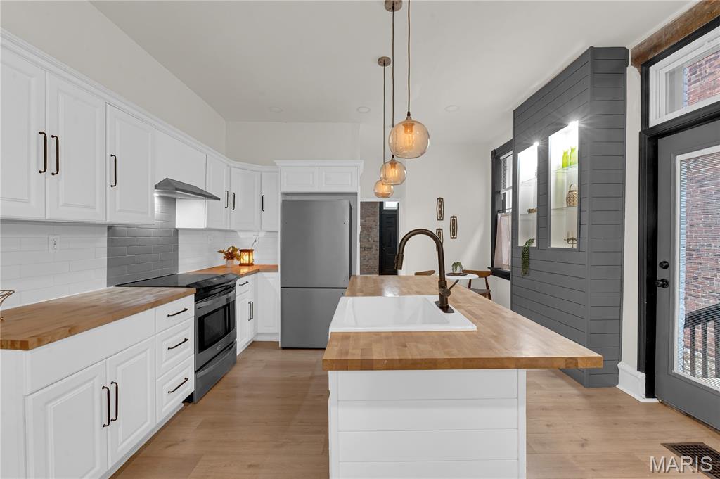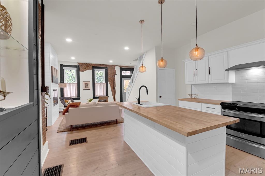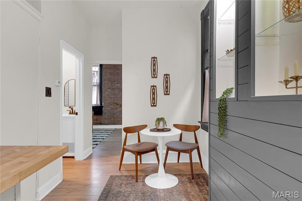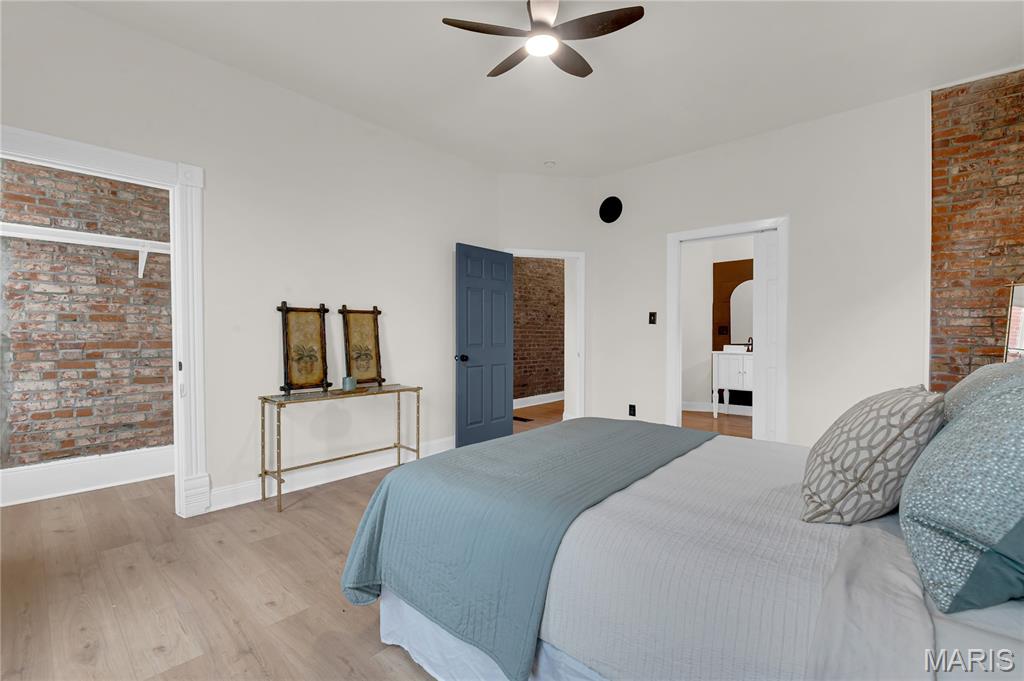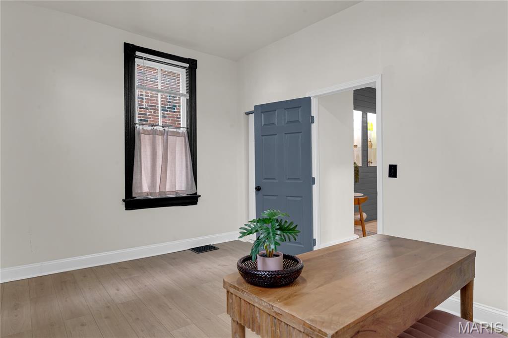 Welcome to 3442 Pennsylvania, your beautifully updated urban oasis in historic Gravois Park! Blending timeless South City character with modern functionality, this fully renovated two-story brick home offers a rare mix of historic detail, open design, and stylish upscale finishes throughout. Step inside to find soaring ceilings, exposed brick accents, new vinyl plank flooring, a sleek modern fireplace, and custom built-ins that add warmth and personality. The open-concept main level flows naturally between the living, dining, and kitchen areas—ideal for entertaining or everyday comfort. The kitchen features stainless steel appliances, crisp white cabinetry, and generous counter space. The first floor also includes a full bedroom and bath, perfect for guests, an office setup, or multigenerational living. Upstairs, the spacious primary suite offers a private retreat with a walk-in closet and beautifully finished bath, while another large bedroom and full bath complete the second level with plenty of natural light and storage. Each space has been thoughtfully finished to maximize comfort, flow, and usability while retaining the home’s original charm. Outside, a private fenced yard provides room for pets, gardening, or a quiet evening around the firepit—an uncommon luxury in the heart of the city. With updated systems and finishes throughout, this home is truly move-in ready, offering peace of mind and years of low-maintenance living. Located in Gravois Park, one of South City’s most architecturally rich and rapidly improving neighborhoods, 3442 Pennsylvania puts you within minutes of everything that makes the area special. Walk to Cherokee Street for coffee, art and authentic dining, explore nearby Benton Park or Tower Grove Park on the weekend, or enjoy easy access to major highways, hospitals, and downtown. The neighborhood’s mix of classic architecture, creative energy, and strong community spirit make it one of St. Louis’s most vibrant urban settings.