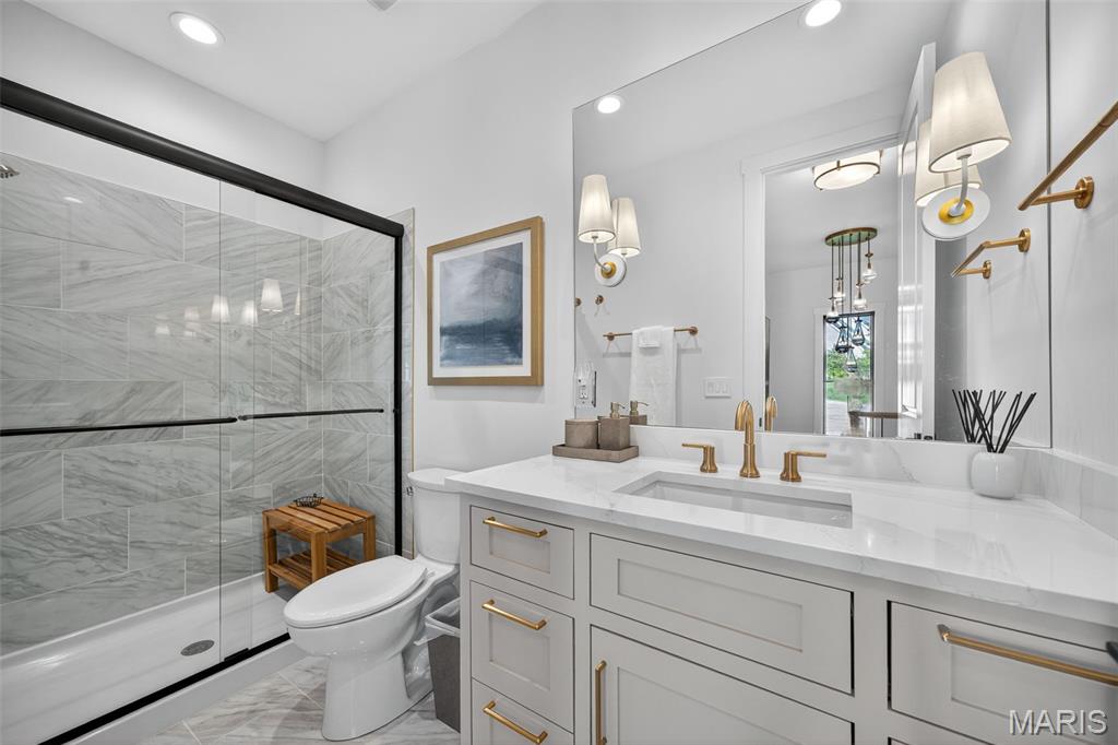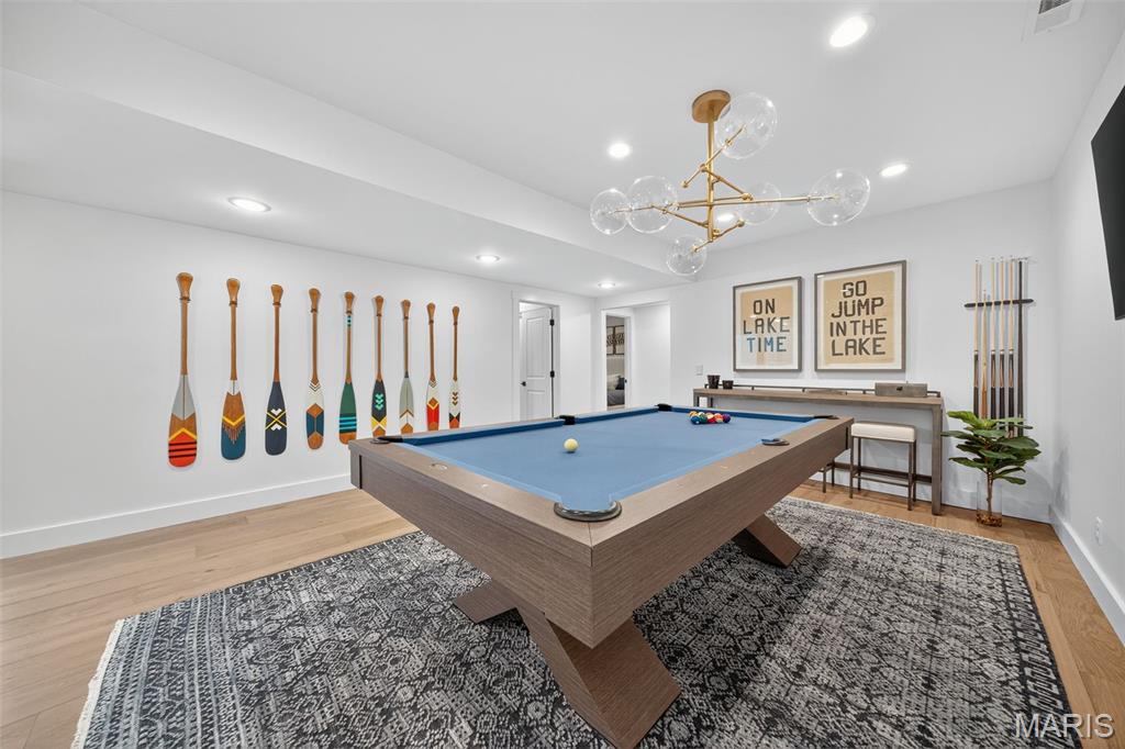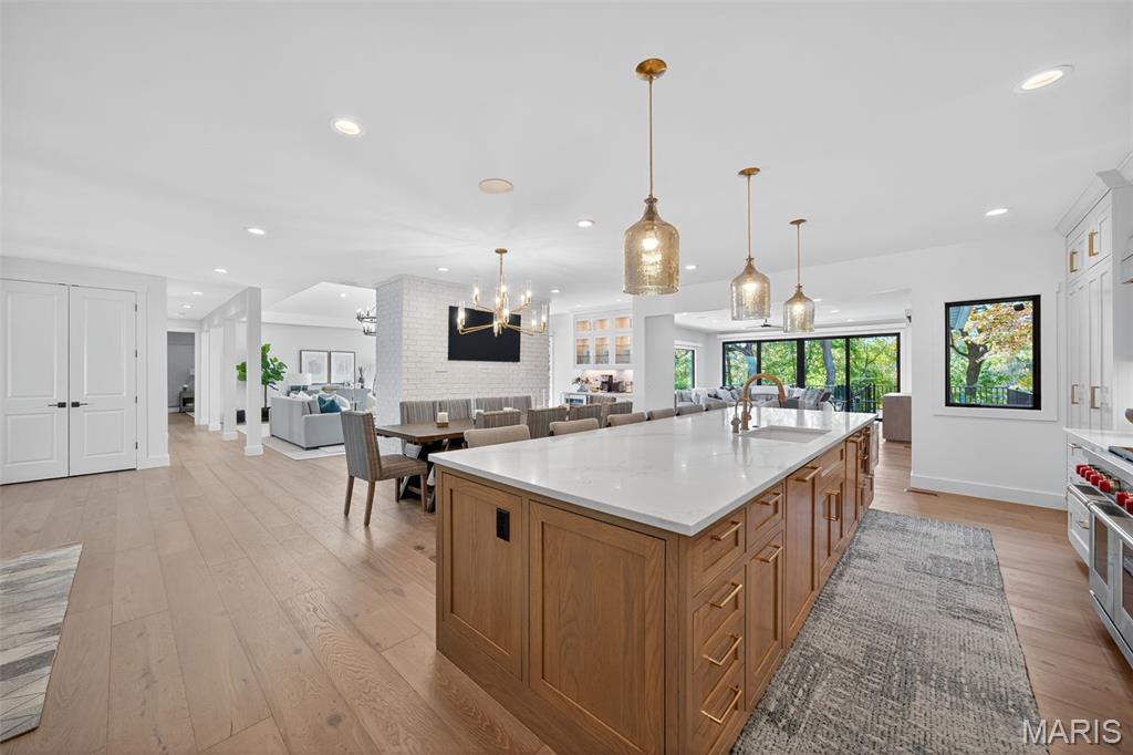 Stunning, fully remodeled waterfront ranch in Lake St. Louis, ideally positioned on a deep-water, no-wake cove with a new covered private dock and lift. Rebuilt down to the studs with uncompromising quality and professionally designed throughout, this move-in-ready home offers over 6,000 square feet of impeccably finished living space on a picturesque .76-acre lot, with panoramic lake views from nearly every room. The home impresses from the moment you arrive. The exterior features whitewashed brick, James Hardie siding, Pella windows and doors, and a grand arched entryway, creating timeless curb appeal. Inside, you are immediately captivated by scenic views and beautifully curated living spaces designed to maximize both comfort and style. At the heart of the home is a show-stopping designer kitchen featuring Caesarstone countertops, custom cabinetry, Wolf and Sub-Zero appliances, two dishwashers, and an oversized island—ideal for entertaining. The kitchen flows seamlessly into the breakfast room, dining room, living room, and sunroom, all thoughtfully positioned to capture breathtaking lake views. The vaulted great room offers a grand yet inviting atmosphere with a gas fireplace, wet bar, and a wall of Pella windows overlooking the lake. The sunroom is a standout space, wrapped in windows and flooded with natural light, with Pella sliding doors that open to the composite deck—creating an effortless indoor-outdoor connection and the feel of being open to the outdoors. The primary suite is a private retreat, showcasing tranquil lake views, a tray ceiling, dual walk-in closets, and a luxurious spa-inspired bath. The main level also includes an office or additional bedroom, a second full bath, and a spacious laundry room with custom built-ins that connects to the oversized three-car garage. The walkout lower level expands the living space with a large family room featuring a gas fireplace, wet bar, and Pella doors opening to the paver patio with an outdoor gas fireplace. Additional lower-level highlights include a second recreation or game room, three bedrooms, two full baths, a second laundry room with custom storage, and a four-seasons room—perfect for enjoying lake views year-round. Outdoor living is exceptional, with the lake just steps from your door. Amenities include a wrap-around composite deck, four-seasons room, lower-level paver patio with gas fireplace, water-level patio, and covered dock with lift. Located in the sought-after Eastern Shore Estates, this rare lakefront offering delivers unmatched craftsmanship, comfort, and an extraordinary lifestyle. In addition, this home is within the Lake St Louis community association which gives you access to pools, tennis courts, golf, the club house, and more! Approx. thirty minutes to the international airport and conveniently located near shopping, restaurants, & parks. Don’t miss this move in ready waterfront home!
