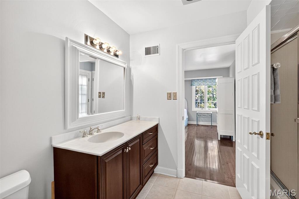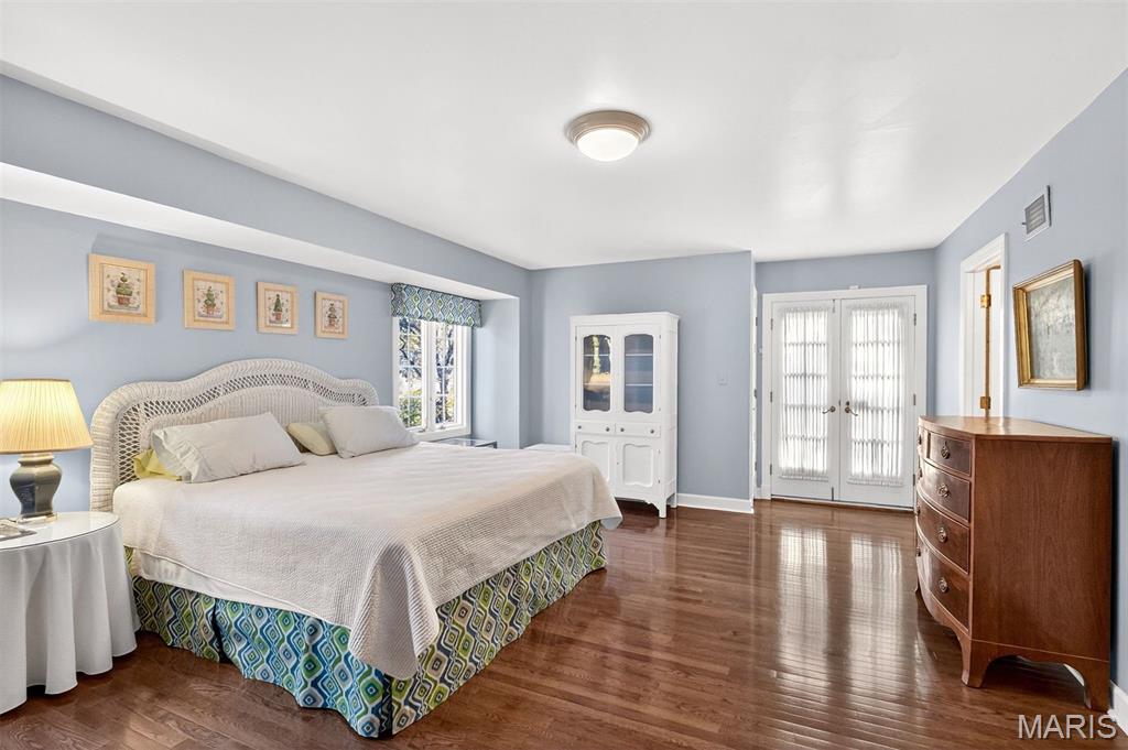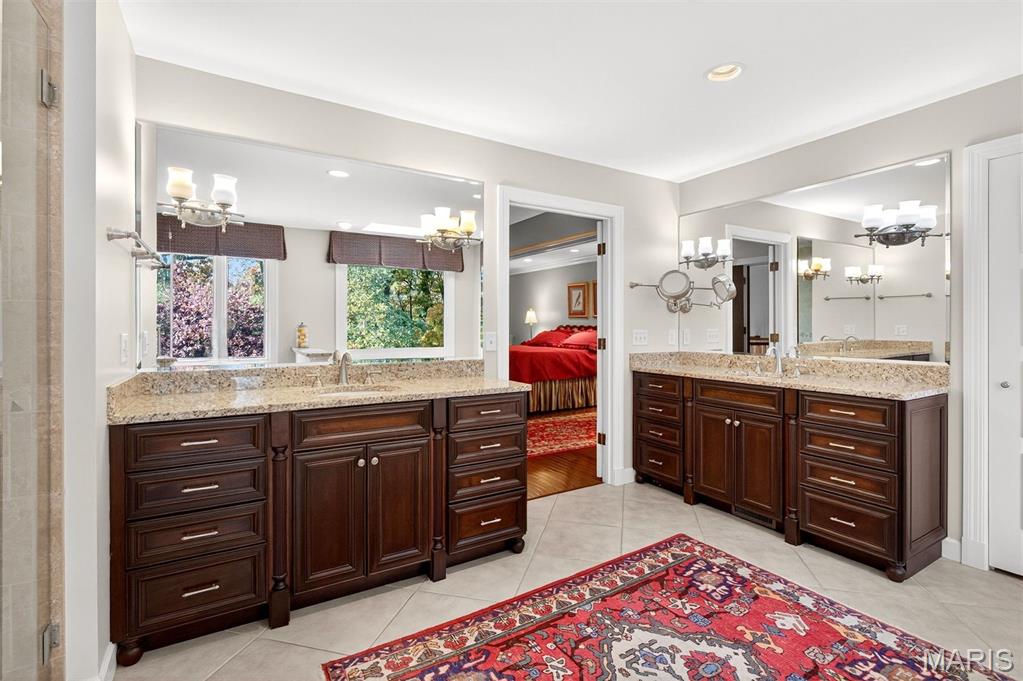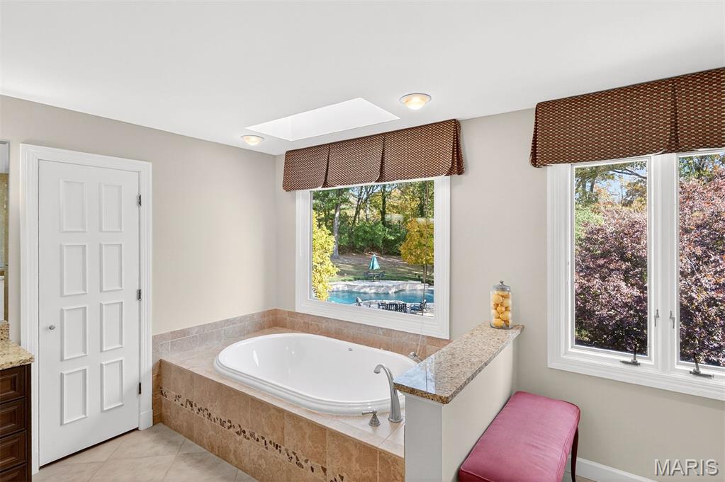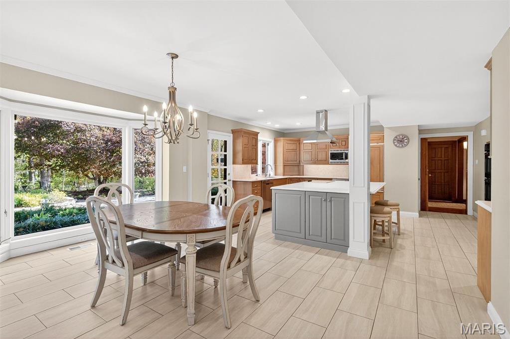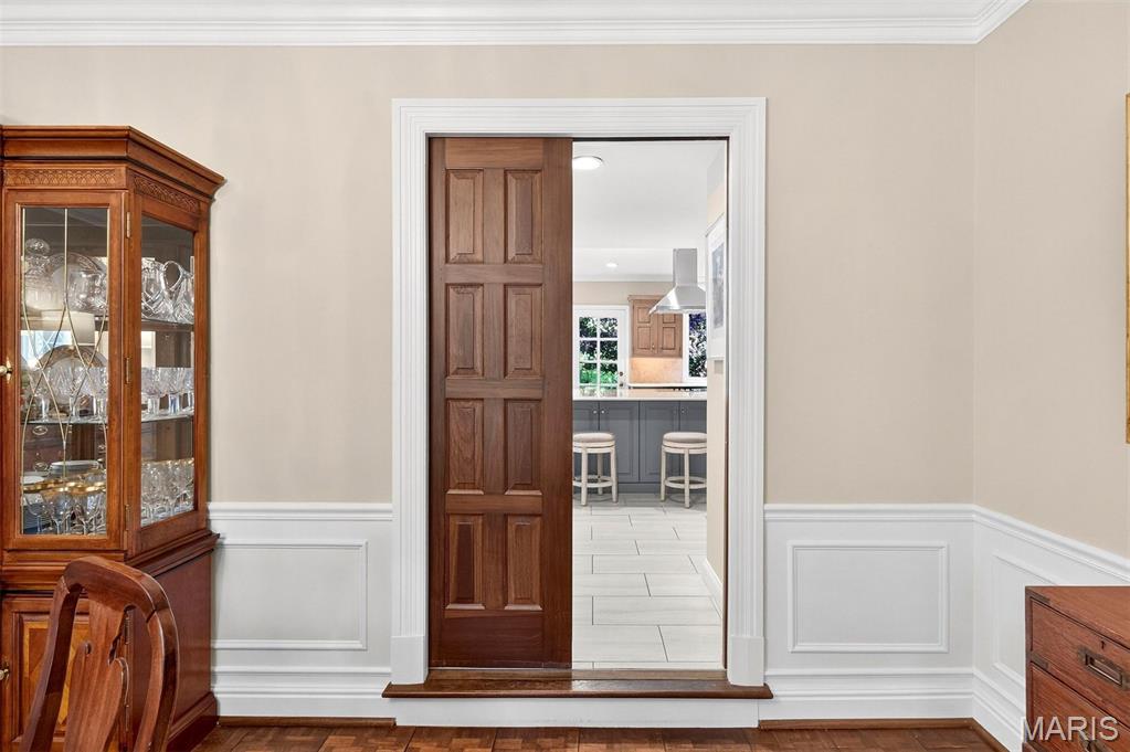 New look! New Price! Nestled in a serene, park-like setting of 3.5+ acres in one of Ladue’s most prestigious neighborhoods, this exquisite Tudor-style residence blends timeless elegance with modern comfort. Surrounded by mature trees and lush landscaping, the property offers a tranquil retreat complete with a saltwater pool, scenic pond, and multiple terraces designed for outdoor enjoyment and entertaining. Inside, classic architectural details abound, including leaded glass windows, parquet flooring, crown molding, and wainscoting. The grand entry welcomes you with a sweeping curved staircase leading to the second floor, setting the tone for the refined spaces beyond. Currently staged as a library, the Living Room's built-in bookcases and gas fireplace with marble surround provide the perfect spot for quiet reading or work. The expansive Family Room, inspired by a ski chalet, is truly a showpiece—featuring a massive stone fireplace as its focal point, a pub-style wet bar, a wall of built-ins, and two sets of French doors opening to a covered terrace that extends the living space outdoors. Ideal for entertaining, the large formal Dining Room is complemented by a spacious modern kitchen with ample room for casual dining and its own gas fireplace, creating a warm and inviting atmosphere. The main level also includes a guest suite that can serve as a second primary or in-law suite, offering flexibility and privacy. Convenience abounds with laundry rooms on both the main and second floors, as well as a perfectly situated second half bath for pool days. Upstairs, the stunning Primary Suite provides a luxurious escape with elegant finishes and serene views of the grounds. A rare combination of character, craftsmanship, and comfort, don't miss this opportunity to make this estate your own private piece of paradise.