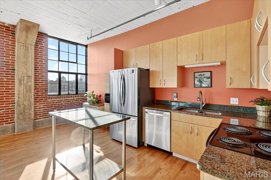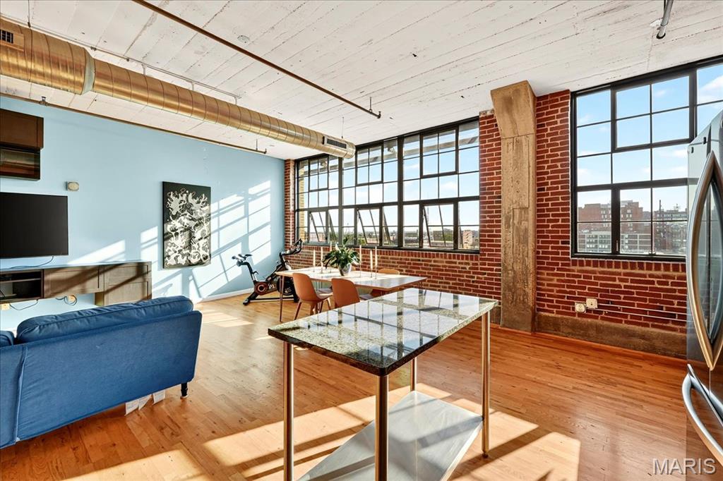 If light, bright, and city-sleek is your vibe, this 7th-floor beauty at The Lofts at 2020 Washington checks every box. The open-concept layout is filled with natural light, bouncing off warm wood floors and classic exposed brick that whisper of the building’s historic roots. A wall of windows frames downtown’s best views—including a postcard-perfect views of Downtown St. Louis and the iconic Gateway Arch. The spacious bedroom and two full baths are a rare downtown find, and all appliances stay (yes, even the washer and dryer!). The open layout makes entertaining easy, while the updated kitchen—with its nearly new fridge and dishwasher—anchors the space in both form and function. Park securely in your enclosed garage space and enjoy rooftop gatherings with a view that overlooks Energizer Park Soccer Stadium. Your enclosed garage parking spot keeps city living easy and secure. It’s all here—style, comfort, and a front-row seat to the heartbeat of St. Louis.