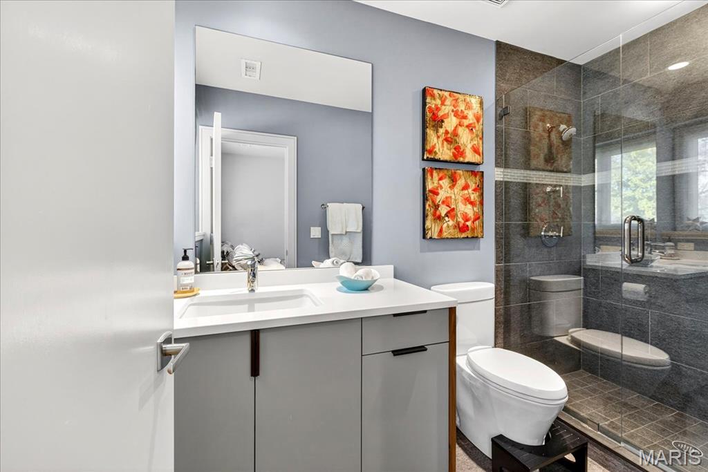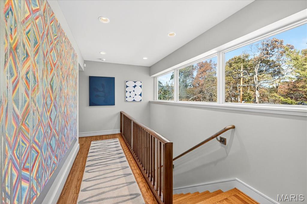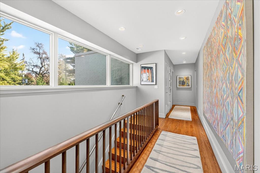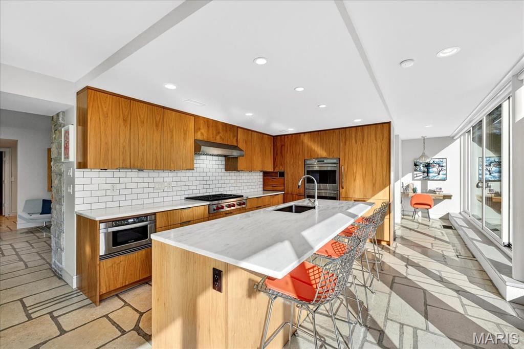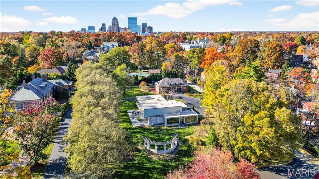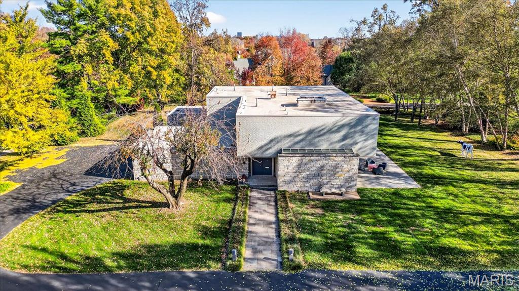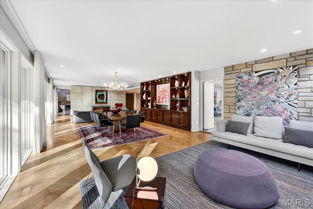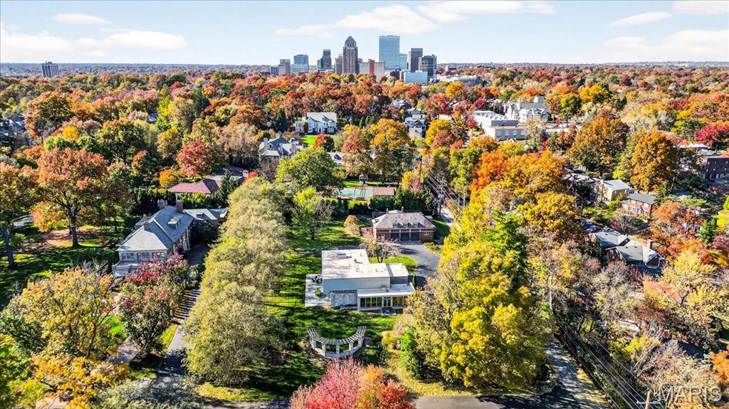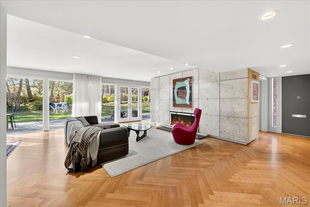 This architecturally significant Mid-Century Modern masterpiece has been thoughtfully and beautifully updated for today’s lifestyle. The exceptional residence showcases clean lines, expansive glass, and an open-concept floor plan designed to maximize natural light and effortless flow. The main floor living spaces include the living room with gas fireplace, dining room with built ins, inviting sitting room and separate office. The chef’s kitchen is appointed with high-end appliances, custom Henry Built and Classic Woodworking cabinetry, and offers generous gathering space ideal for entertaining. Each of the four spacious bedrooms features its own ensuite bath, offering both privacy and refined comfort. Stunning terrace and balcony spaces extend the living experience outdoors, overlooking the serene and private yard. Complementing the main residence is a separate traditional carriage house featuring a three-car garage, dedicated gym space, and a fully equipped second-floor apartment complete with two bedrooms, full bath, kitchen and living area- perfect for guests or extended family. The carriage house adds an additional 1663 square feet. Three zones of geothermal HVAC provide exceptional energy efficiency and year-round comfort in the main house. A rare opportunity to own a true architectural gem with modern luxury and versatility.