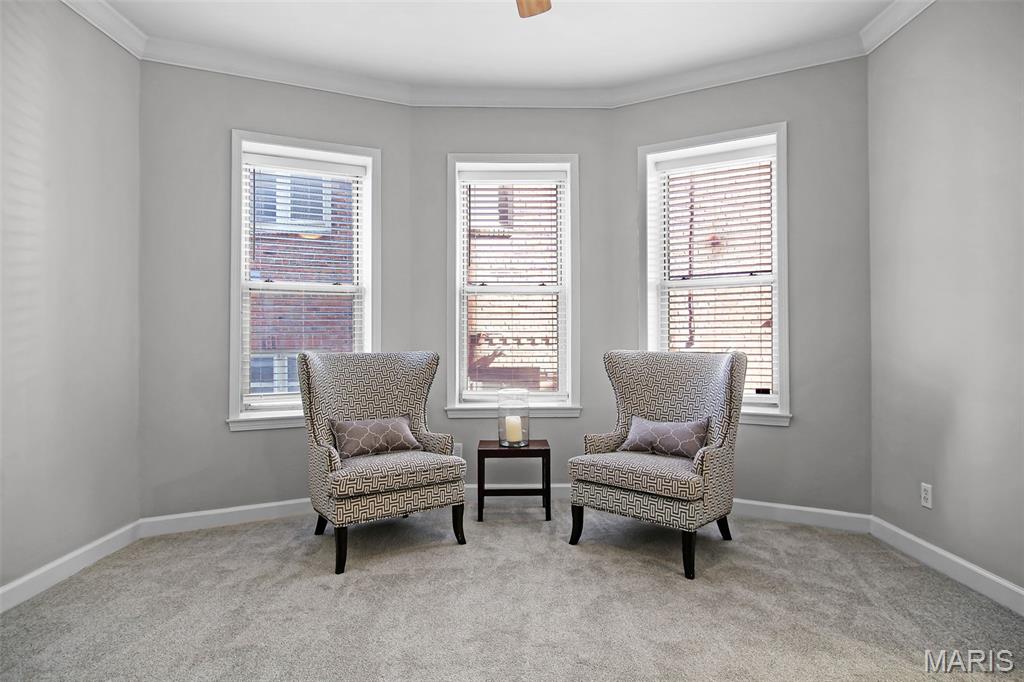 Welcome to this charming and spacious condo in the heart of Central West End! This beautifully renovated ground-level condo seamlessly blends timeless historic architecture with thoughtful modern updates throughout. Step inside to a bright and inviting living room, perfect for relaxing or entertaining, featuring a classic bay window and a cozy wood-burning fireplace. The updated kitchen is equipped with stainless steel appliances, custom cabinetry, and generous counter space, offering both style and functionality. Both large bedroom suites include a generous walk-in closet and a fully renovated bath. Enjoy the convenience of a spacious in-unit laundry/mudroom, offering additional storage and organization for everyday living. A detached garage offers a reserved space within a secure lot for off-street parking. This one-condo-per-floor building lets you experience everything that makes Central West End such a unique and vibrant part of St. Louis.