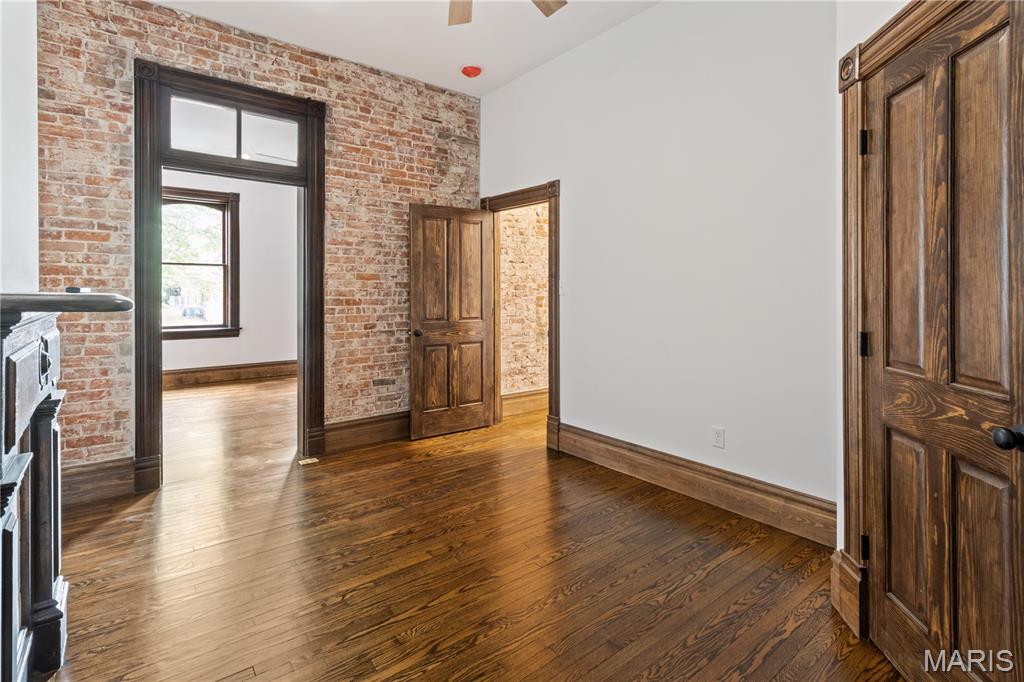 Welcome to this newly renovated, single-family, historic home located in Downtown St. Louis. As you walk in the front door, you will notice the beautiful staircase with exposed stone and brick wall, trim, and hardwood flooring. The main level consists of a half bath with brick flooring, living room, spacious kitchen, and laundry room. The kitchen includes butcher block countertops, ceramic tile floors, new stainless-steel appliances, and plenty of cabinet space for all your storage needs. The spacious master bedroom includes a walk-in closet, original hardwood floors, and a master bath with quartz dual vanity and walk-in shower. The upper level also contains two additional bedrooms with walk-in closets, original hardwood flooring, brick accent walls, and a fully renovated bathroom with quartz countertops and shower/tub combo. New HVAC, plumbing, electrical and a clear occupancy inspection from the city. Enjoy the convenience of Downtown St. Louis, and close proximity to the Historic Cherokee Street District, restaurants, and Anheuser-Busch. Discover the charm of this move-in ready home!