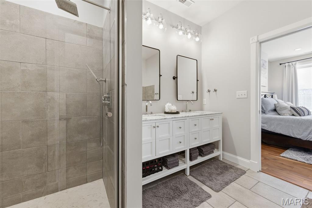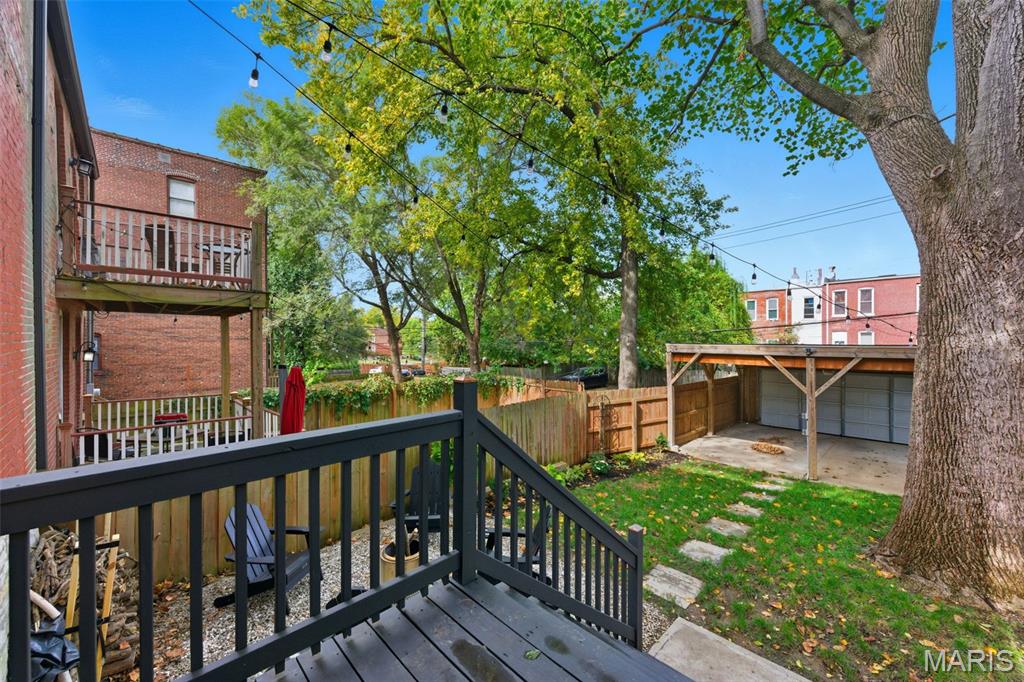Welcome to your beautifully recently remodeled brick home in sought-after Fox Park! This stunning 2,500 sq. ft. residence combines classic St. Louis charm with modern open-concept living. Featuring 10-ft ceilings on the main level and 9-ft ceilings upstairs, this home feels spacious and full of natural light. Enjoy 3 large bedrooms, 2.5 baths, and a thoughtful layout designed for both comfort and style. The primary suite is a true retreat with a massive walk-in closet, double vanities, a separate soaking tub and shower, and a private enclosed toilet. The hall bath also offers double sinks — perfect for busy mornings — and the upstairs laundry adds everyday convenience. The chef-inspired kitchen includes a walk-in pantry, Tivoli quartz countertops, and an oversized sink, making it perfect for cooking and entertaining. A flexible lower level with a walk-in front entry provides plenty of potential — ideal for a home office, studio, or fitness space. Outside, you’ll love the California-style 2-car carport, which doubles as a covered patio for gatherings, plus a fully fenced backyard for privacy. Located between Lafayette Square, Soulard, and Benton Park, this home offers an active lifestyle close to amazing restaurants, Tower Grove Park, Missouri Botanical Garden, South Grand Shopping district, downtown St. Louis and many other local favorites. Tax abatement through 2025. Turnkey, move-in ready! Don’t miss this Fox Park gem — schedule your showing today!