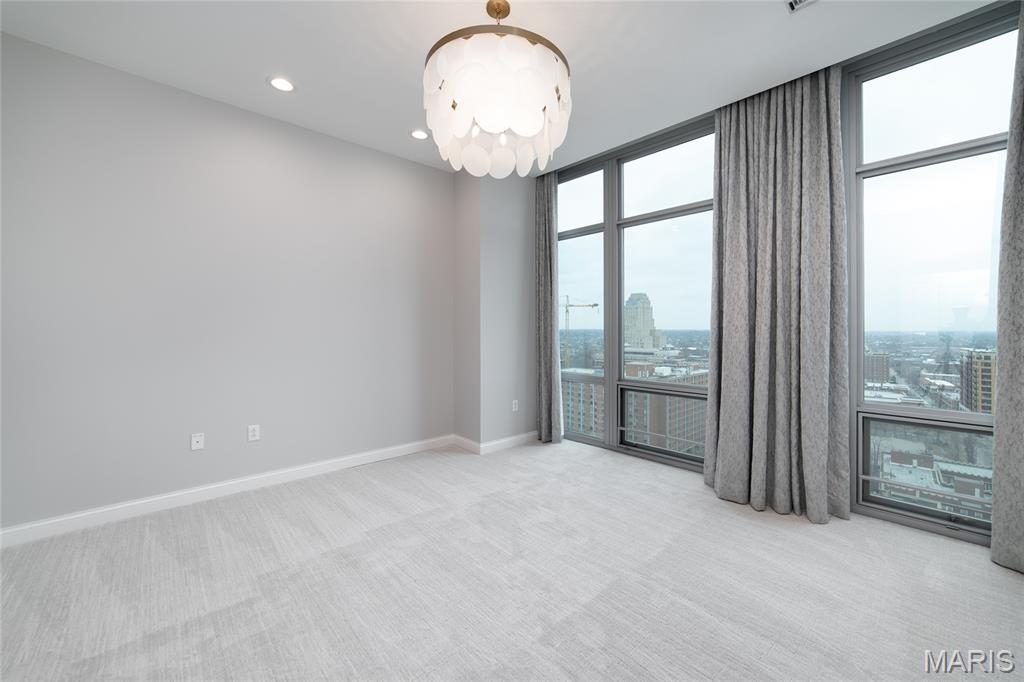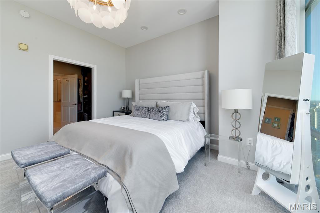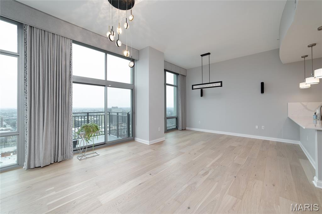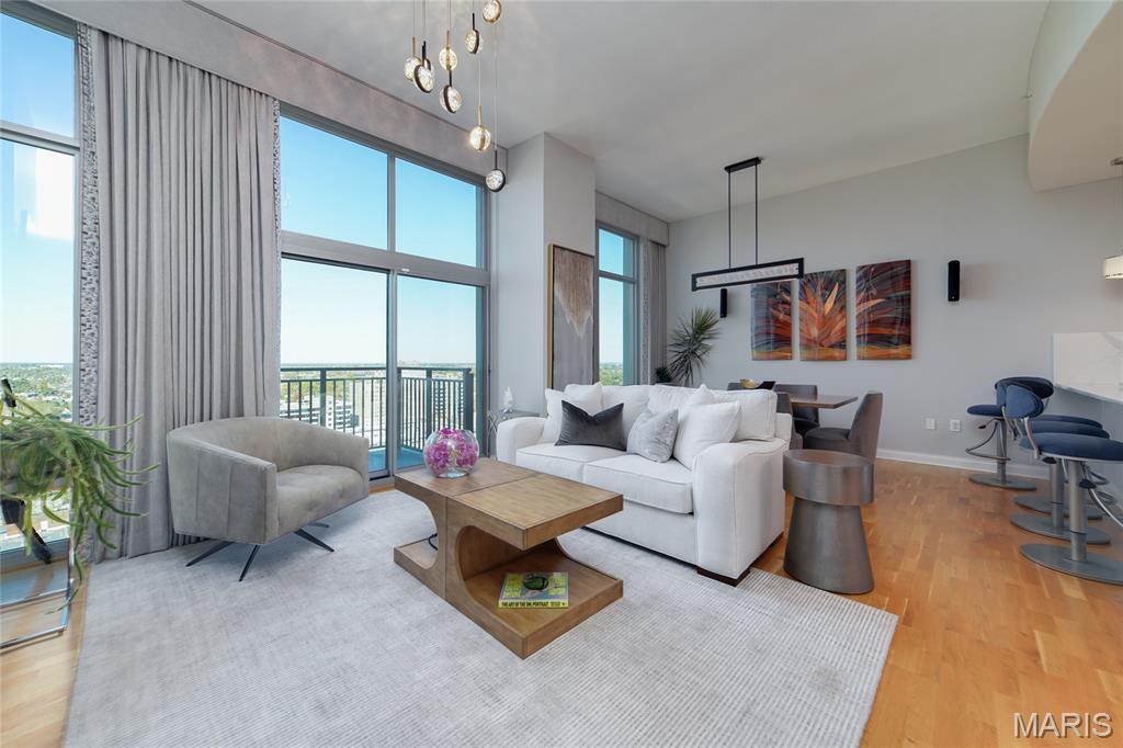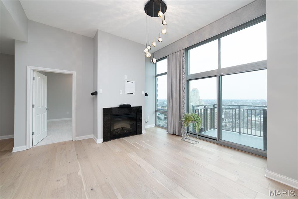 This elegant condominium seamlessly combines contemporary luxury with thoughtful design, offering a refined living experience throughout every space. The open-concept living and dining area welcomes you with sophisticated custom draperies—stationary panels trimmed in a rich, textured fabric that frame the room beautifully. A stunning Mariana Glitzer 9-light LED chandelier sparkles above the dining space, complemented by the sculptural Equilibrium pendant light that adds a modern artistic touch. The electric fireplace serves as the focal point of the living area, creating both warmth and ambiance for relaxing evenings or stylish entertaining. New carpeting and European White Oak Engineered flooring has been added. The adjacent office area is designed for productivity and style, and two ceiling can lights that provide ample illumination for work or creative projects. This well-appointed space offers both function and quiet retreat within the home. The kitchen is a chef’s delight, centered around a high-end GE Café 30-inch dual-fuel range with double ovens—perfect for cooking and entertaining alike. The Calacatta Leon Gold quartz counters deliver a luxurious aesthetic with their delicate veining and bright finish, complemented by a premium Kohler Simplice faucet and Kohler Prolific stainless steel sink. New pendant lights grace the breakfast bar, while four recessed can lights and a new flush fixture in the entrance ensure the entire kitchen is bright, inviting, and impeccably lit. The primary bedroom is a tranquil sanctuary, featuring plush new carpet that extends into the spacious closet. A graceful chandelier adds soft elegance, while remote-controlled blackout roller shades allow for total light control and restful sleep. Custom stationary drapes complete the refined aesthetic, creating a serene and private atmosphere. The adjoining primary bathroom continues the theme of comfort and sophistication, enhanced by four new can lights and updated lighting above the mirror. The double vanity offers abundant space, while the jetted tub and separate shower provide a spa-like retreat within the comfort of home. Additional features, including 11-ft ceilings, enhance the convenience and modern functionality of the residence. A stacked LG True Balance washer and dryer make laundry simple and efficient. The powder room has been tastefully updated with new lighting and a decorative ceiling that adds a touch of glamour. Fresh paint throughout the condominium lends a bright, pristine finish, while the Nest thermostat ensures effortless climate control. The Lutron lighting system allows you to set the perfect ambiance in every room with ease. Combining high-end finishes, modern upgrades, and timeless design, this condominium offers a truly elevated living environment—sophisticated, inviting, and ready to welcome you home.
