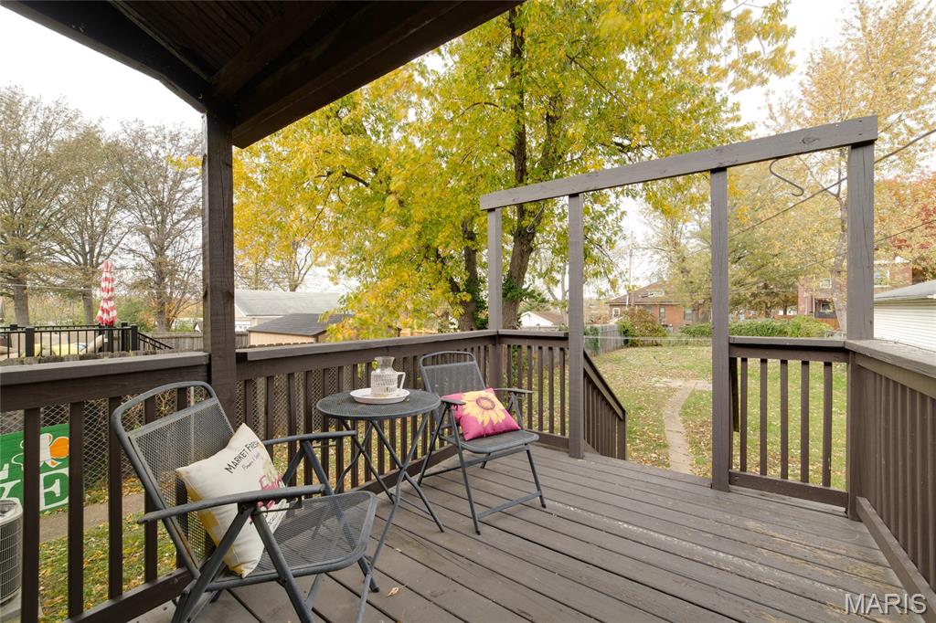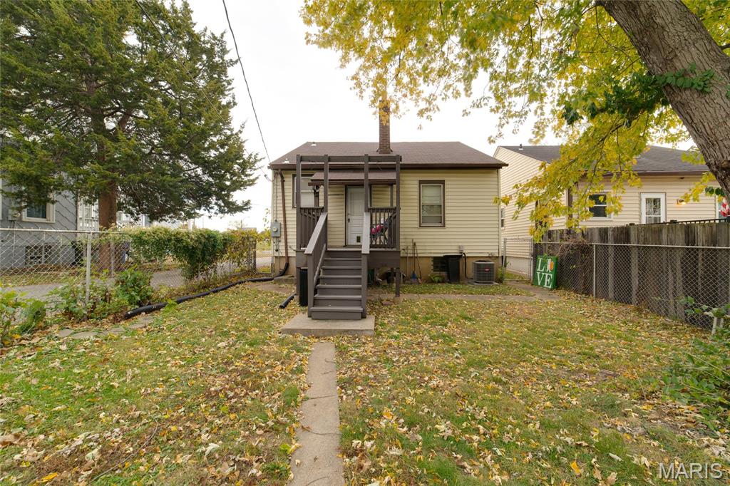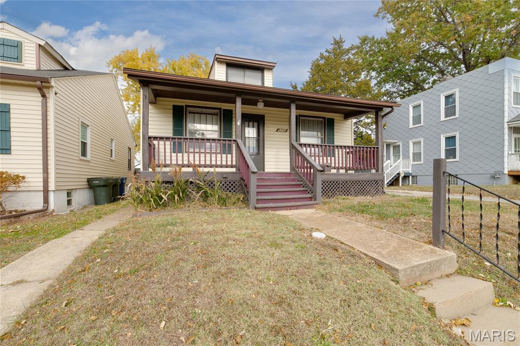 This charming 1923 bungalow in the Ellendale neighborhood, near the heart of Dogtown, offers recent updates while maintaining original character with lovely features, like striking stained-glass windows and exposed brick. A full, covered front porch welcomes you home, and through the door, the front room greets you with lovely design and light, flowing into the dining room. Both main-level bedrooms are generously sized and share a full bath. A darling kitchen is positioned to serve both indoor and outdoor areas, with door to the back deck and yard. A unique spiral staircase leads to a 440sf upper-level main bedroom suite with full bath, window-seat reading nook, its own mini-split HVAC unit, and lots of storage. The basement holds potential for improvements, with walk-up access to a level fenced backyard; W/D hook up. Street parking-only is no issue on a non-through street. Great access to St. Louis life, highways and major thoroughfares.
