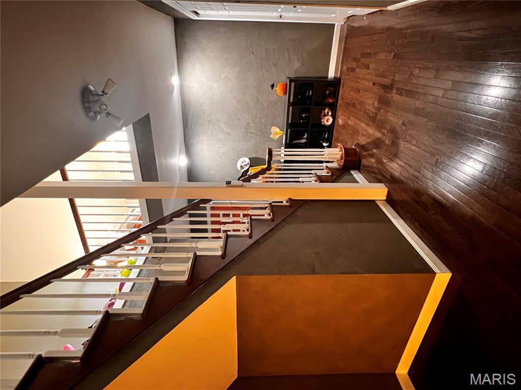 A Spacious 2 level condo in the newer section of the Historic, Goodall Manor Condo's. A short walk to Webster's community Rec Center complete with swimming pool. Easy access to I-44. Flexible floorplan. The main level features Laminate wood floors, a stylish foyer, spacious living & dining rooms with crown molding, a lovely balcony & a third bedroom currently used as family room/ Study with a dry bar & beautiful antique oak fireplace mantle. The updated kitchen features a unique mosaic ceramic tile floor & stainless appliances. There's a main floor laundry (with bonus separate shower) & half bath.. Upstairs, the large loft is currently used as a play room, perfect for home office or as additional sleeping space, featuring built-in shelving & vaulted ceiling. The primary bedroom includes window seat & walk-in closet with built in shelving, full bath with shower and updated vanity. The second upper level full bath in the hall, services the 2nd bedroom and condo at large There is a two-car detached garage, offering additional storage space. This is a truly an exceptional condo within strolling distance to one of the best equipped municipal recreation facility in St Louis County!