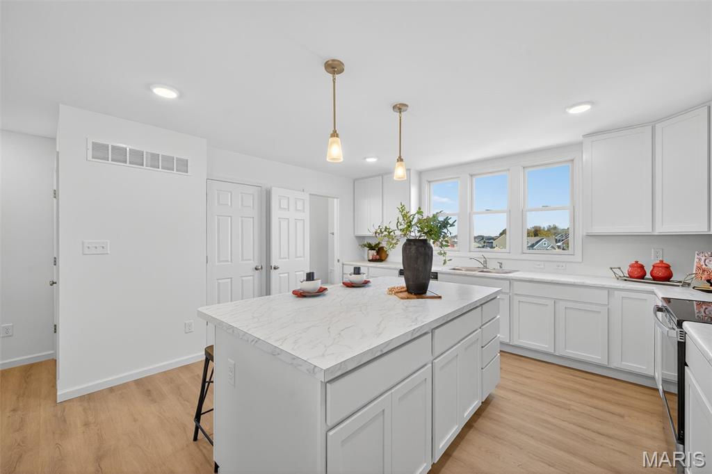 This Brand new 3 Bedroom, 2 ½ Bath Three Story Home has Upgrade Cabinets and Island, LVP Flooring in the Entry Foyer, Kitchen, Dining room and Living Room, Stainless Steel Appliances with Space saver Microwave, 2 Car Garage, Double Front Porch, Added Windows , Plus more! Price reflects builder discount. When you live in New Town you have access to over $10 million in amenities including parks, lakes, community waterpark, outdoor amphitheater, walkable stores, restaurants and shops!