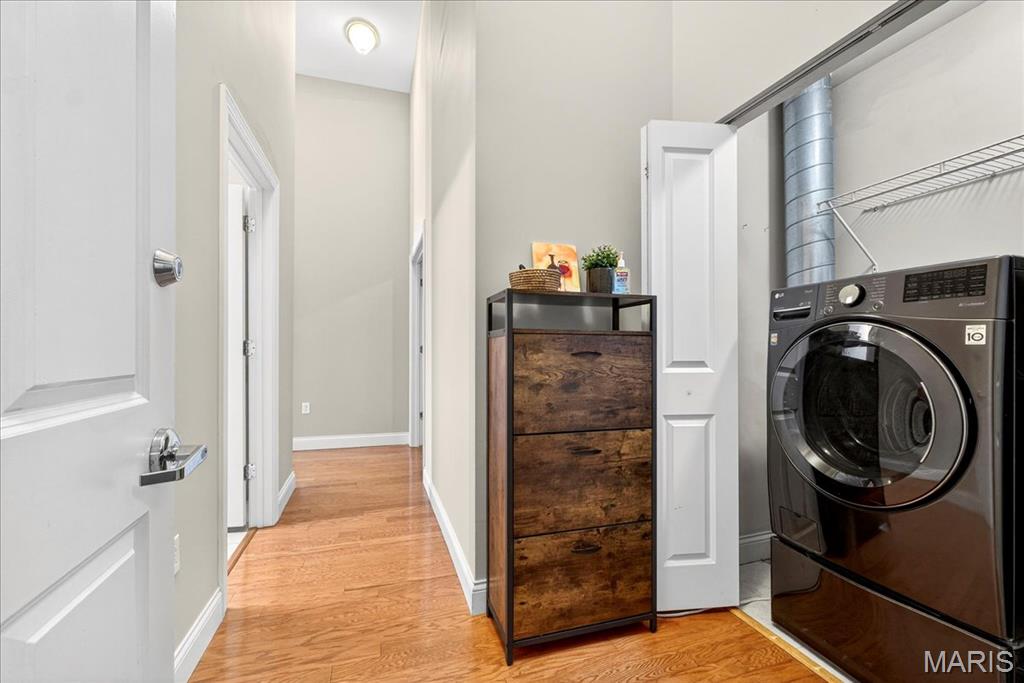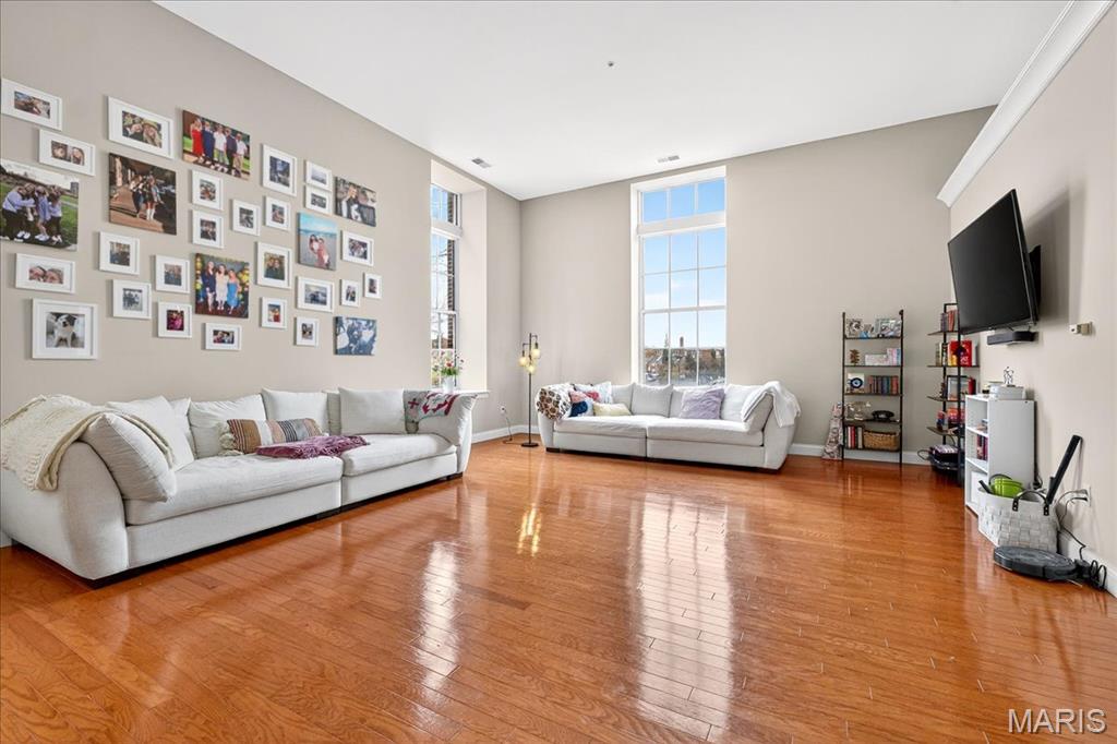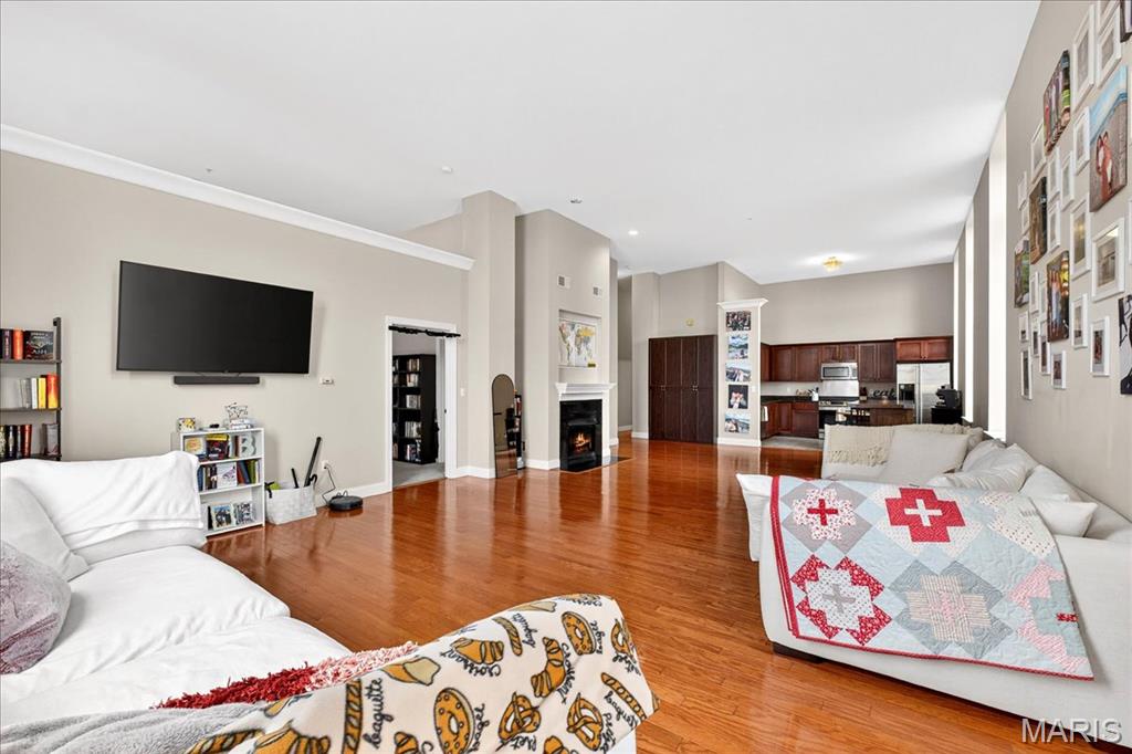 Welcome to 1515 Lafayette Avenue unit 211, a stylish urban retreat in the heart of historic Lafayette Square. This spacious condo offers approximately 1,581 square feet of living space with soaring ceilings and beautiful hardwood floors that create a warm and inviting feel from the moment you walk in. The open concept living and dining area features a cozy gas fireplace, perfect for relaxing evenings at home. The kitchen flows easily into the main living space, making it ideal for both everyday living and entertaining. With two generous bedrooms and two full bathrooms, there is plenty of room for guests, a roommate, or a home office. In unit laundry adds everyday convenience, and the included assigned parking space means you never have to worry about street parking. Residents also enjoy a private dog park and a beautifully maintained patio, offering great options for outdoor time without leaving home. Located in one of Saint Louis’s most beloved neighborhoods, you are just steps away from Lafayette Park, moments from Soulard Farmers Market, and minutes to downtown. Enjoy easy access to major highways, dining, shopping, and entertainment while coming home to a quiet and charming residential setting.