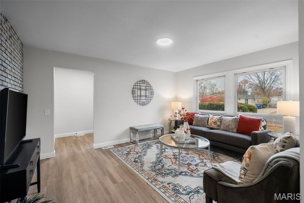4-Bedroom Ranch with Updated Kitchen, Patio, and Unfinished Basement in Florissant (63031)! Welcome to 1265 Central Parkway in Florissant, a move-in ready 4-bedroom, 2-bath ranch home offering comfortable single-level living with additional space in the unfinished basement for future possibilities. The main level offers approximately 1,352 square feet with a functional layout and abundant natural light. A large front window brightens the living room, while updated flooring throughout the main level creates a clean, cohesive feel. The kitchen features granite countertops, stainless-steel appliances, tile backsplash, and ample cabinet space, connecting easily to the dining area for everyday living and gatherings. Sliding doors from the dining space open to a level backyard with mature trees and a concrete patio, providing outdoor space for relaxing, grilling, or entertaining. Additional highlights include: • Four bedrooms on the main level • Two updated bathrooms, including a walk-in shower and tub/shower combination • Full unfinished basement offering storage or potential for additional living space • Recent maintenance updates, including HVAC servicing, electrical panel improvements, plumbing repairs, and roof work Conveniently located near Koch Park, shopping along Dunn Road, and quick access to I-270, this property provides access to parks, retail, dining, and commuter routes throughout North St. Louis County. If you're looking for a 4-bedroom ranch in Florissant with an updated kitchen and basement space for future plans, this home is ready to explore.