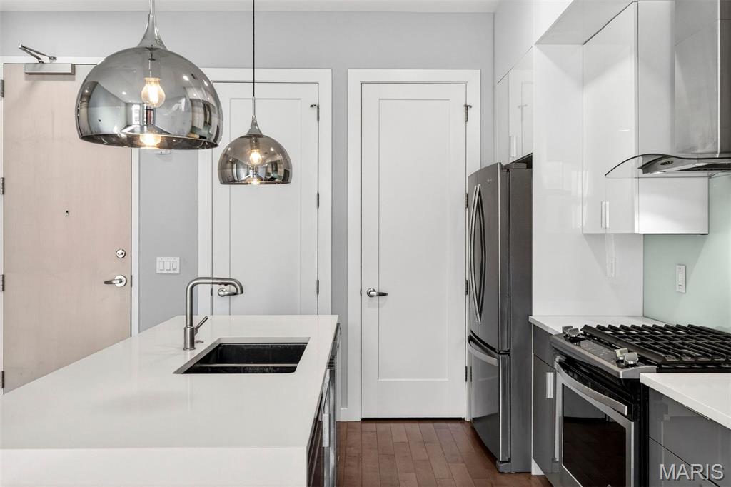 Perfectly priced and fabulously located at 4101 Laclede! This chic, modern residence sits within one of St. Louis’ most architecturally striking buildings. Curated finishes include wide-plank wood flooring, 10' ceilings, picture windows, designer lighting, Nest thermostat, and a gourmet kitchen featuring a quartz waterfall island, stainless appliances, custom glass backsplash, and pantry. Enjoy effortless everyday living with a private balcony, USB charging outlets, full-size in-unit washer and dryer, and a dedicated storage space. Residents enjoy exceptional amenities: a stunning pool deck with hot tub and outdoor grilling area, a well-equipped fitness center, stylish clubhouse, and secure garage parking. Unbeatable central location—just moments from WashU Medical School, BJC Campus, SLU, Cortex, City Foundry, and all the dining and entertainment of the vibrant CWE. Freshly painted and move-in ready!