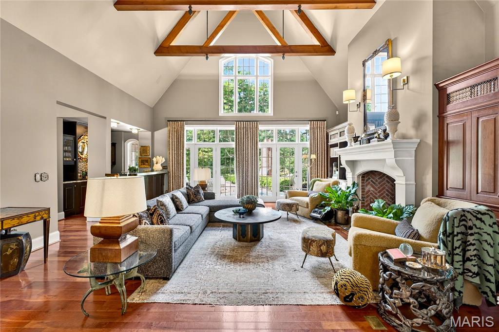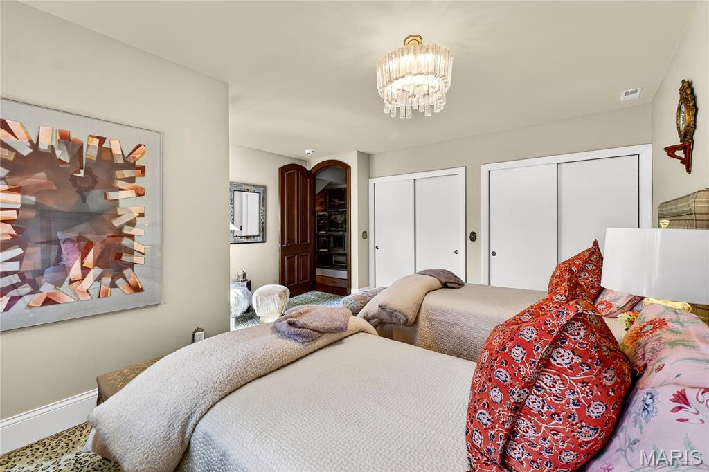 Nestled on 4.13 acres of rolling, picturesque grounds in the heart of Town & Country, this exquisite 5-bedroom, 7-bathroom estate embodies traditional sophistication with a rare combination of privacy, prestige, and architectural excellence. From the moment you step inside, you’re surrounded by designer craftsmanship and luxurious finishes at every turn. Each detail has been thoughtfully curated to create a home of exceptional beauty and timeless character including 3/4” cherry hardwood floors with walnut inlays flow seamlessly throughout elegant living spaces, accented by custom millwork, intricate moldings, marble countertops, and striking artisanal lighting. The gourmet kitchen is both a culinary masterpiece and an entertainer’s dream — featuring top-tier appliances, La Cornue Range, bespoke cabinetry, and open to the grand living and dining areas. Every space invites gathering, connection, and effortless sophistication.The primary suite redefines luxury living. A sanctuary unto itself, offers spa-inspired amenities, dual closets and sweeping views of the manicured estate grounds — the perfect retreat for relaxation and renewal. The fully finished lower level extends the home’s versatility with two additional bedrooms, a second kitchen, fitness studio, and expansive entertaining area designed for hosting with style and ease.Outdoors, the estate transforms into a private resort. A custom designed pool, basketball court, and sprawling backyard framed by exquisite landscaping create the ultimate setting for leisure and entertainment. The custom 4-car garage seamlessly complements the home’s architectural integrity and unmatched design.With its commanding presence, extraordinary craftsmanship, and one of the most coveted locations in Town & Country, this estate is more than a home — it’s a statement of timeless luxury and refined living at its absolute finest.