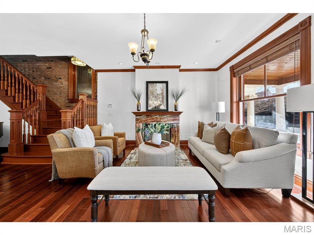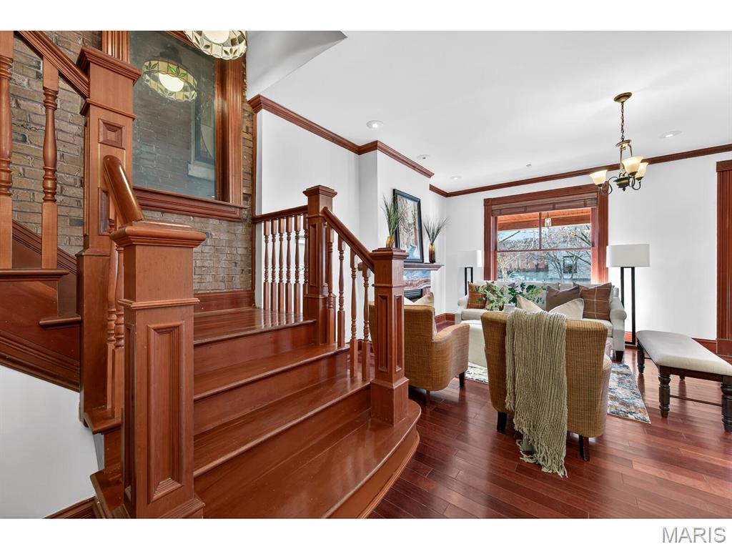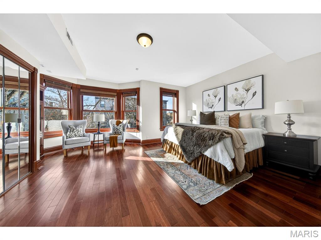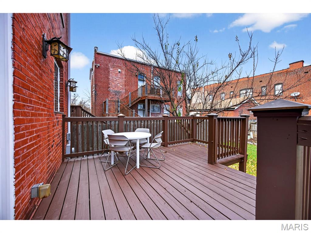 Talk about urban convenience! You can sip wine at a sidewalk table; see live music or a play, and do your grocery shopping all within 1 block of 4257 Maryland. Built in 1904 and completely renovated in 2008, this 5+B/3.5b home combines modern systems and finishes with the historic details that make each Central West End residence unique. From the ample front porch you enter an open Living Room/Dining Room space with 9'4" ceilings and a fireplace in each. The Kitchen, with granite tops and stainless steel appliances, spans the back of the house and features both an eat-in area and an inviting island. Through the rear door lies a substantial deck and cozy fenced yard. Through a gate is a 2-car parking pad accessed from the private alley. A Powder Room and Pantry complete the 1st Floor. The spectacular original staircase leads to the 2nd and 3rd Floors. The front of the 2nd Floor is the Primary Suite, which boasts a huge bay window, abundant closet space and a bath with separate tub & shower. Two bedrooms, a bathroom and the Laundry complete the 2nd Floor. Two more bedrooms, a bathroom and an Office are found on the 3rd Floor. The bedrooms are graciously proportioned and light-filled, with 9'6" ceilings, large dormer windows and a skylight in the one at the rear. The basement is tidy and dry. Two HVAC systems with programmable thermostats--one for the 1st Floor, while the other serves the 2nd & 3rd.