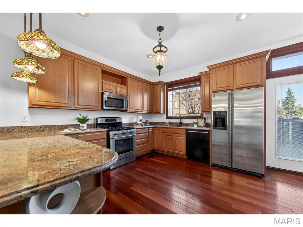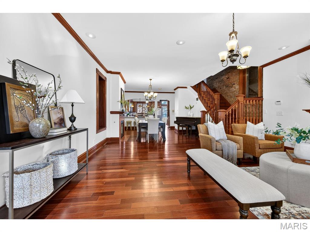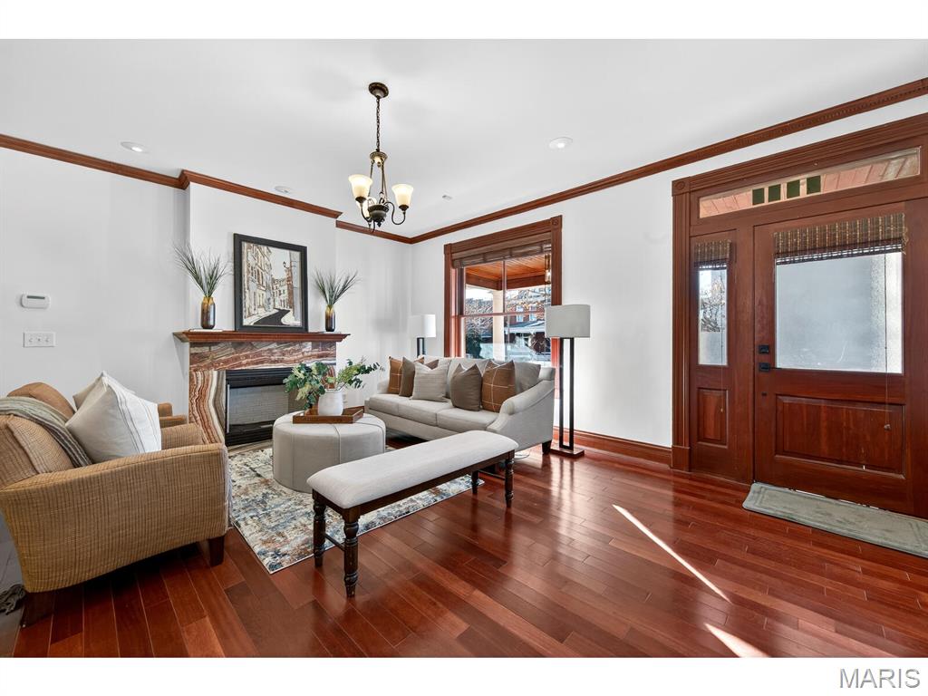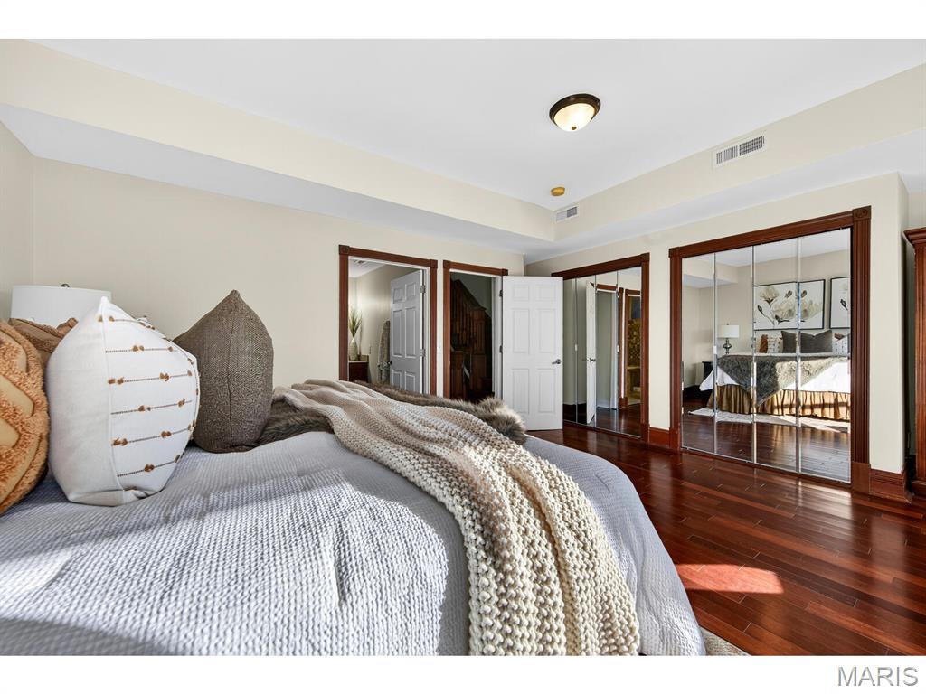 Talk about urban convenience! You can sip wine at a sidewalk table; see live music or a play, and do your grocery shopping all within 1 block of 4257 Maryland. Built in 1904 and completely renovated in 2008, this 5+B/3.5b home combines modern systems and finishes with the historic details that make each Central West End residence unique. From the ample front porch you enter an open Living Room/Dining Room space with 9'4" ceilings and a fireplace in each. The Kitchen, with granite tops and stainless steel appliances, spans the back of the house and features both an eat-in area and an inviting island. Through the rear door lies a substantial deck and cozy fenced yard. Through a gate is a 2-car parking pad accessed from the private alley. A Powder Room and Pantry complete the 1st Floor. The spectacular original staircase leads to the 2nd and 3rd Floors. The front of the 2nd Floor is the Primary Suite, which boasts a huge bay window, abundant closet space and a bath with separate tub & shower. Two bedrooms, a bathroom and the Laundry complete the 2nd Floor. Two more bedrooms, a bathroom and an Office are found on the 3rd Floor. The bedrooms are graciously proportioned and light-filled, with 9'6" ceilings, large dormer windows and a skylight in the one at the rear. The basement is tidy and dry. Two HVAC systems with programmable thermostats--one for the 1st Floor, while the other serves the 2nd & 3rd.