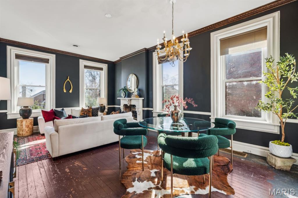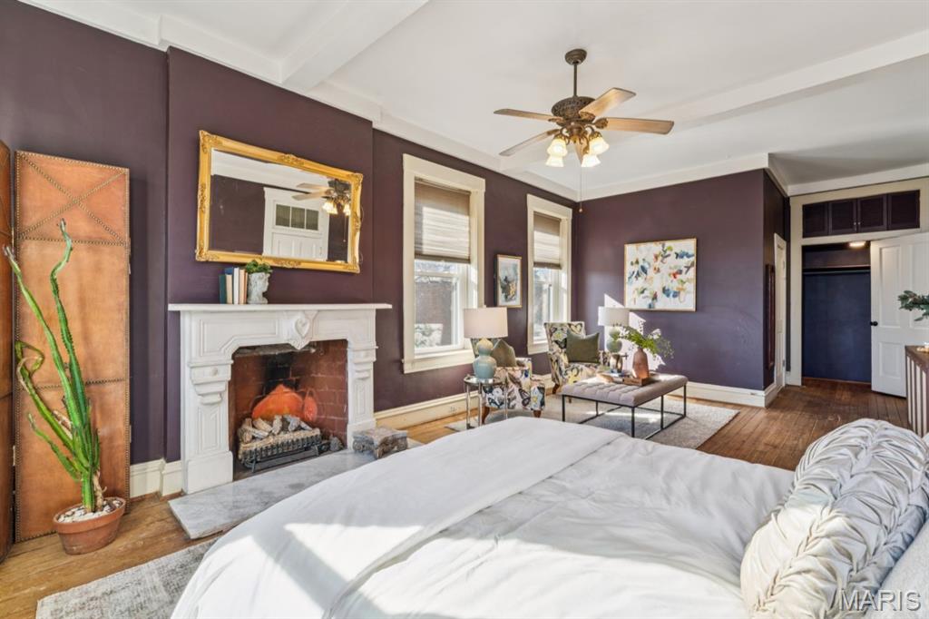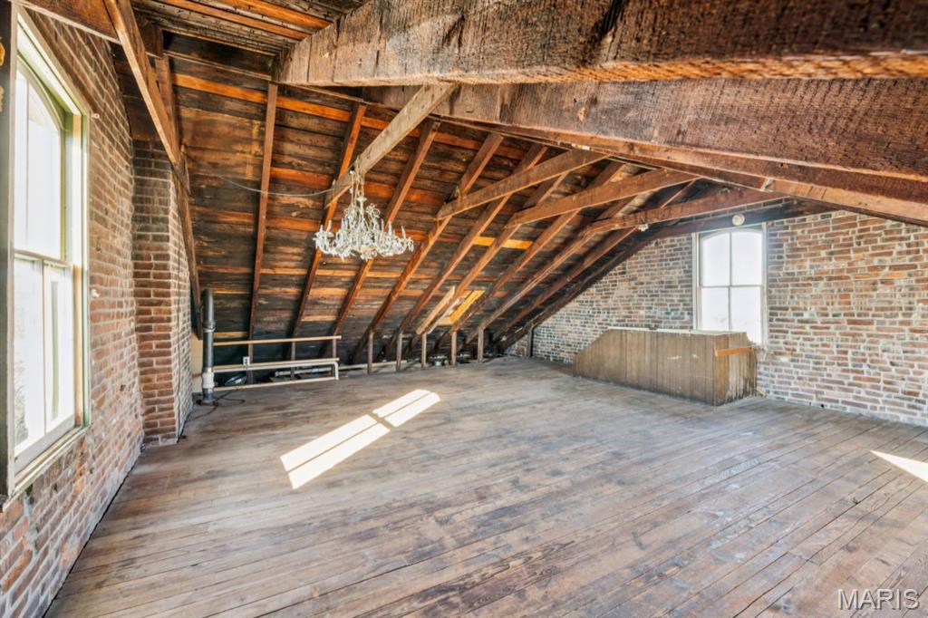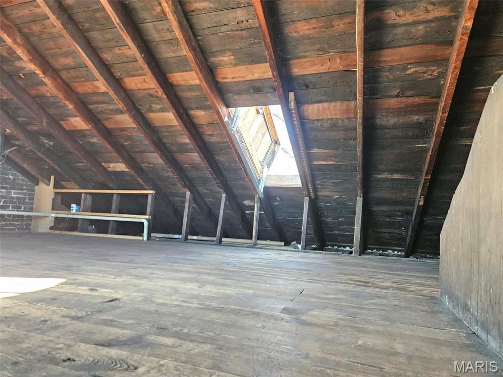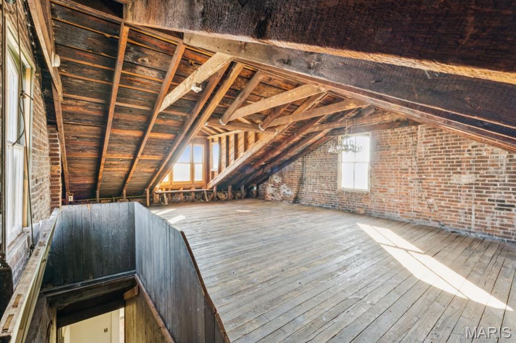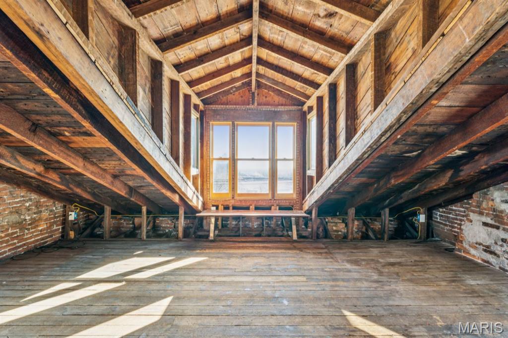 Perched above the Mississippi River with a large double lot yard and rare sightline to the Gateway Arch, this one-of-a-kind 2.5-story home offers a perspective few properties can match. Built circa 1875, it blends historic St. Louis character with a dramatic setting. With 1,830 square feet, 2 bedrooms & 1.5 baths, this is a home that's rich in history, mood, & views. The main level features spacious living & dining space with tall ceilings, eye-catching woodwork, & impressive decorative fireplace. The kitchen offers an eat-in option in a bay-window nook, center island, plenty of counter space, large pantry, & walks out to covered patio space. Half bath completes the main level. Upstairs, the massive 12 x 27 primary bedroom is anchored by a second decorative fireplace & sitting area + French doors opening to small front balcony with river view. The other bedroom has access to a covered 2nd story deck overlooking side yard. A separate office and full bath completes 2nd floor. Above it all, the expanded attic offers exceptional potential for future finishing, whether envisioned as an additional bedroom, studio, or private retreat with elevated views. A roof hatch provides access to the flat roof, creating the opportunity for a true rooftop escape. Fenced yard, gated for off-street parking option. New furnace and AC in 2024. Known for its riverfront setting and elevated vantage points, Marine Villa offers a rare combination of historic homes, and proximity to downtown, Cherokee Street, and major highways—making it both connected and quietly set apart. For those who see home as both shelter and statement - this one's for you.