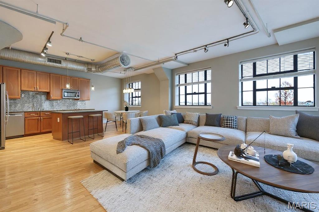Live in the heart of the Central West End! Stylish fourth-floor loft in the heart of the Central West End with expansive city views and abundant natural light from oversized windows. This well-maintained 2 bed, 2 bath unit features an open-concept layout and an updated kitchen with hard-surface countertops, stainless steel appliances, and ample cabinetry—perfect for everyday living or entertaining. The spacious primary suite offers a large walk-in closet and en-suite bath with soaking tub and separate walk-in shower. Second full bath and in-unit laundry add convenience. Elevator building with multiple parking options, including underground garage and covered exterior spaces. Prime location near dining, shopping, medical centers, and the best of CWE living.