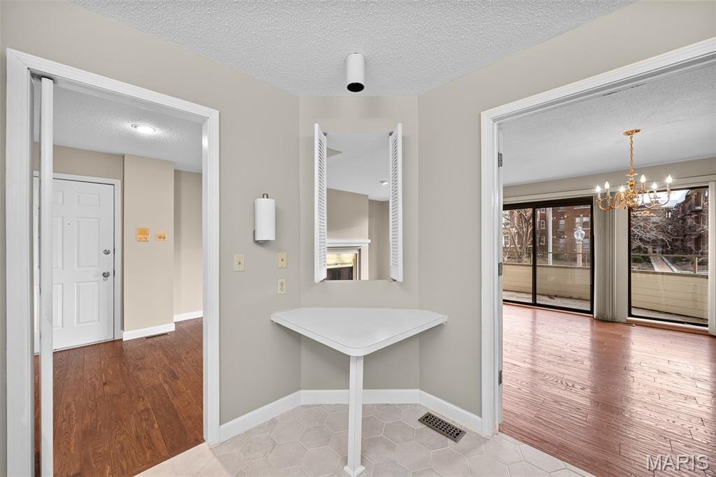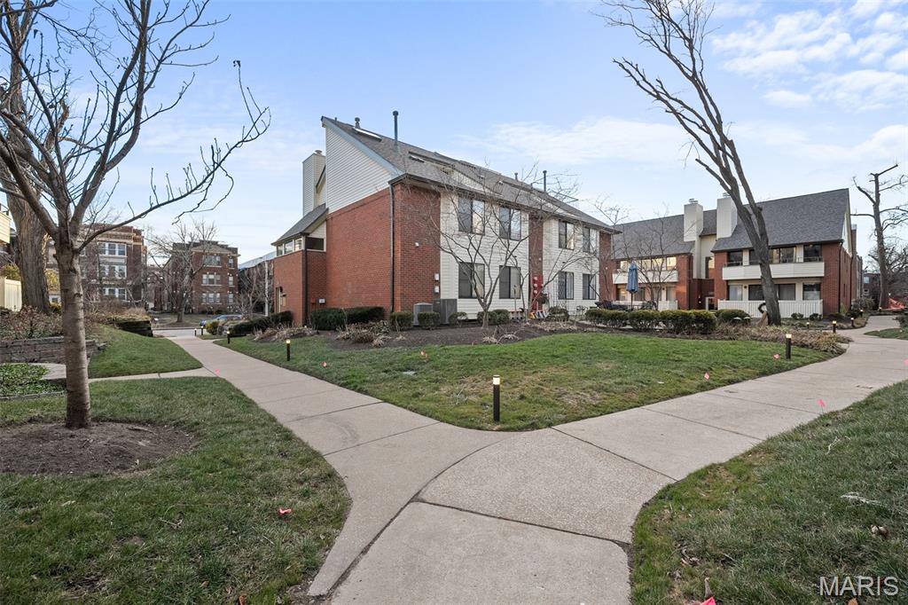 This is one of the best HOA communities in the Central West End! Already bouncing back from the May 16th tornado, this is an owner occupied community that has gone above and beyond to recreate its beauty! Updates include brand new architectural roofs, and decks to be replaced/repaired. This updated 2 bedroom 2 bath condo is perfect for your busy lifestyle! Large, front facing sliding glass doors allow plenty of natural light to permeate the spacious living/dining area. The brand new wood floors are flanked by freshly painted walls. The kitchen is updated with stainless steel appliances, tile backsplash, granite countertops and lots of cabinet space. The primary bedroom is spacious, with lots of closet storage, plus an updated ensuite bath with double vanity. The secondary bedroom is generously sized as well shares the same lush courtyard view, and is near to the second full bath, which also contains the in unit laundry. Close to Washington University, forest park, museums and all Central west end has to offer! This unit also includes 2 parking spaces, and a private storage locker. Don't miss your chance to make this one yours!